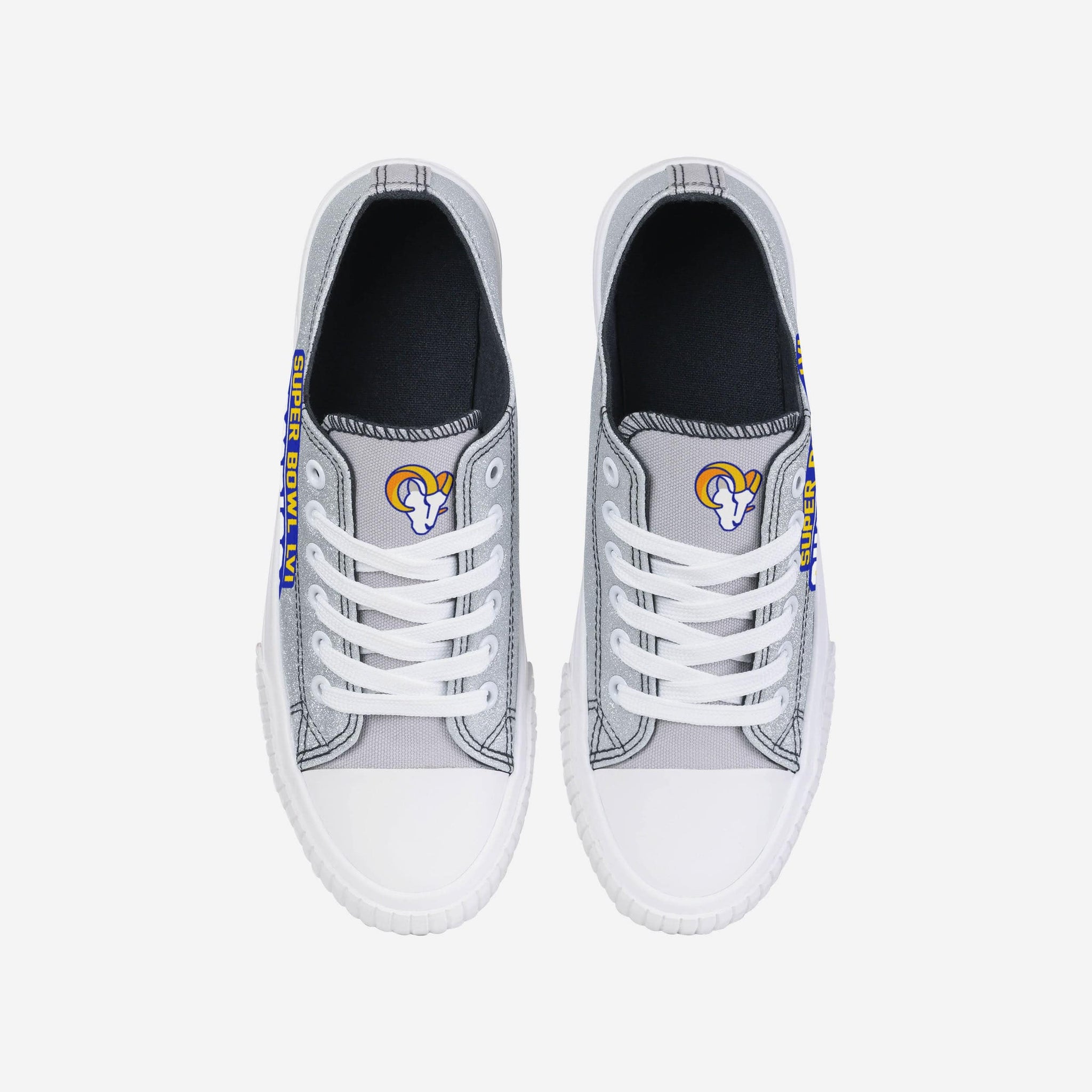 Los Angeles Rams Super Bowl LVI Champions Glitter Low Top Canvas Shoe FOCO 6 - FOCO.com
