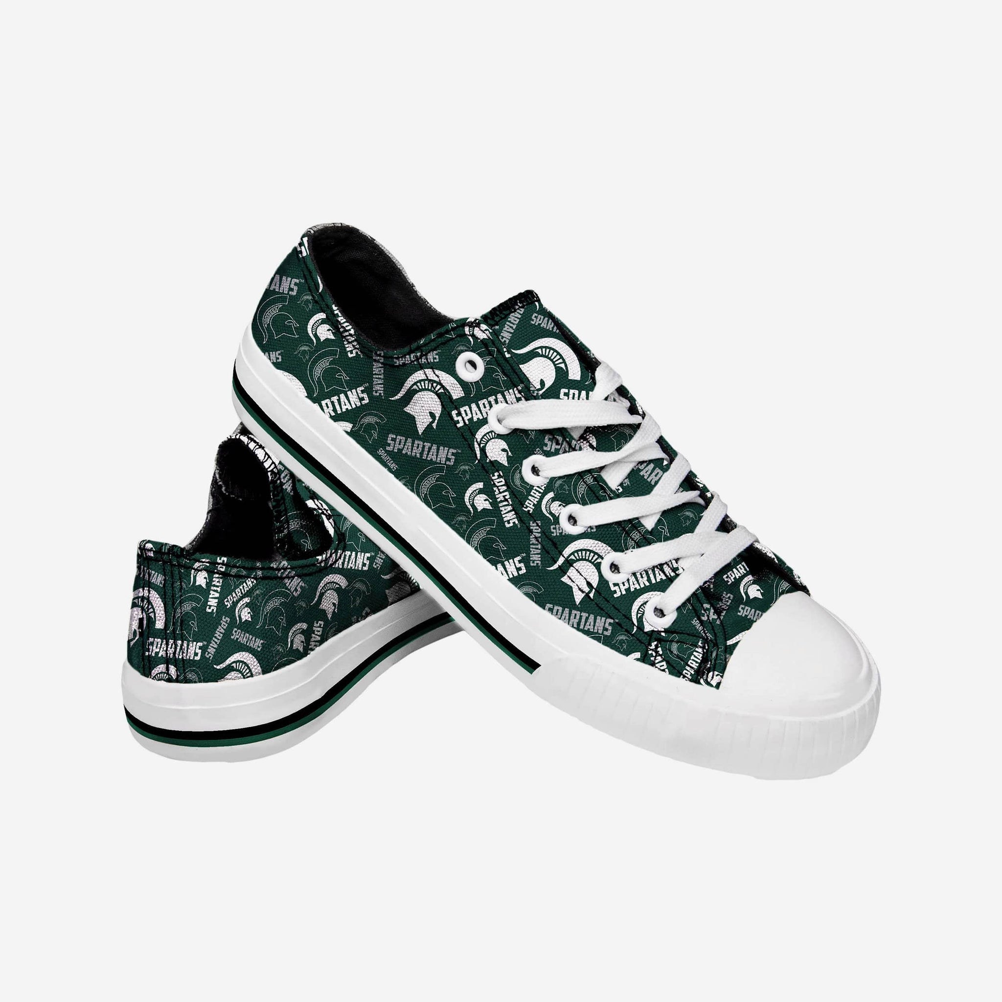 The only thing better than kicking your feet up and relaxing is kicking your feet up and relaxing while your feet are wearing these Michigan State Spartans Women's Low Top Repeat Print Canvas Shoes. That way, you can relax AND let everyone know who the realest fan in the room is.