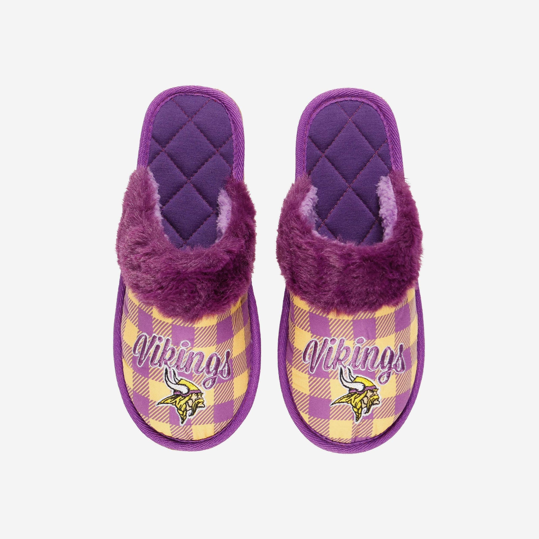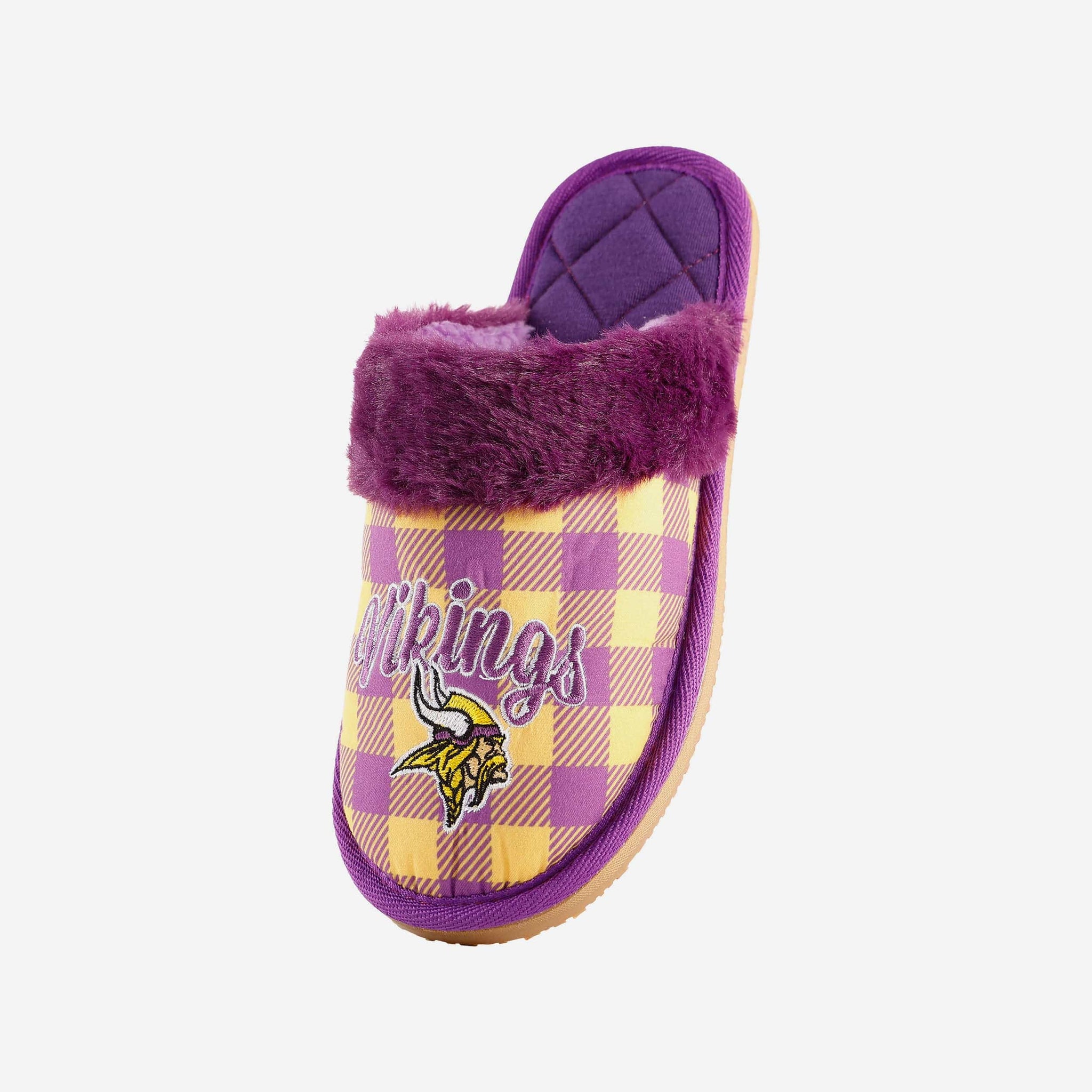 Minnesota Vikings Womens Plaid Sherpa Mule Slipper FOCO S - FOCO.com