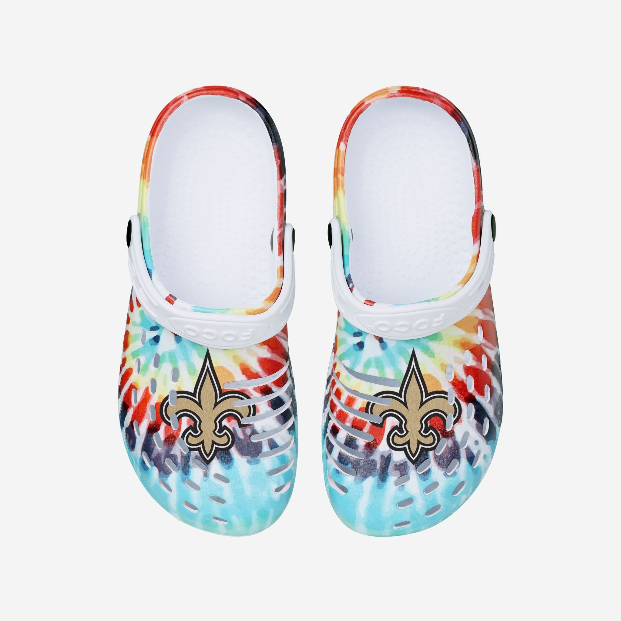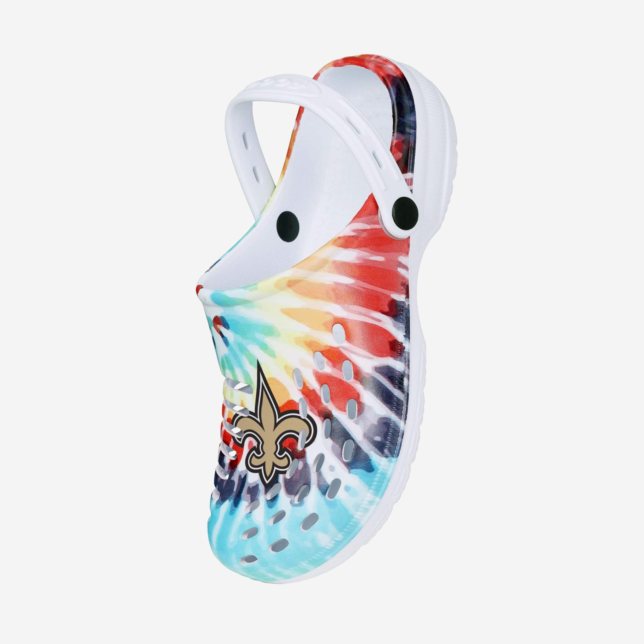 Peace. Love. Tie-dye. Step back in time with some style from yesteryear by rocking these New Orleans Saints Women's Tie-Dye Clogs with Straps.