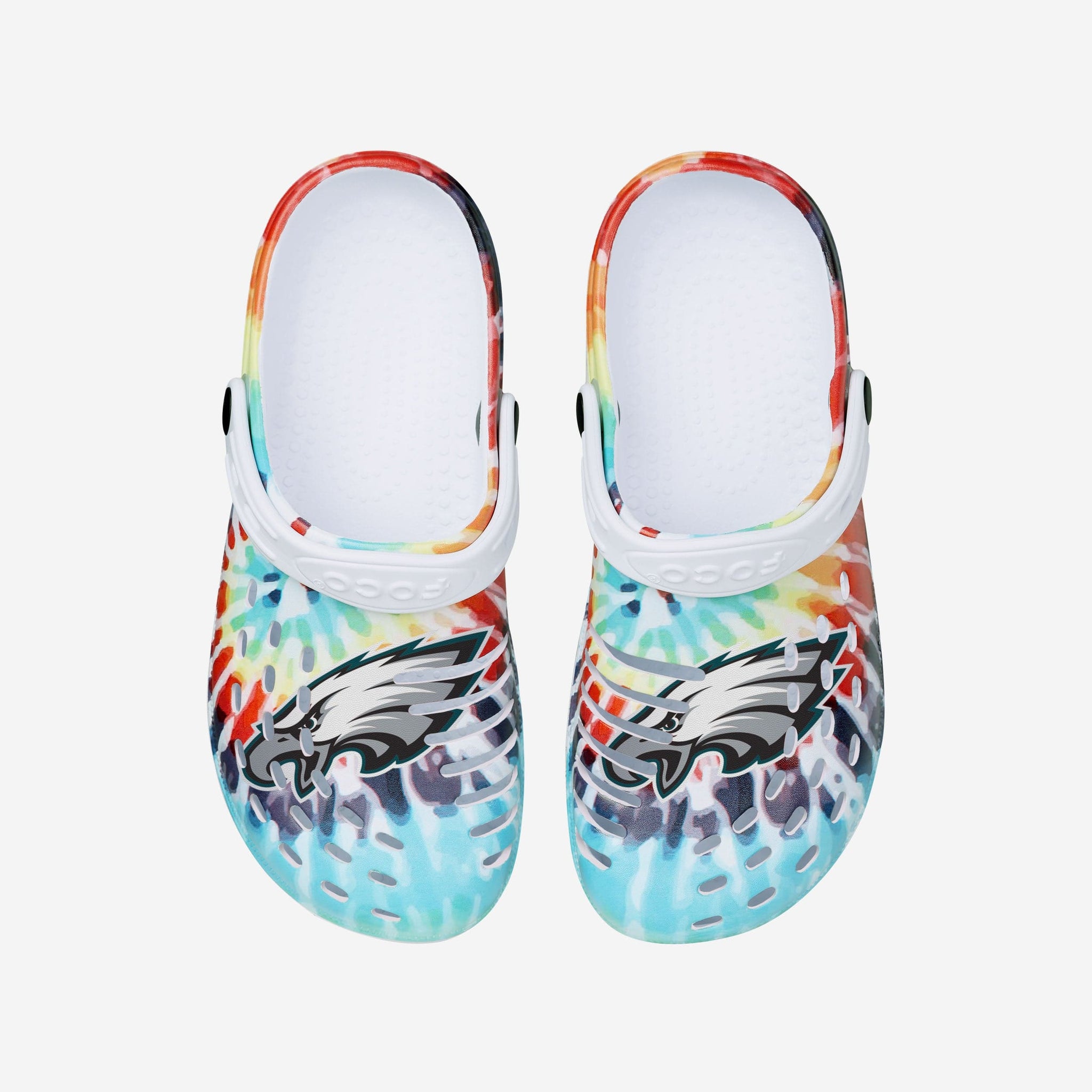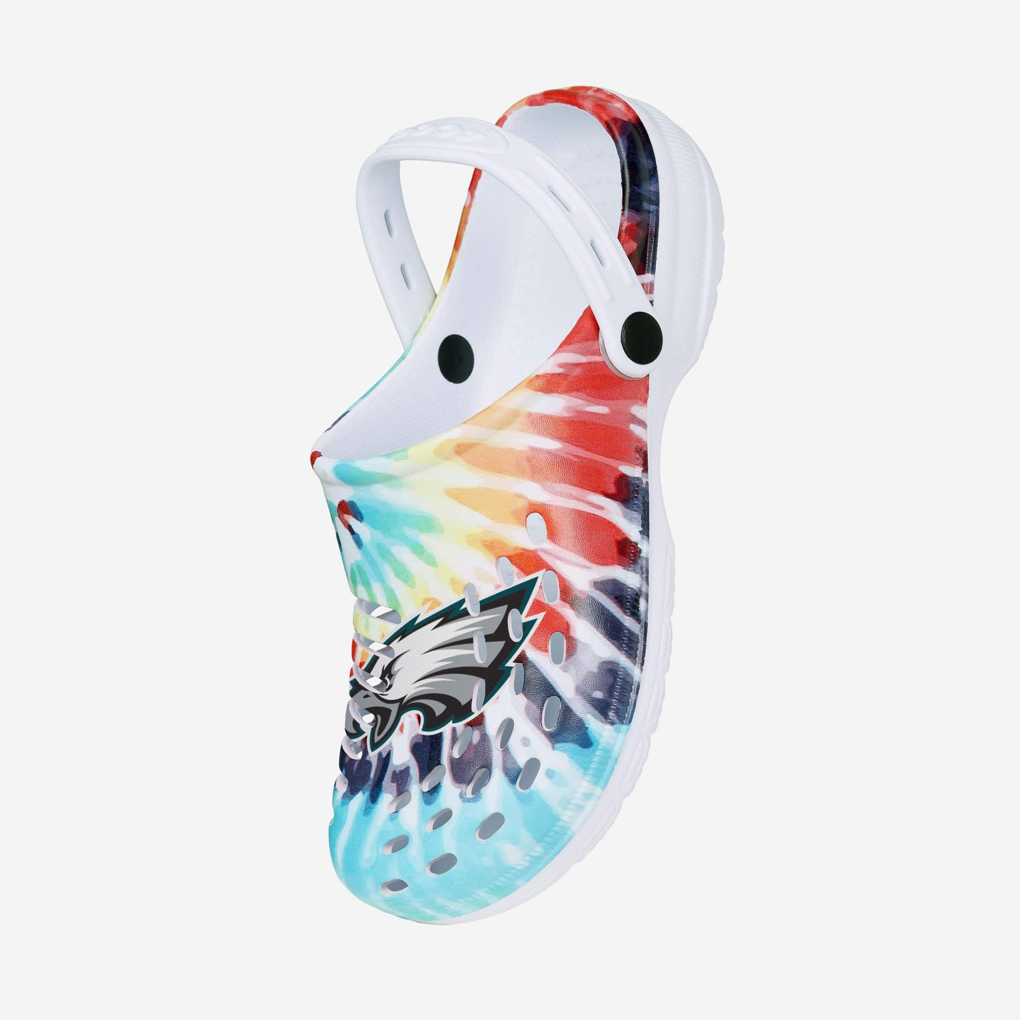 Peace. Love. Tie-dye. Step back in time with some style from yesteryear by rocking these Philadelphia Eagles Women's Tie-Dye Clogs with Straps.