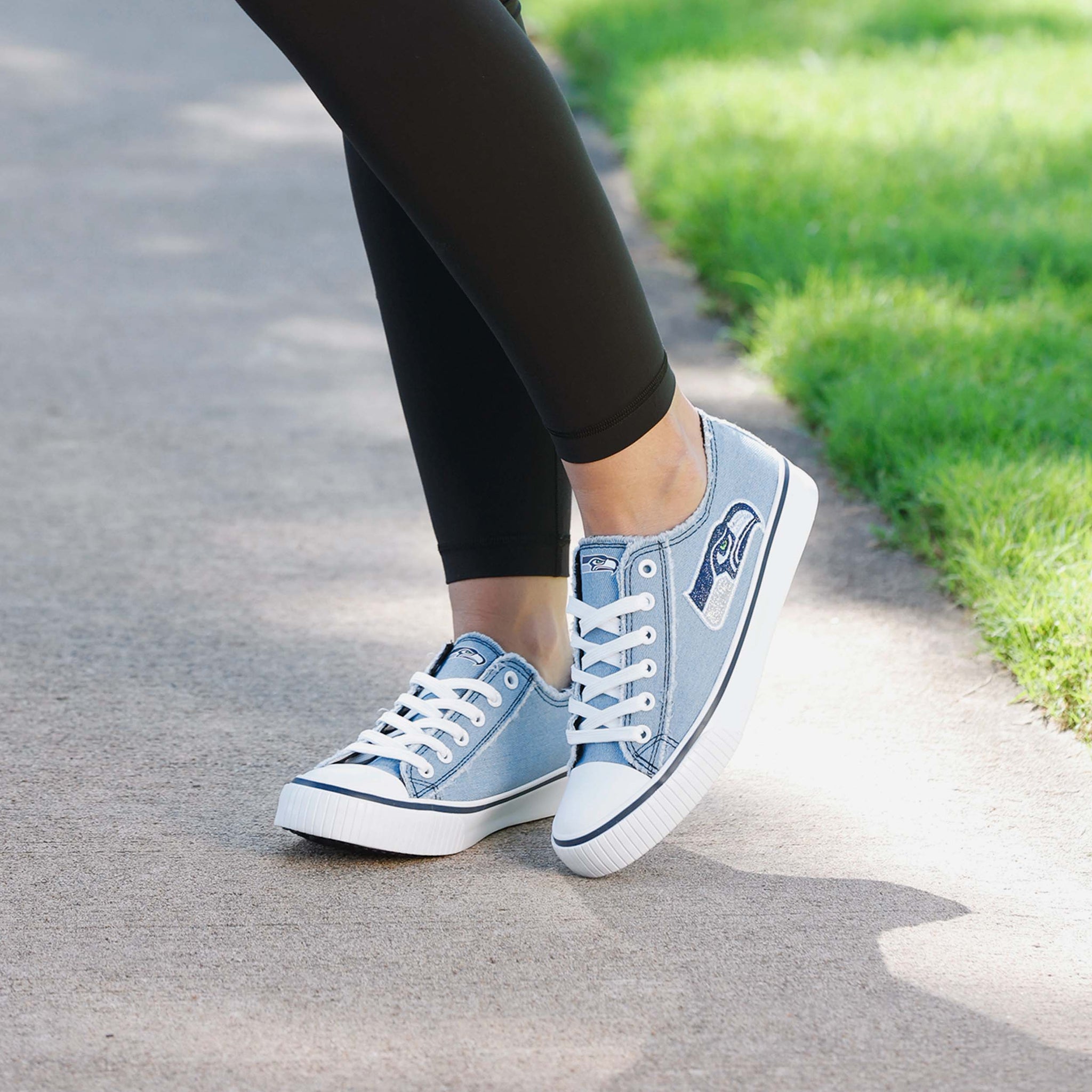 Nobody can dull your sparkle as a fan! Get ready to make all your game days denim days too as you shine on with a pair of Seattle Seahawks Women's Denim Low Top Canvas Shoes.
