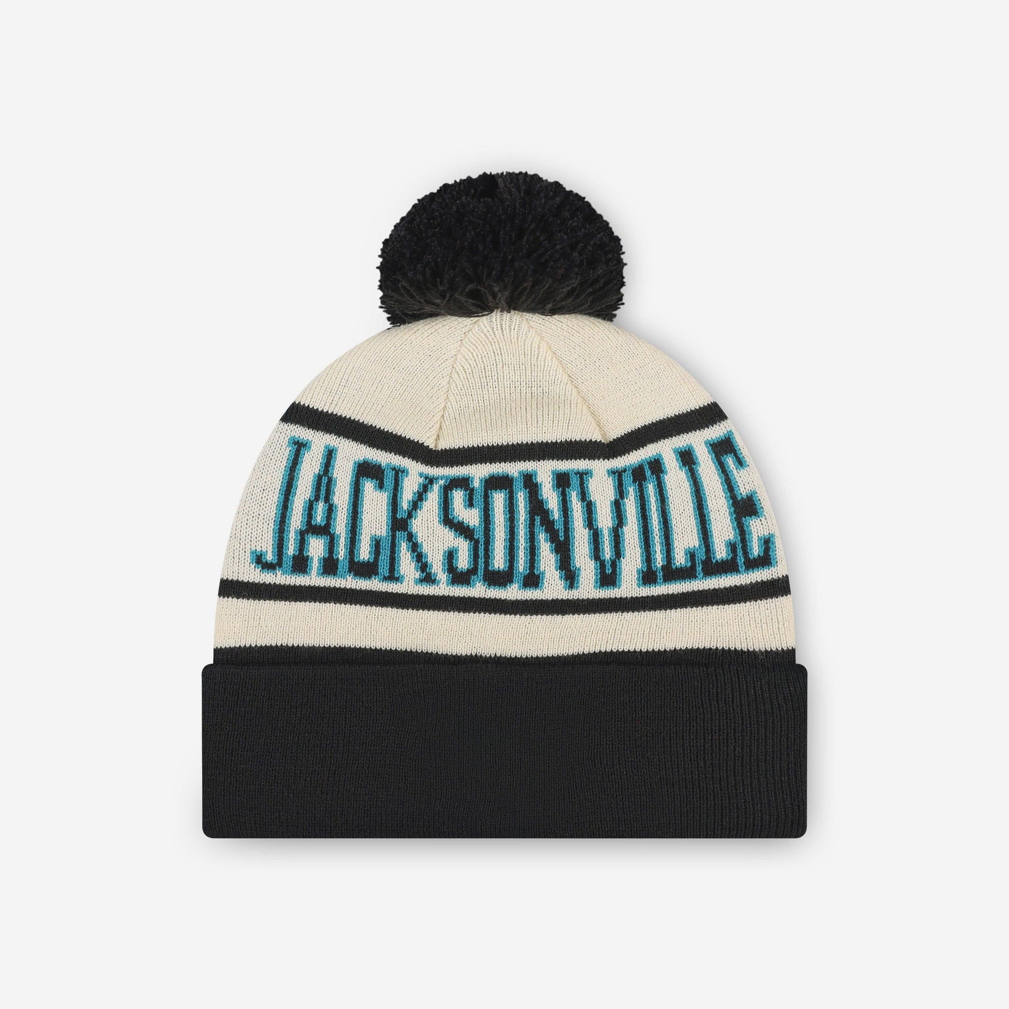 Don’t get left out in the cold. Make the smart play for gameday and beyond with the Jacksonville Jaguars Heritage Stripe Primary Logo Pom Beanie!