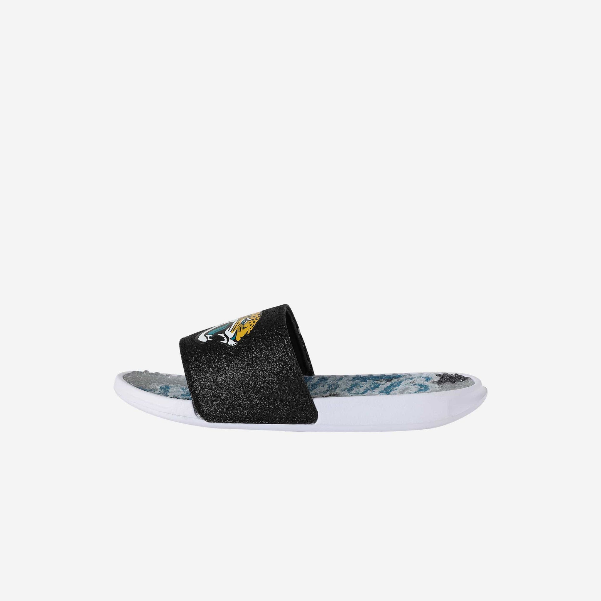 Fan footwear that will make you the pick of the glitter. Let your team spirit shine with every step in these Jacksonville Jaguars Women's Glitter Gel Slides!