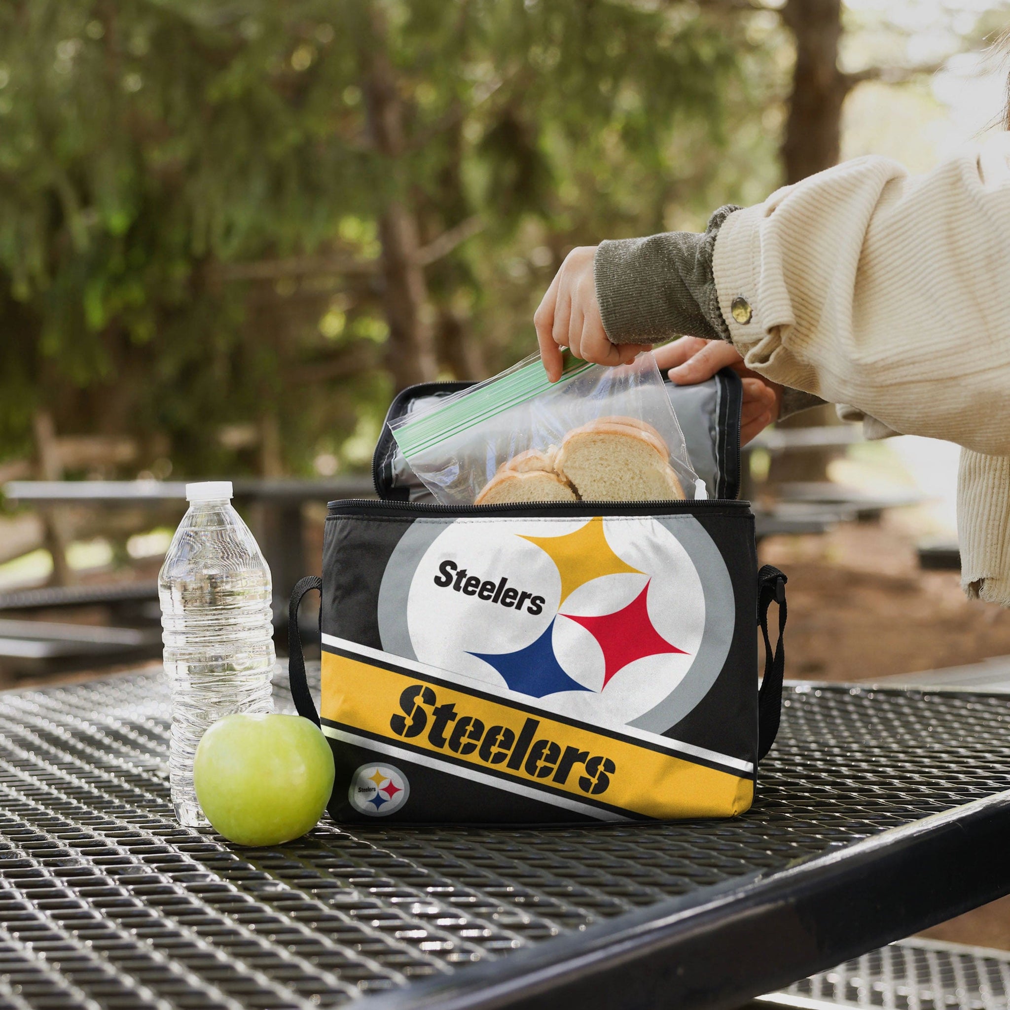 Tailgates. The beach. Road trips. No matter where you go, take your fandom (and your beverages) along for the ride with the Pittsburgh Steelers Big Logo Stripe 6 Pack Cooler.