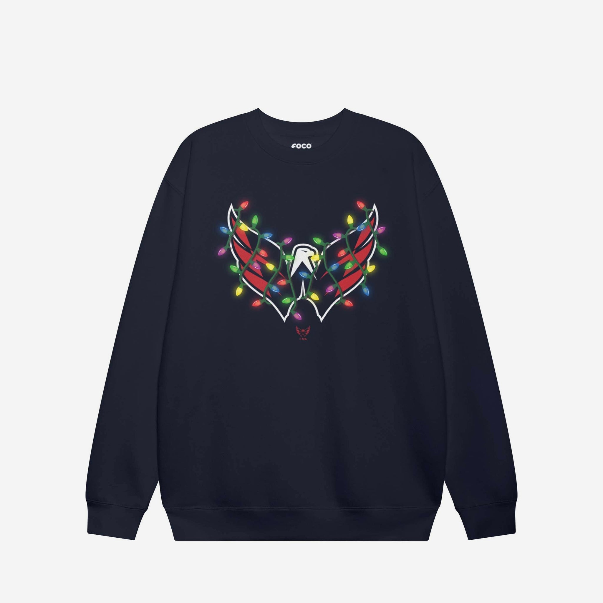 Washington Capitals Primary Logo Holiday Lights Crew Neck Sweatshirt FOCO S - FOCO.com
