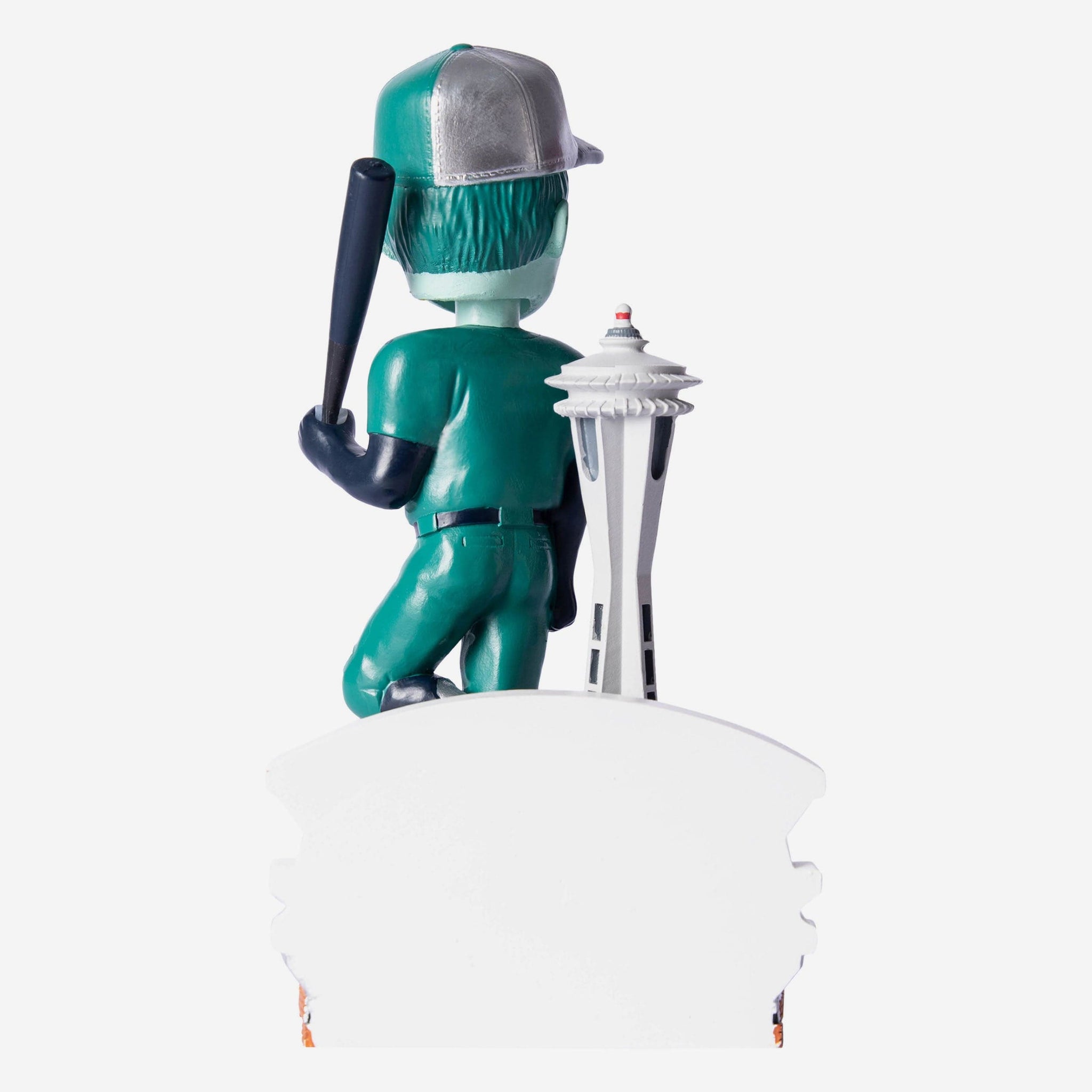 - Portrays figure wearing blue and green uniform, holding a baseball bat, and leaning against the Space Needle to bring the essence of The Emerald City to your fancave