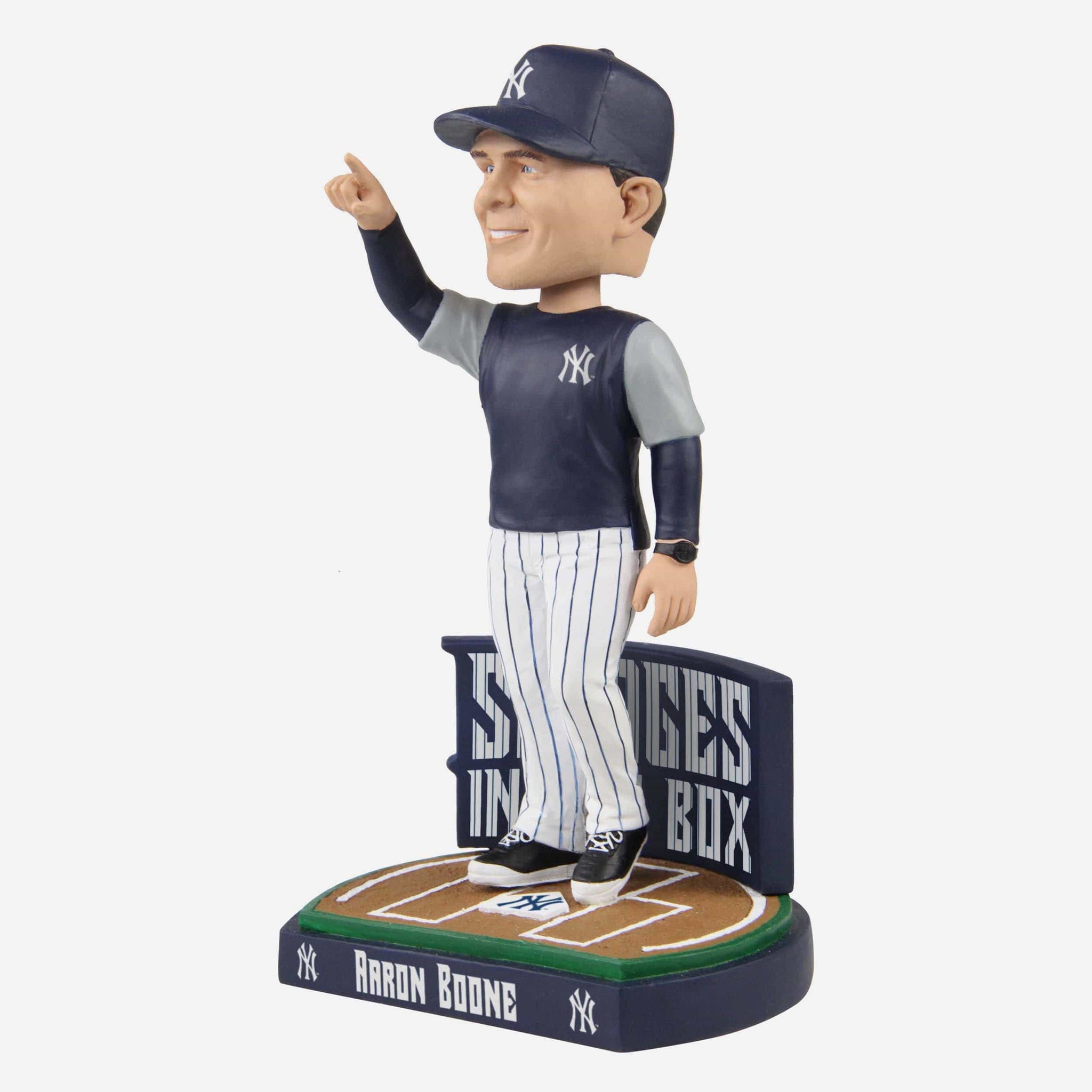 Tighten that collection up and add some pinstriped power to your lineup with this Aaron Boone New York Yankees Savages in the Box Bobblehead.