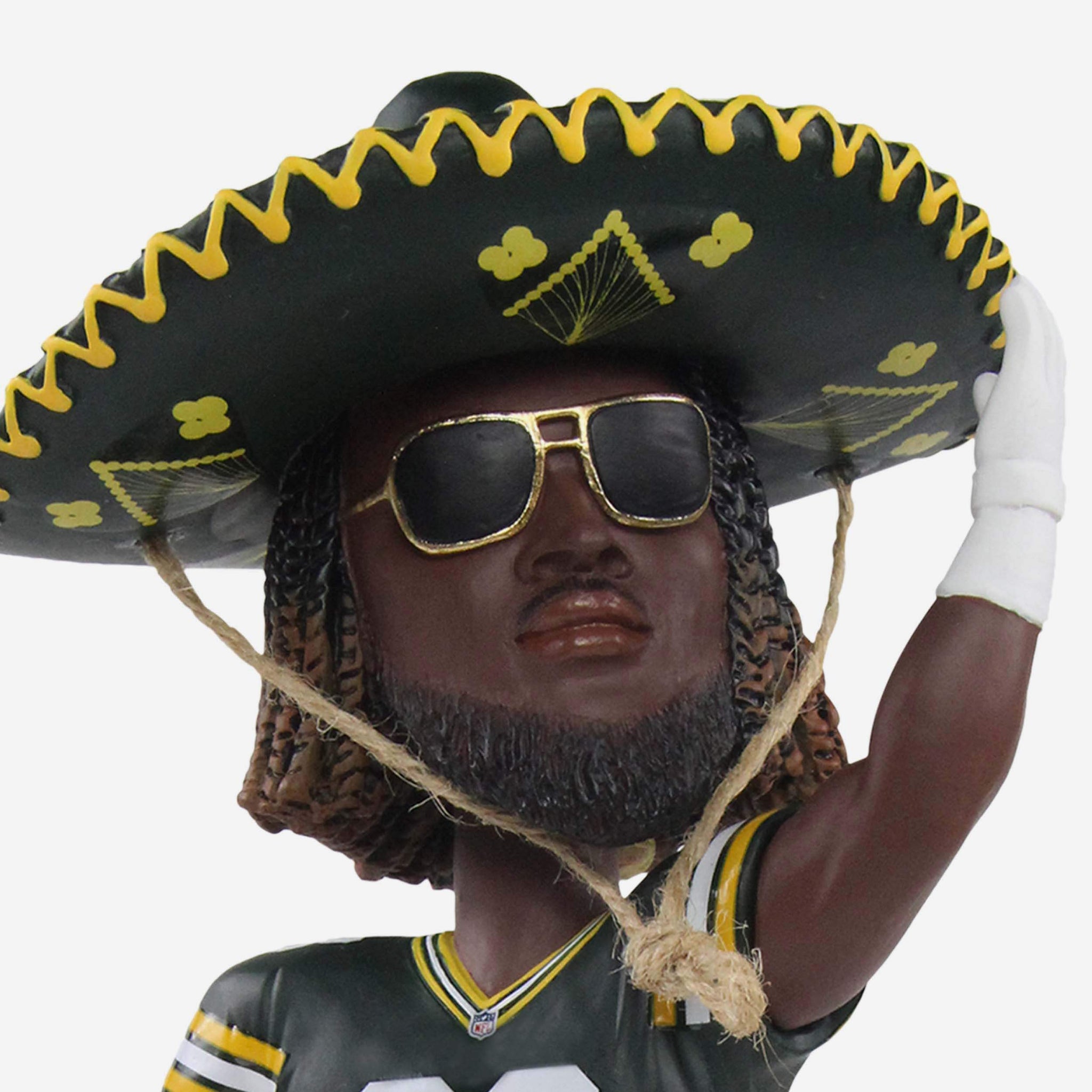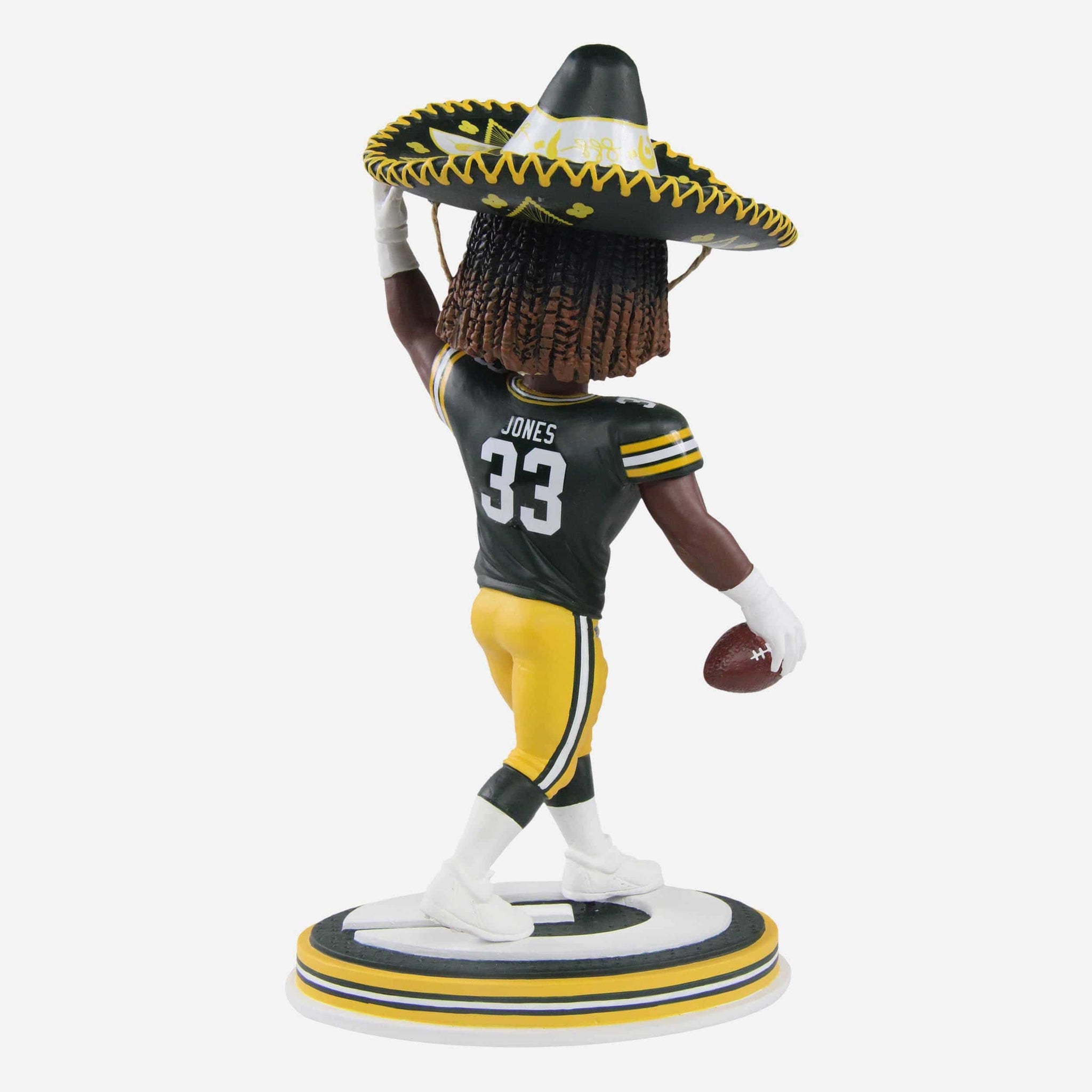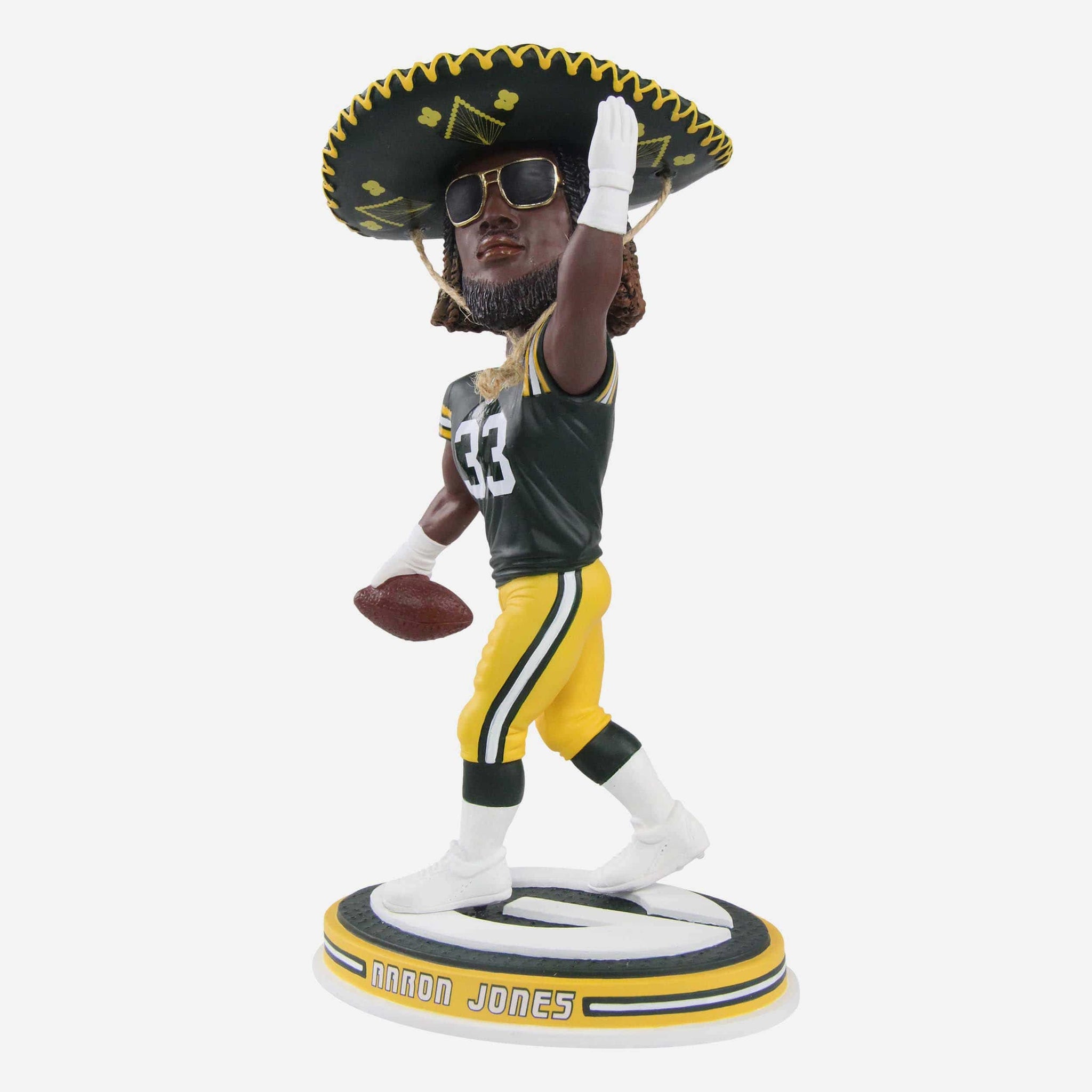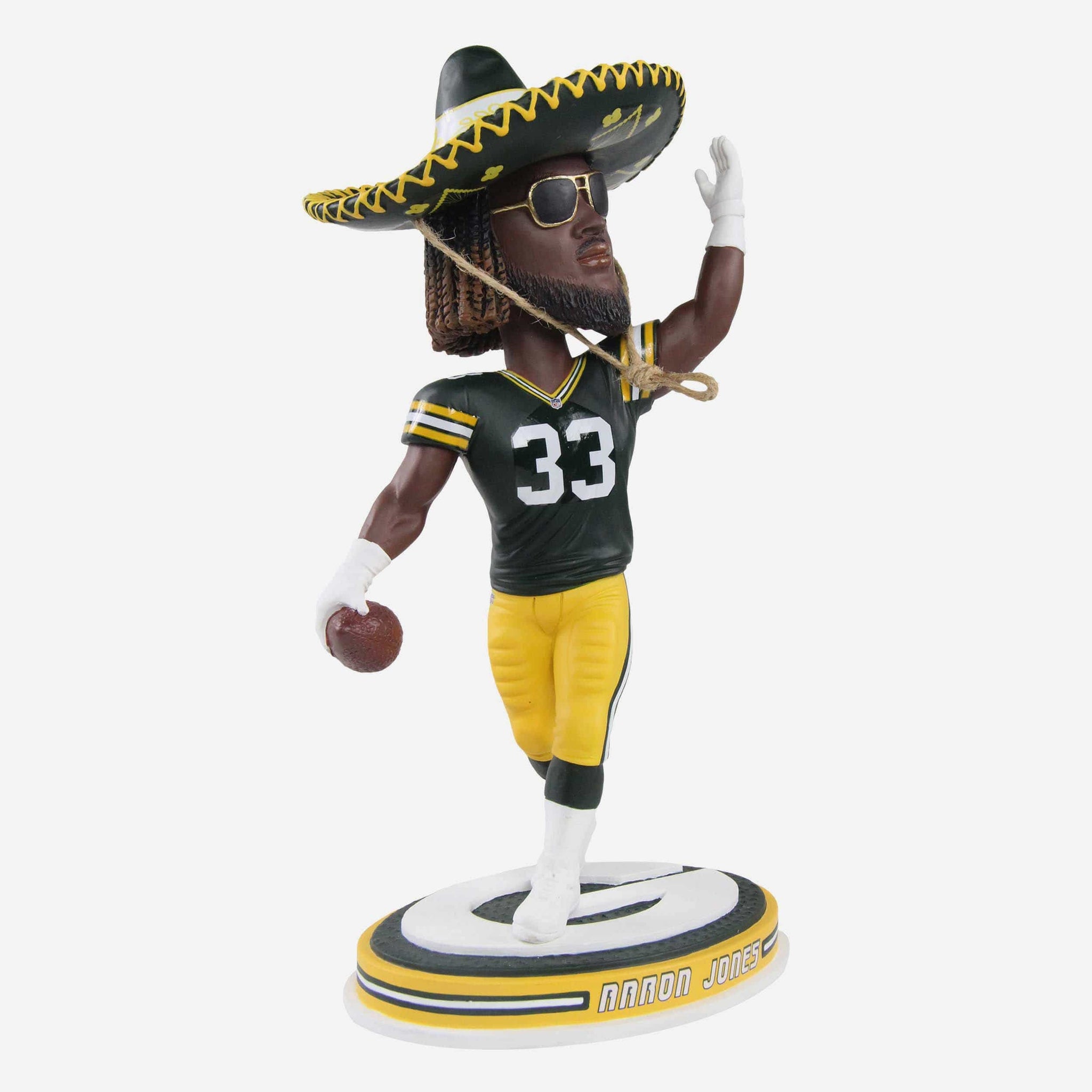 A bobblehead for diehard cheeseheads. Introducing the Aaron Jones Green Bay Packers Sombrero Bobblehead, Lambeau Leaping into a collection near you!
