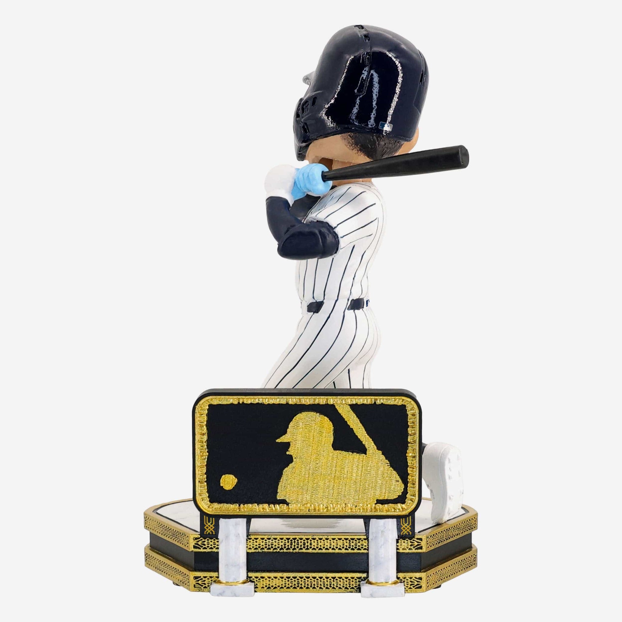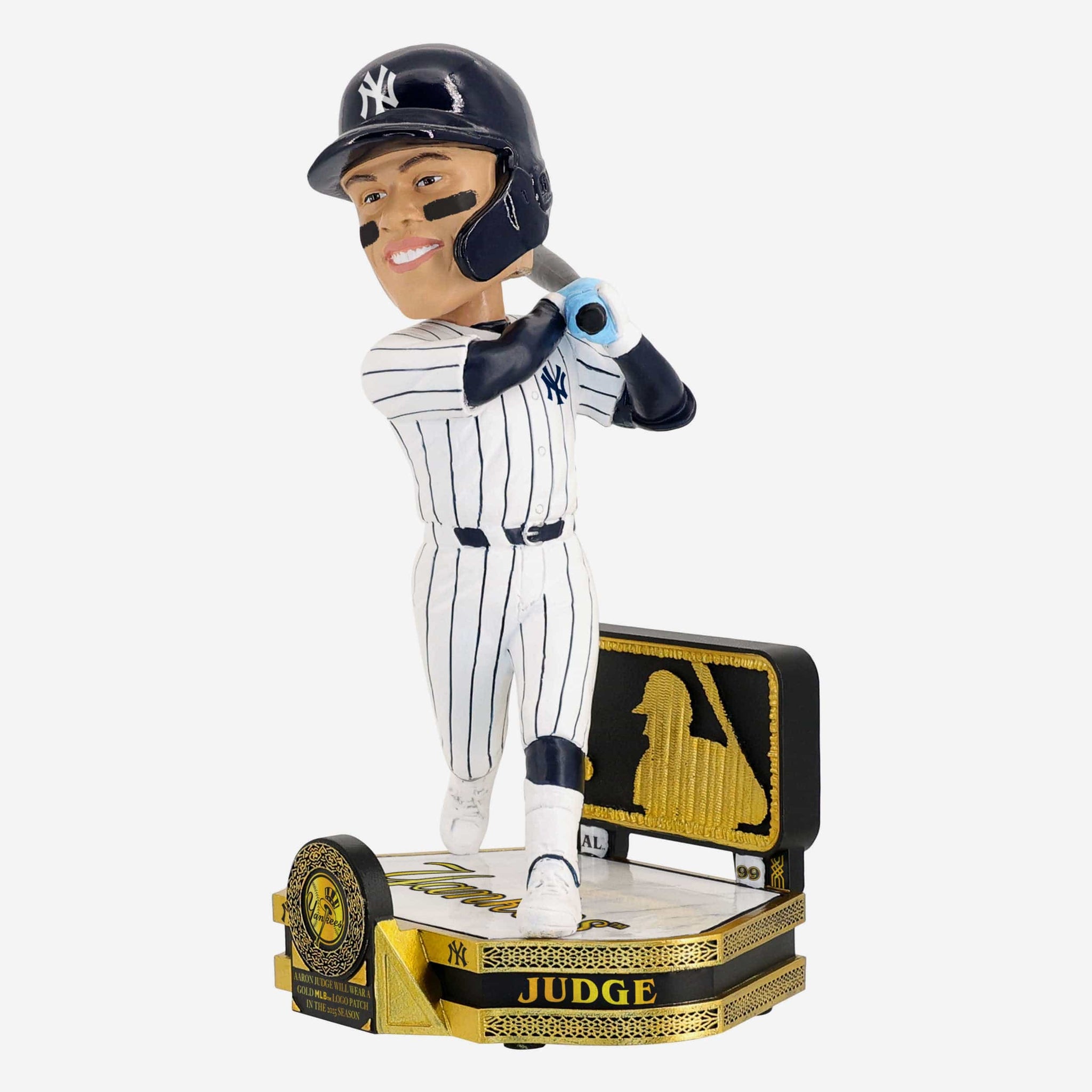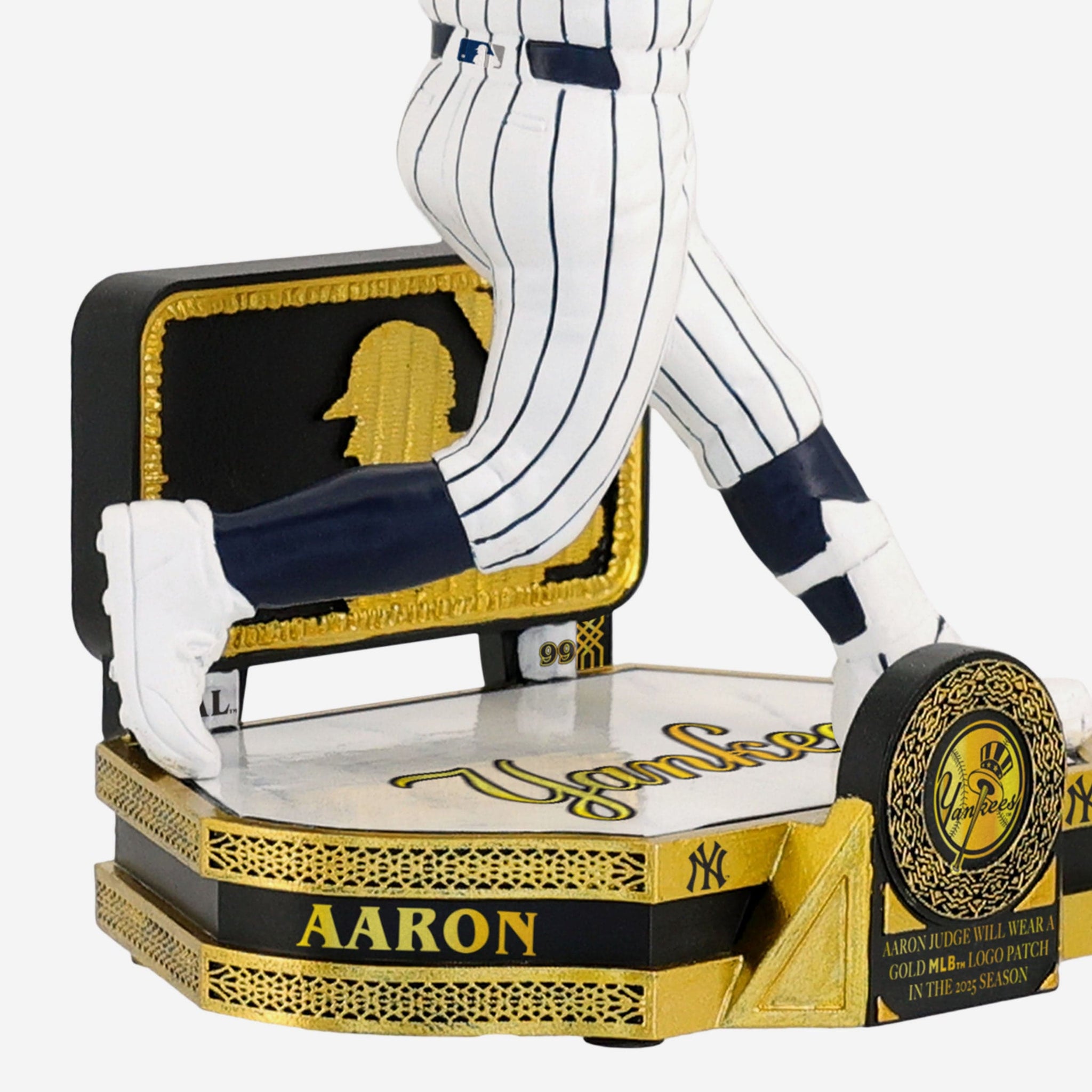 - ”AARON JUDGE WILL WEAR A GOLD MLB™ LOGO PATCH IN THE 2025 SEASON” text display on front of base so you can celebrate this golden achievement