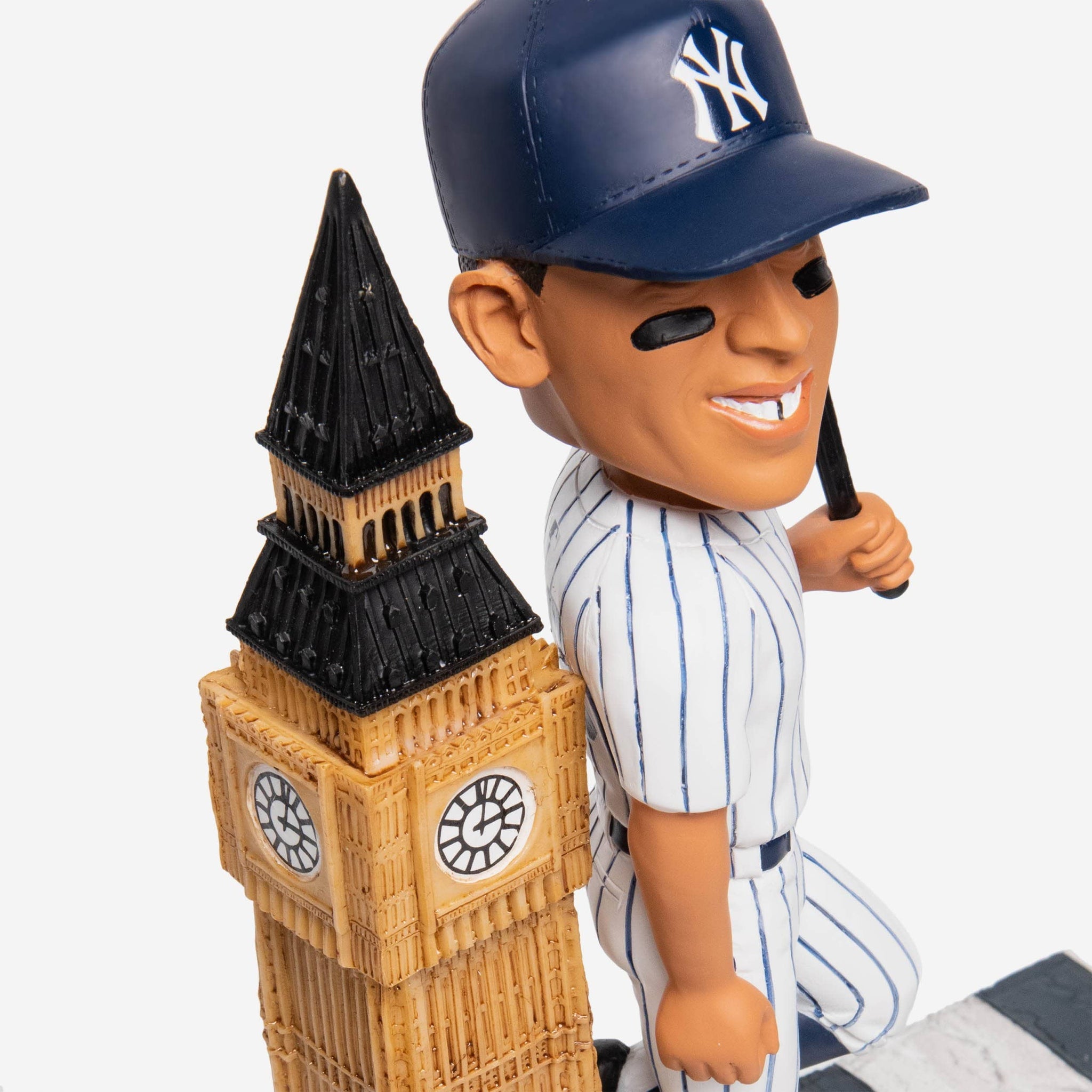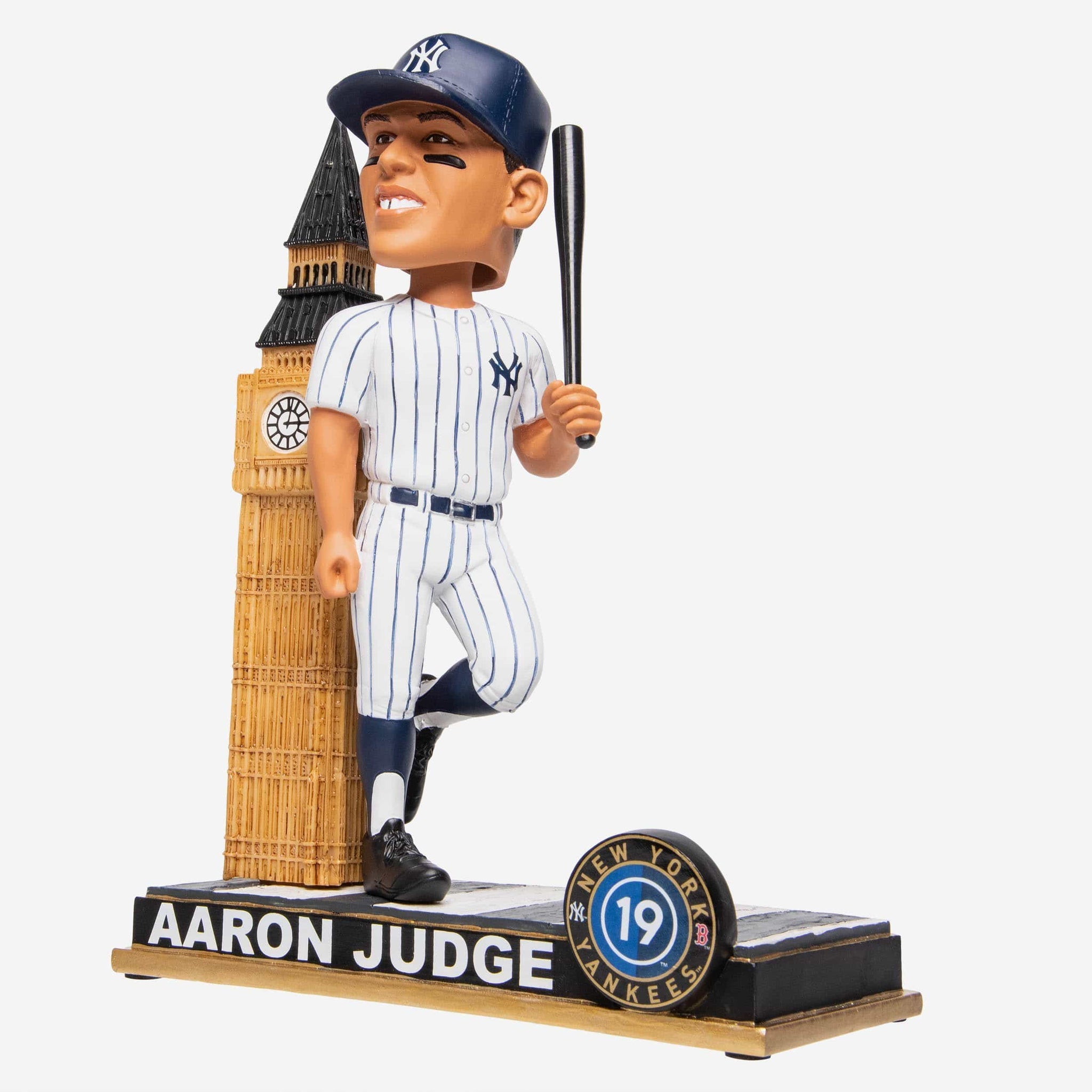 Greetings from across the pond. Here's one of London's most iconic towers standing next to one of New York's most iconic towers in this Aaron Judge New York Yankees London Series Big Ben Bobblehead. Oh, would you look at the time? It's gametime.