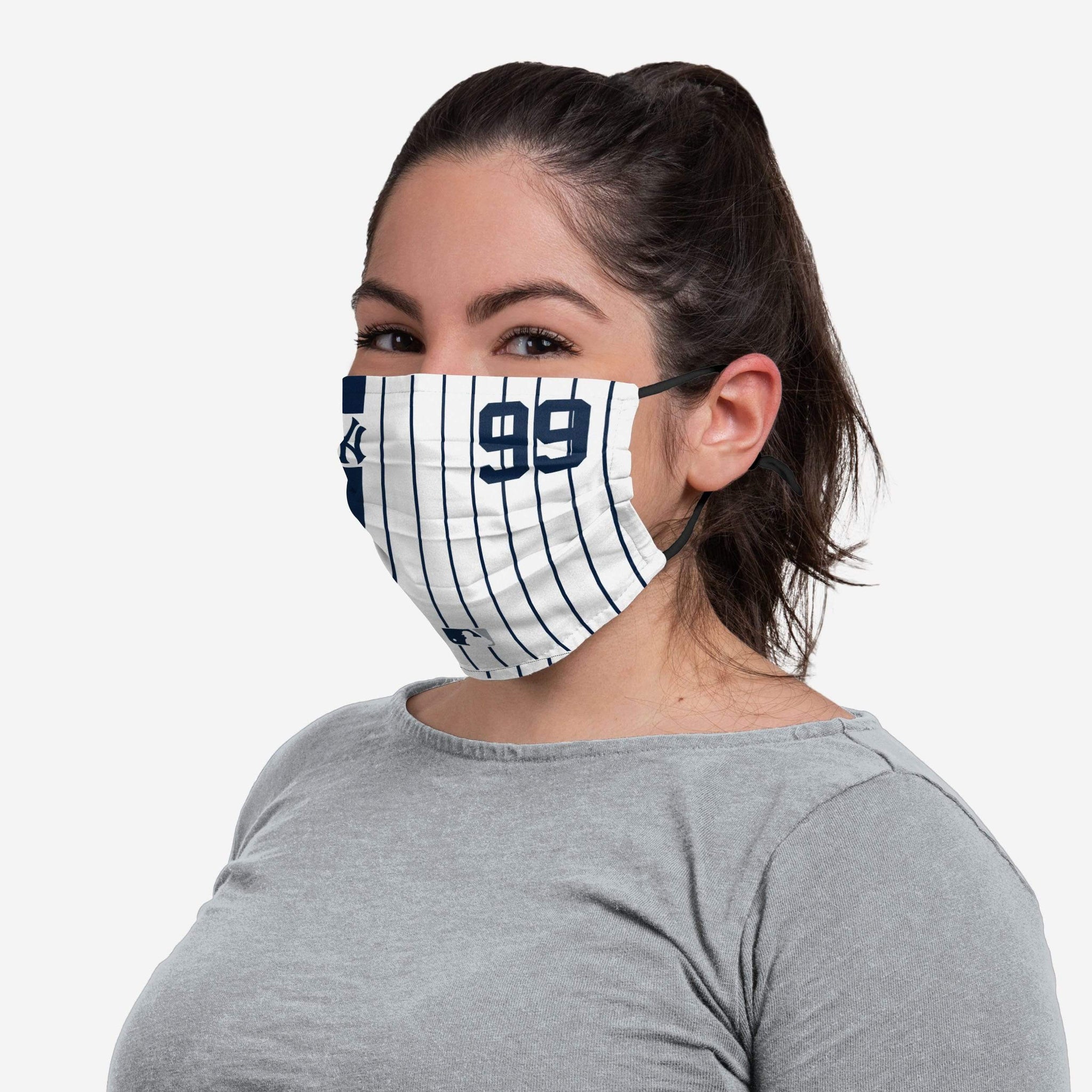 Your team, your player, your elite coverage! Cover up with the Aaron Judge New York Yankees On-Field Adjustable Pinstripe face covering!
