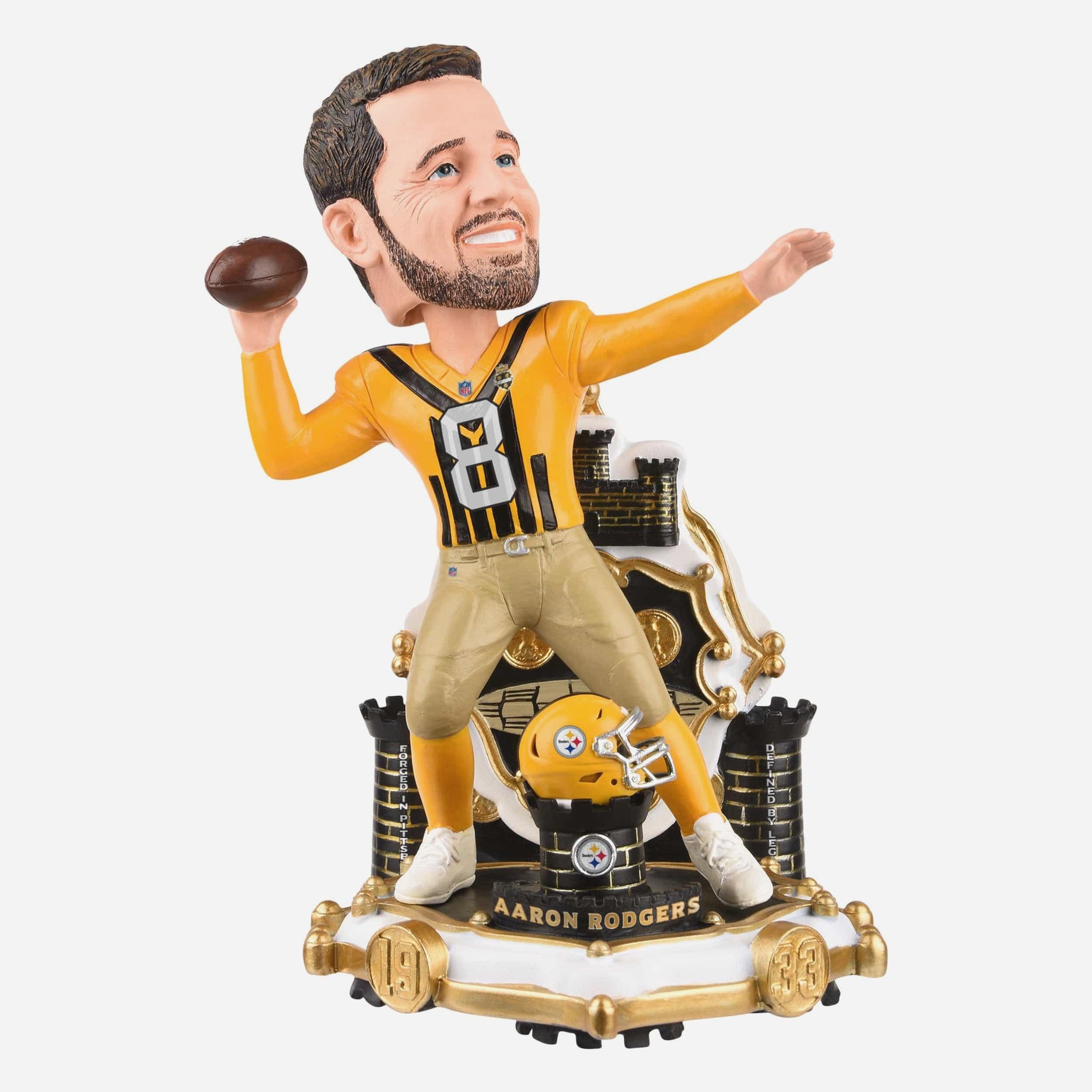 Steelers fans, celebrate history in the making! This Aaron Rodgers Pittsburgh Steelers Alternate Uniform Bobblehead brings a bold throwback look to your collection, combining gridiron grit with vintage flair fit for the Steel City.