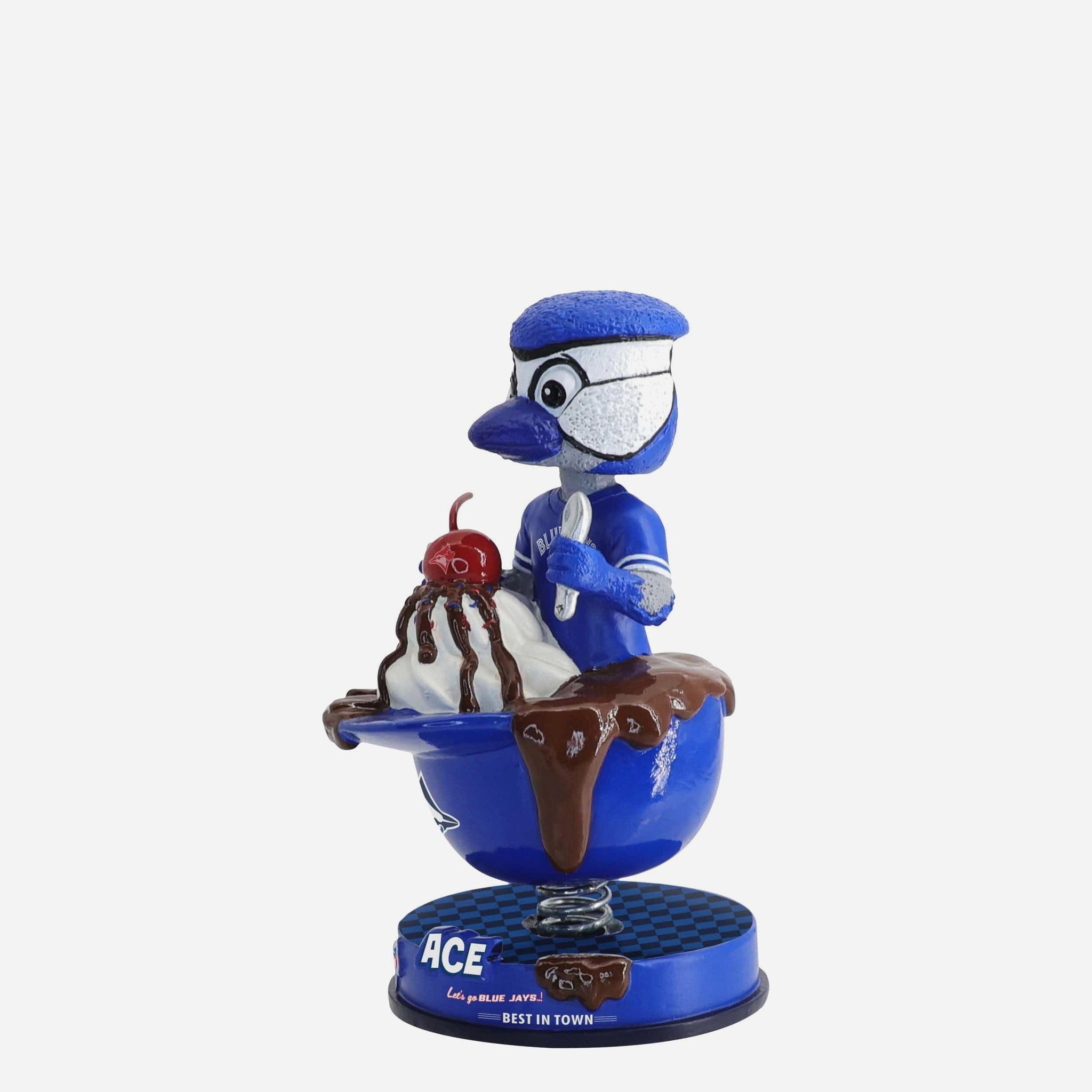 Ace is serving up team spirit, one scoop at a time! Add some flavor to your fandom with the Ace Toronto Blue Jays Ice Cream Helmet Mascot Mini Bobblehead.