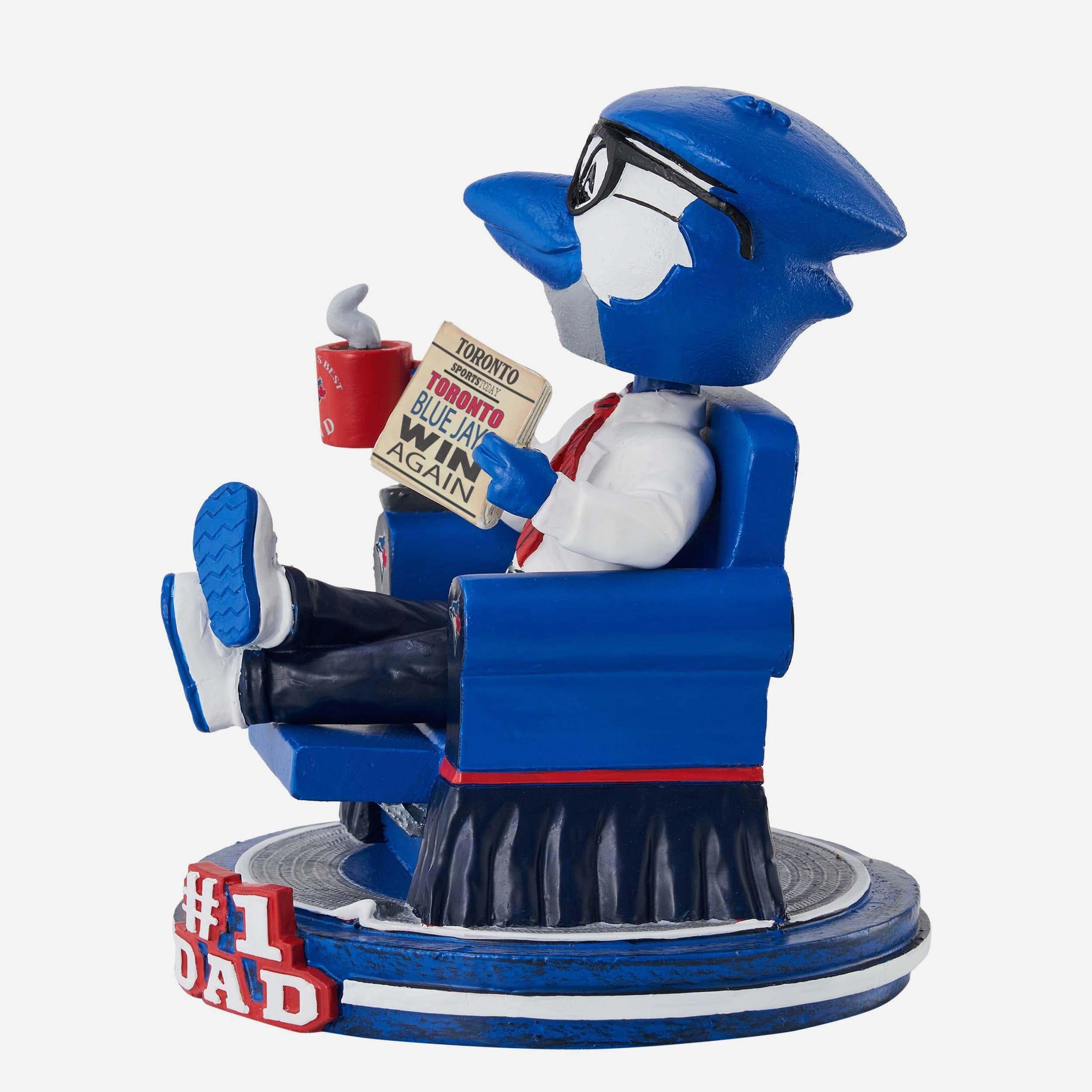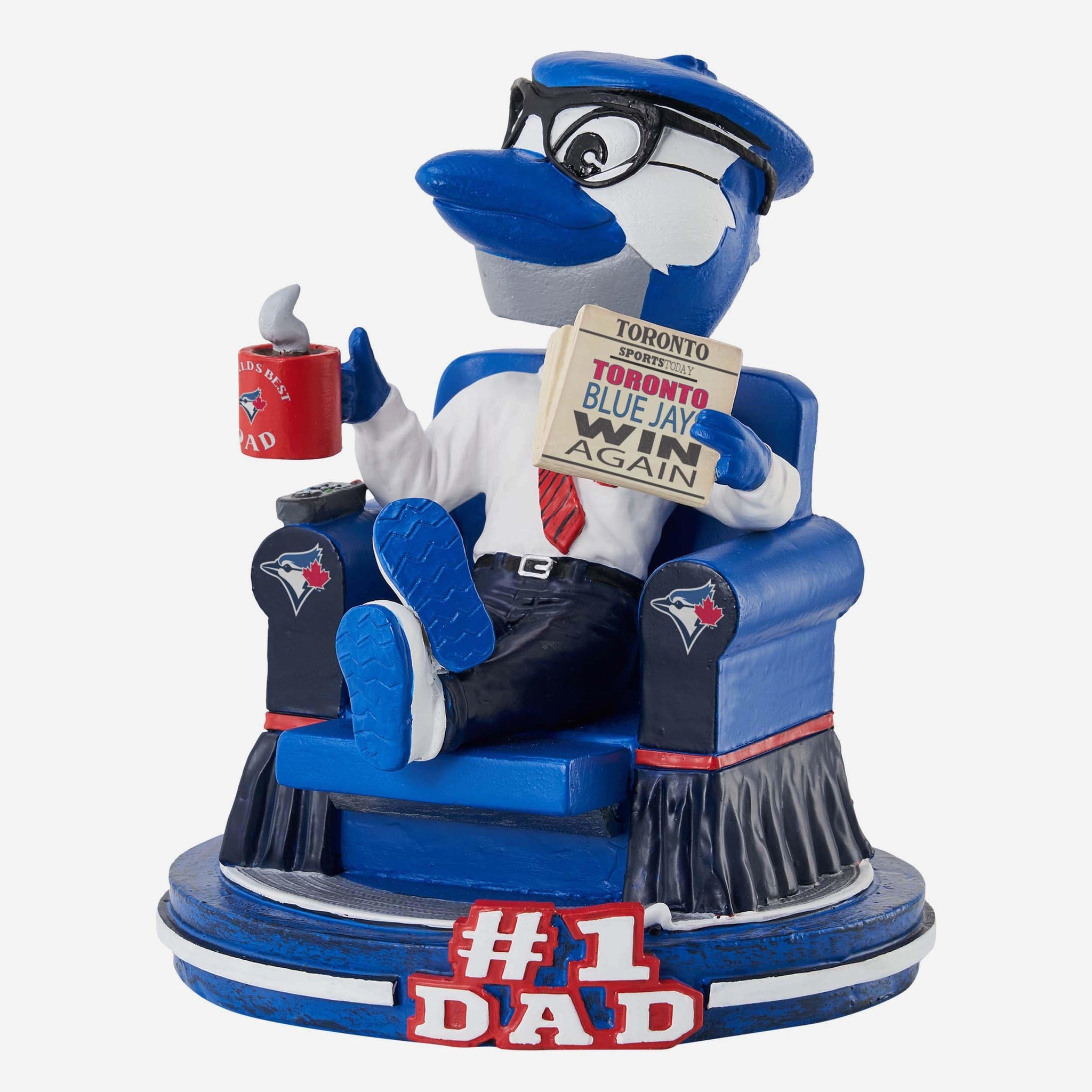 Best. Dad. Ever. Kick up the recliner, loosen your tie, and open up the newspaper (preferably to the sports section) with this Ace Toronto Blue Jays No. 1 Dad Mascot Bobblehead.