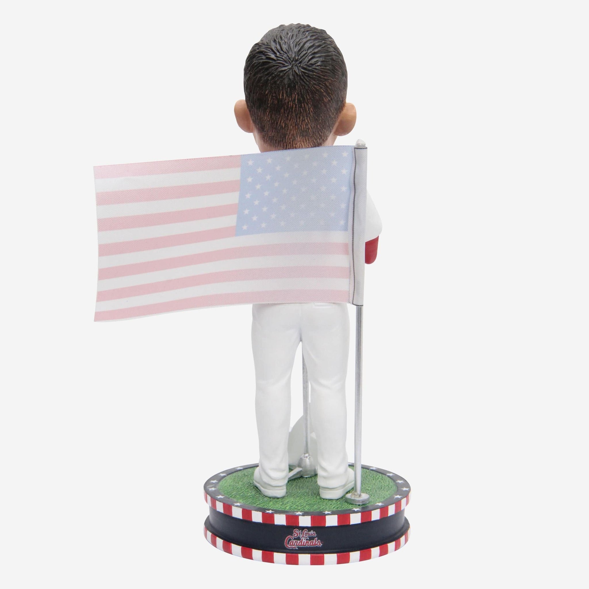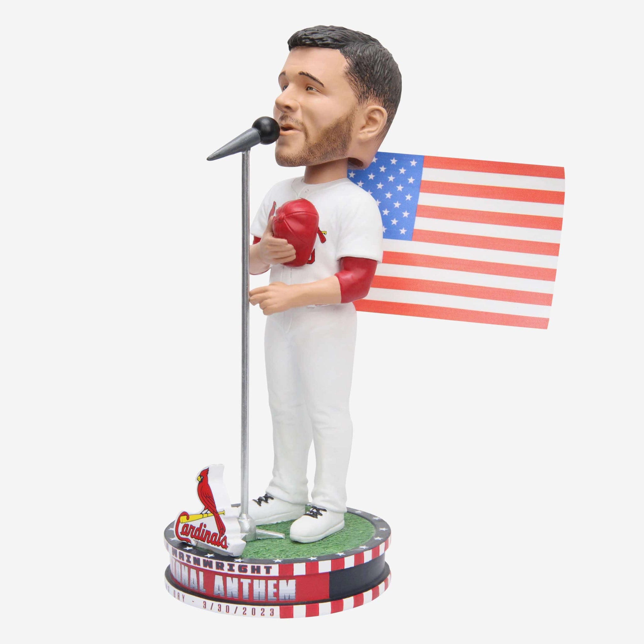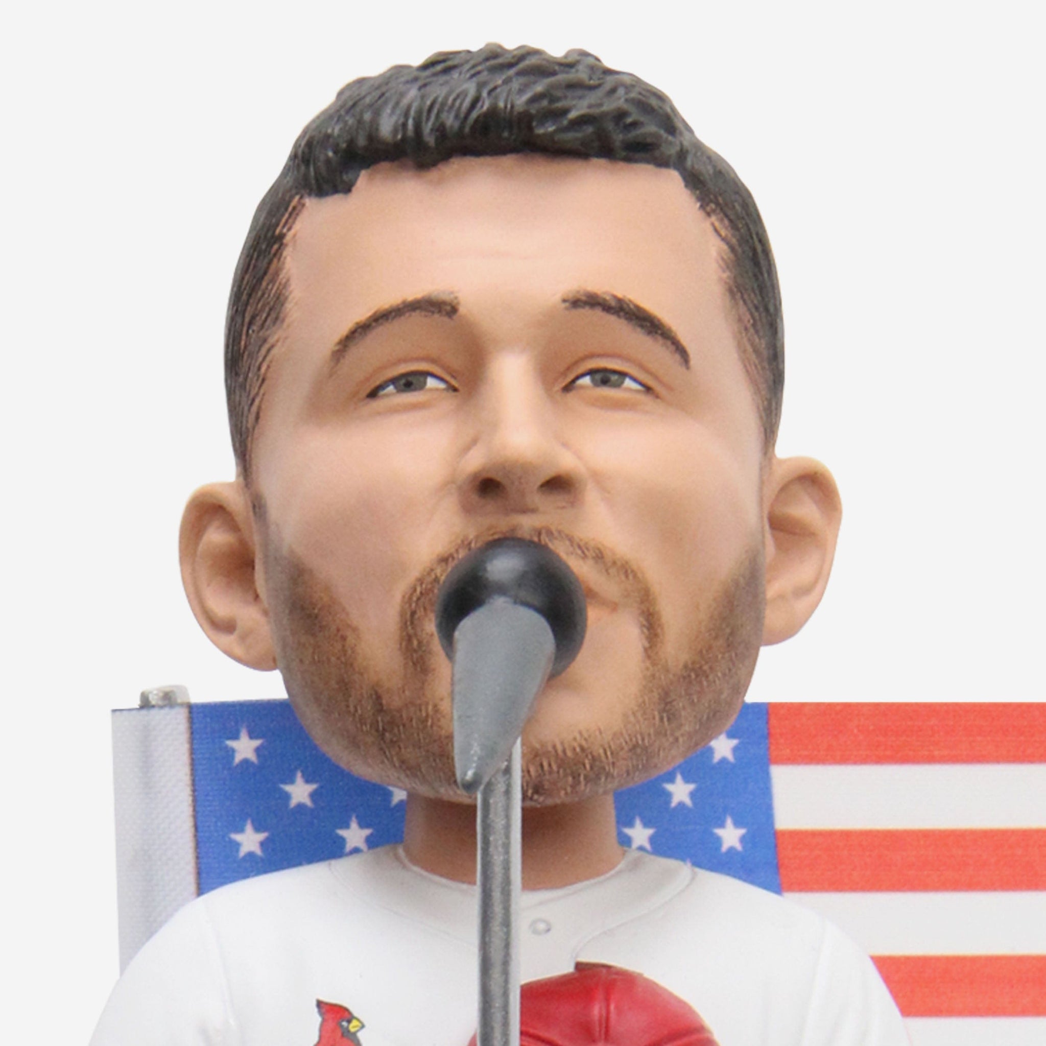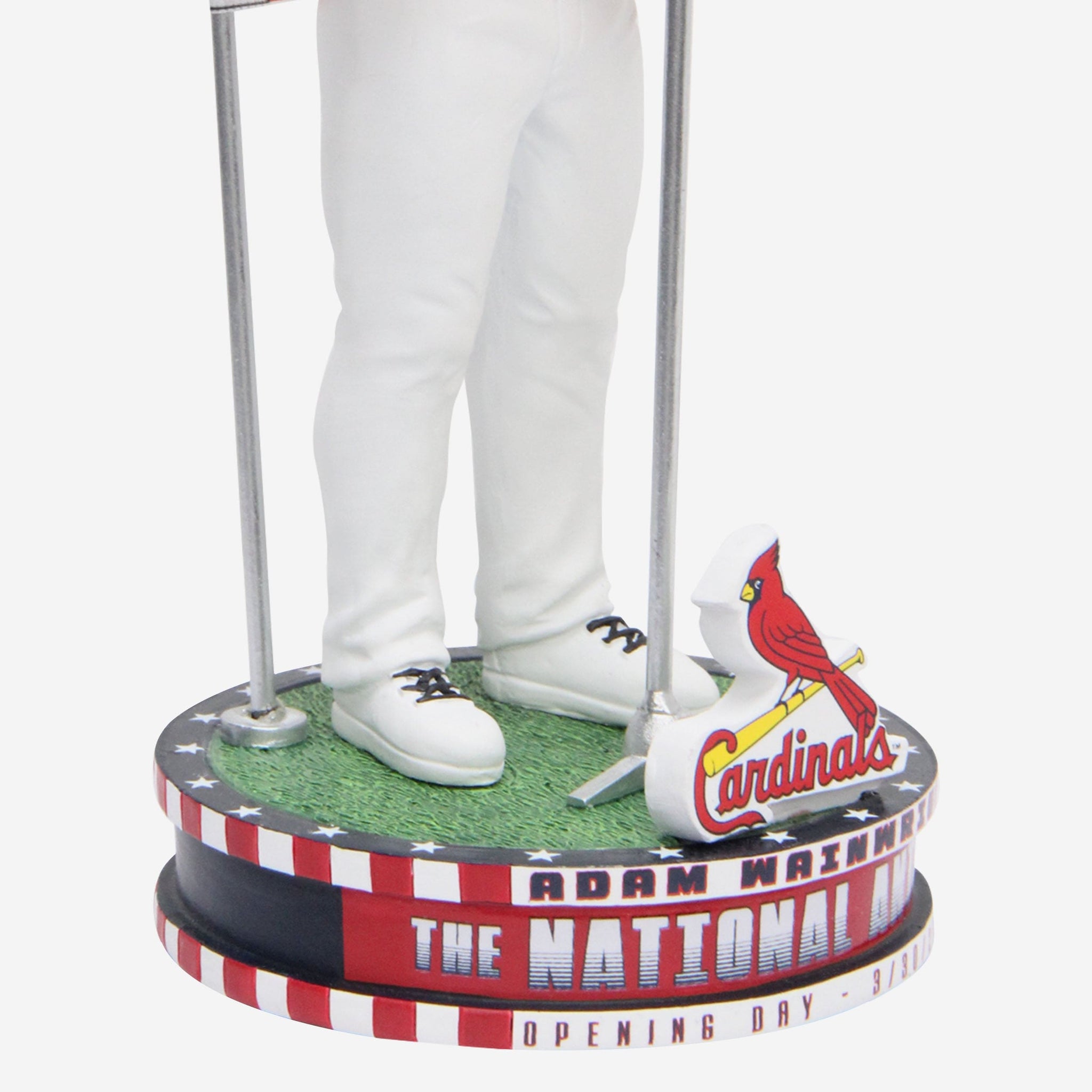O say, can you see? Singing it and slinging it on the mound in St. Louis, the Adam Wainwright St. Louis Cardinals Opening Day National Anthem Bobblehead will help keep your collection in tune.