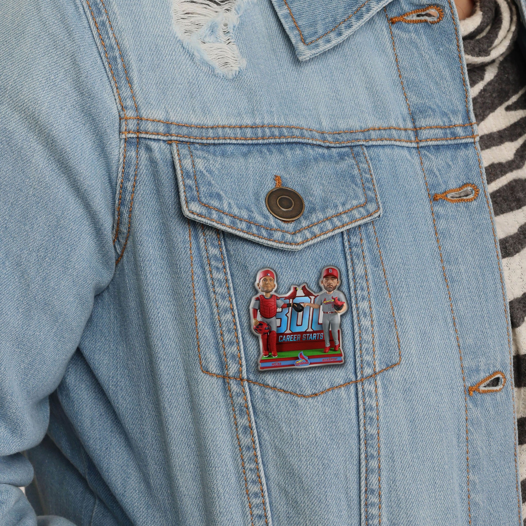 - Player pin depicts Wainwright and Molina wearing their gameday uniforms in a fist bumping pose, ready to dominate the opposition once again