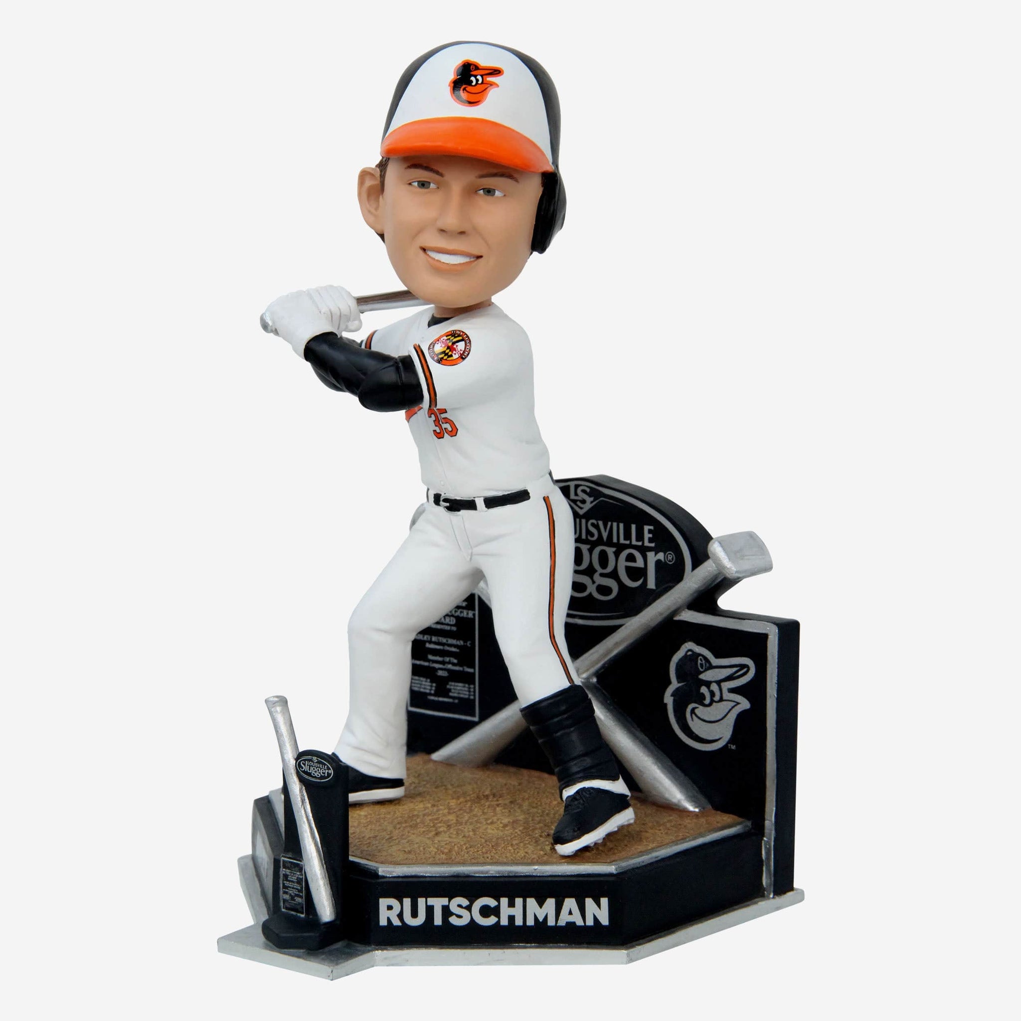 - Portrays Rutschman wearing his white gameday uniform in a batting action pose, ready to show off the slugging skills that earned him that award