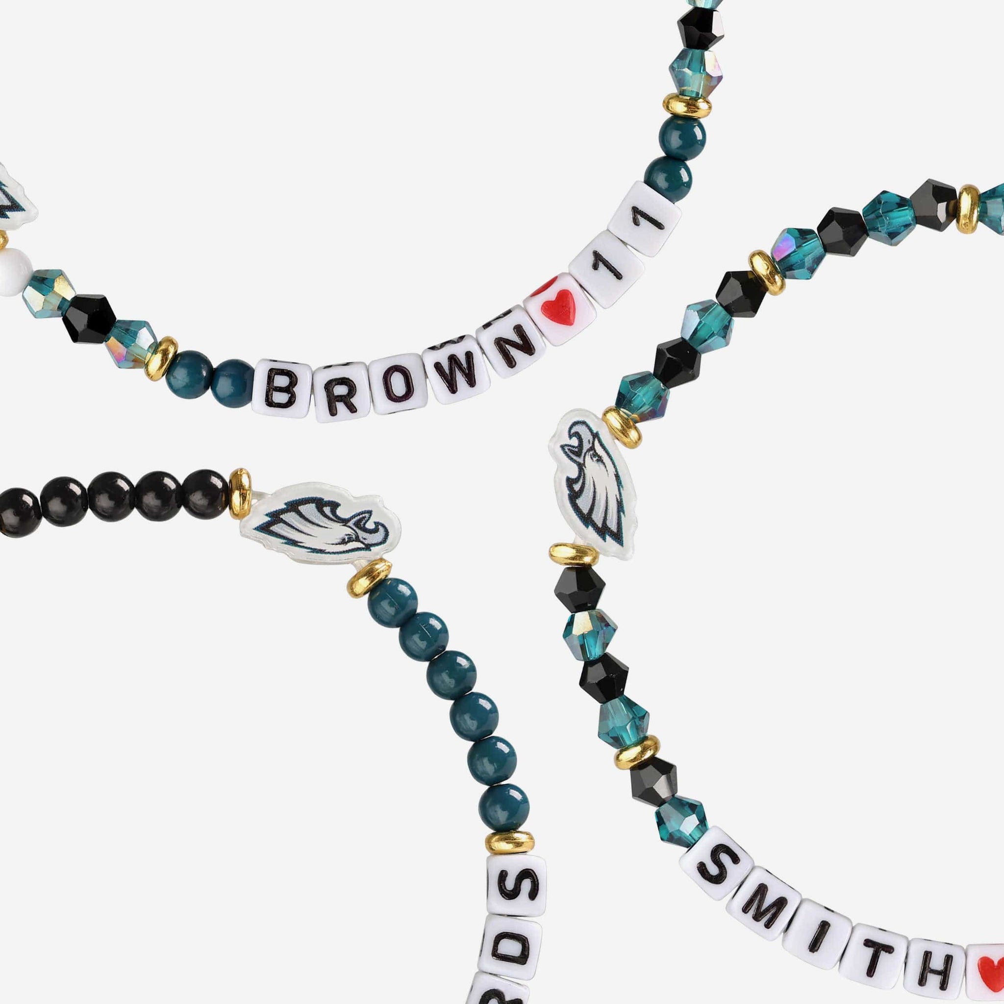 - Thematic words displayed: Letter cubes are organized on a friendship bracelet string to display team-specific words, messages, and player names that will make sure these A.J. Brown & DeVonta Smith player friendship bracelets always have your team spirit front and center.