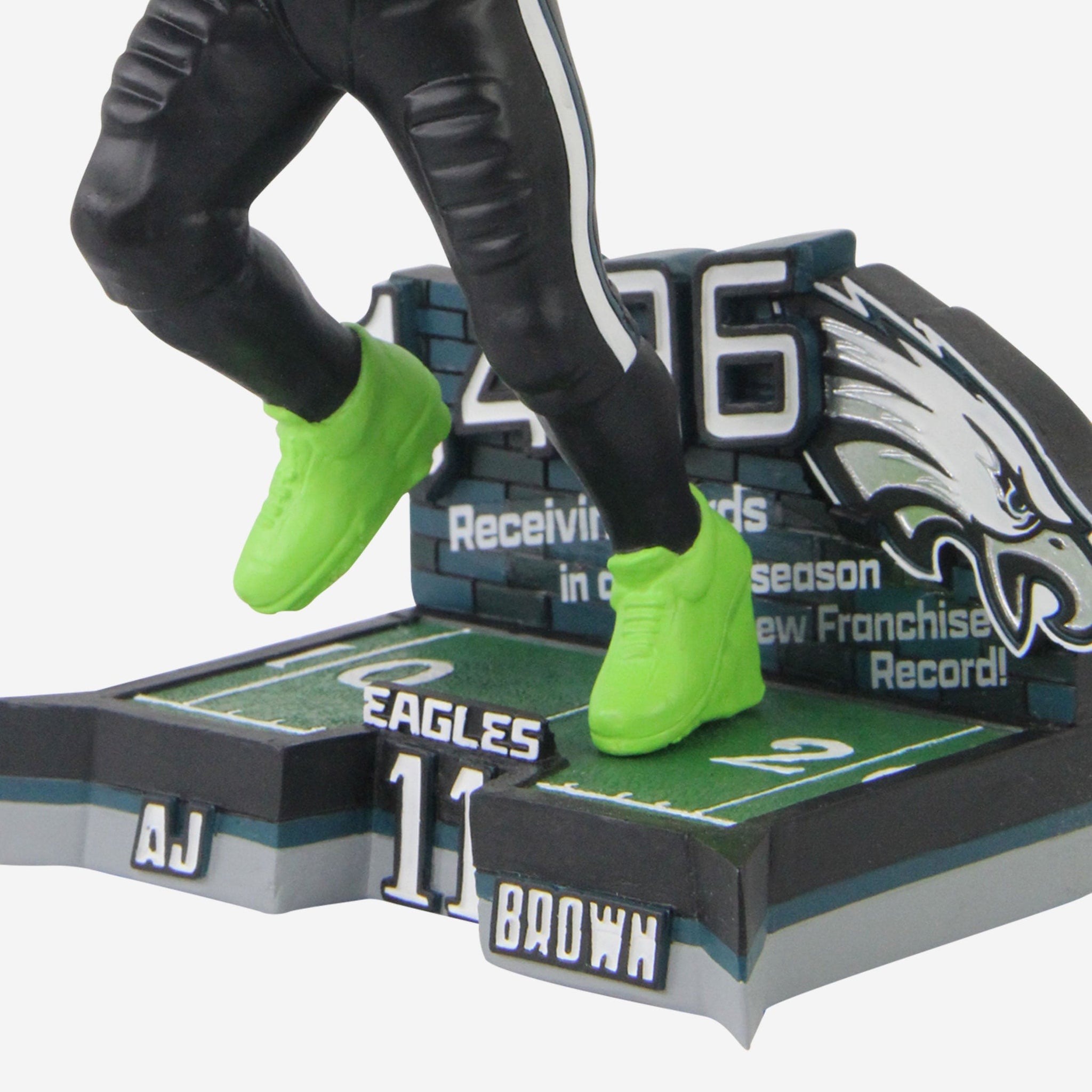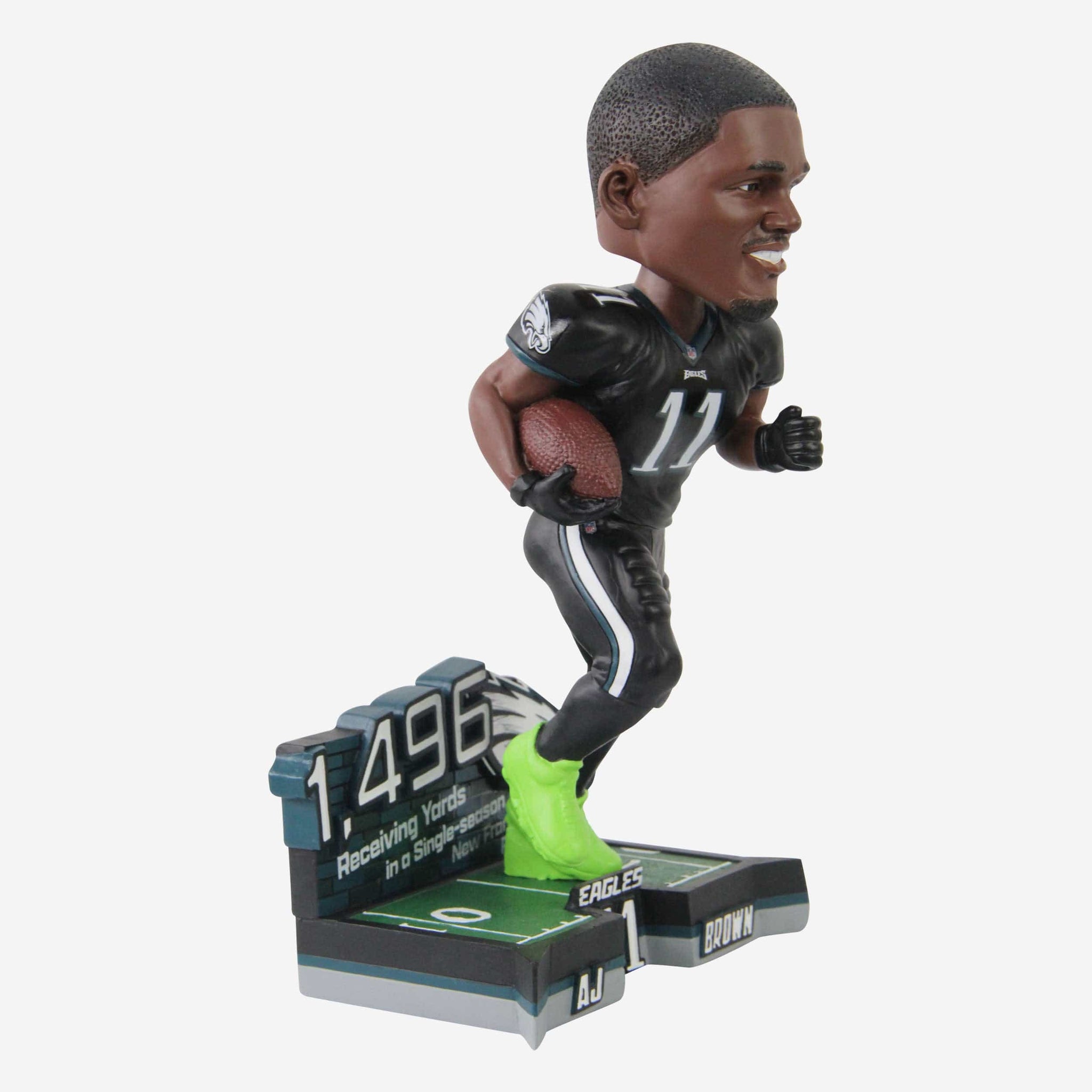 Fly, A.J., fly! This Eagle is making his nest at the top of the franchise leaderboard after his historic season, and you can bring that big play ability to your lineup with this A.J. Brown Philadelphia Eagles Franchise Single-Season Receiving Yards Record Bobblehead.