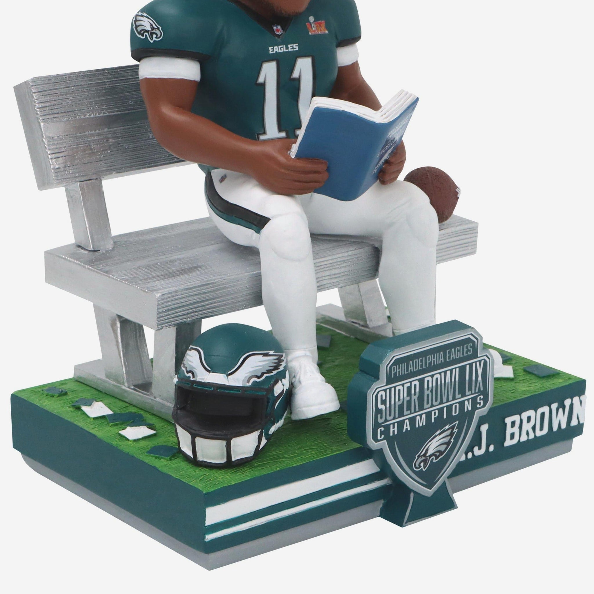 The book club of champions! Make your celebration a page-turner with this A.J. Brown Philadelphia Eagles Super Bowl LIX Champions Champion Book Club Bobblehead.