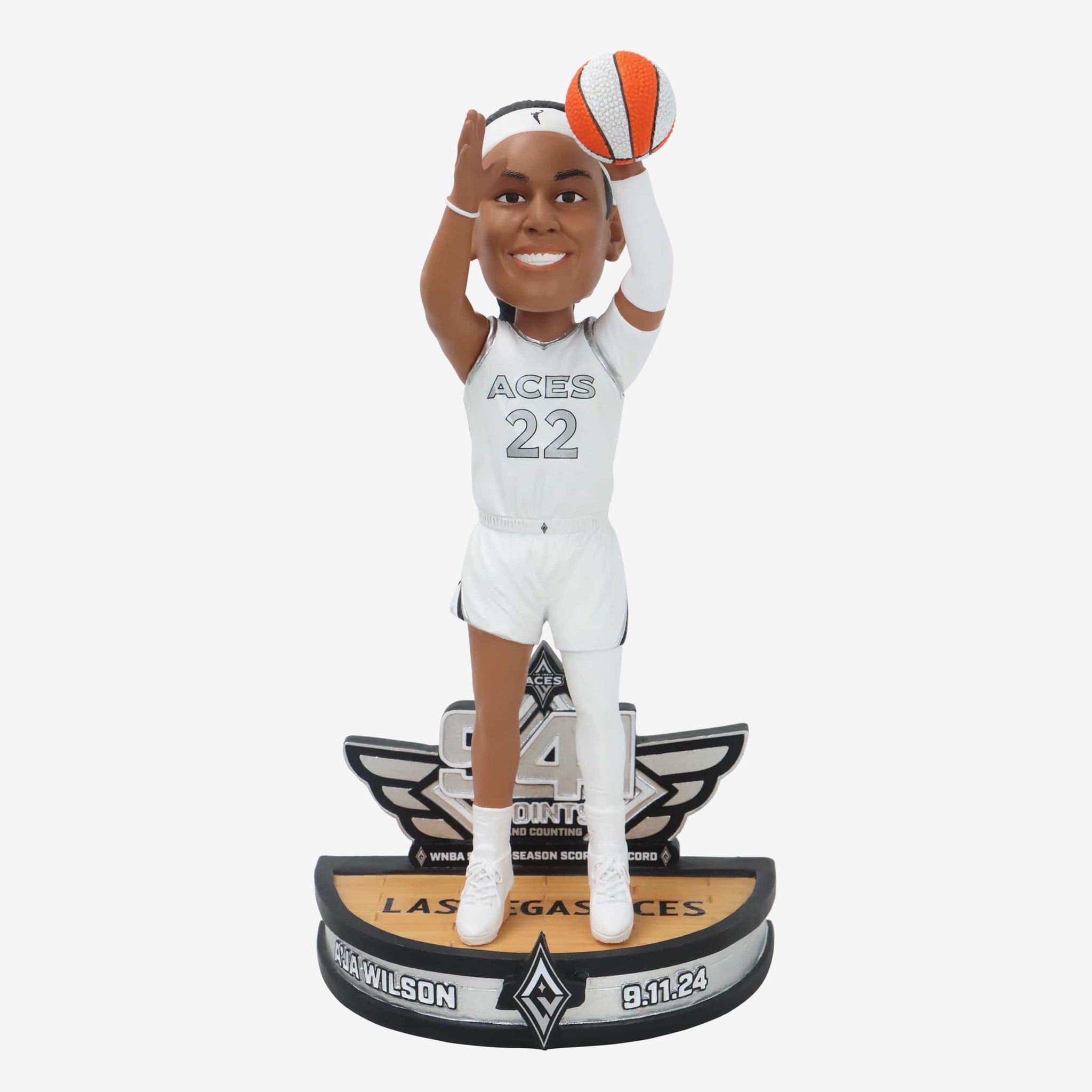 The most points scored in a WNBA single season belongs to A’ja Wilson! Showcase her history-making performance in your collection with this A'ja Wilson Las Vegas Aces WNBA Single Season Scoring Record Bobblehead.