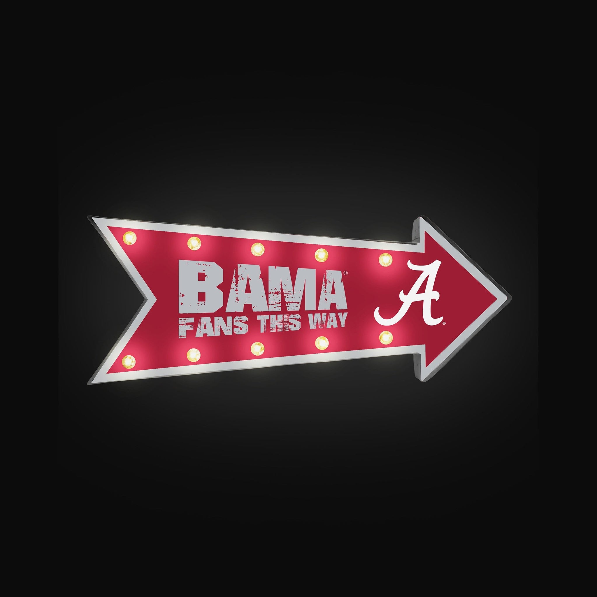Having some friends over for the big game? Point them in the right direction with this Alabama Crimson Tide Arrow Marquee Sign. It'll look great in your fancave, and shines as bright as your fandom.