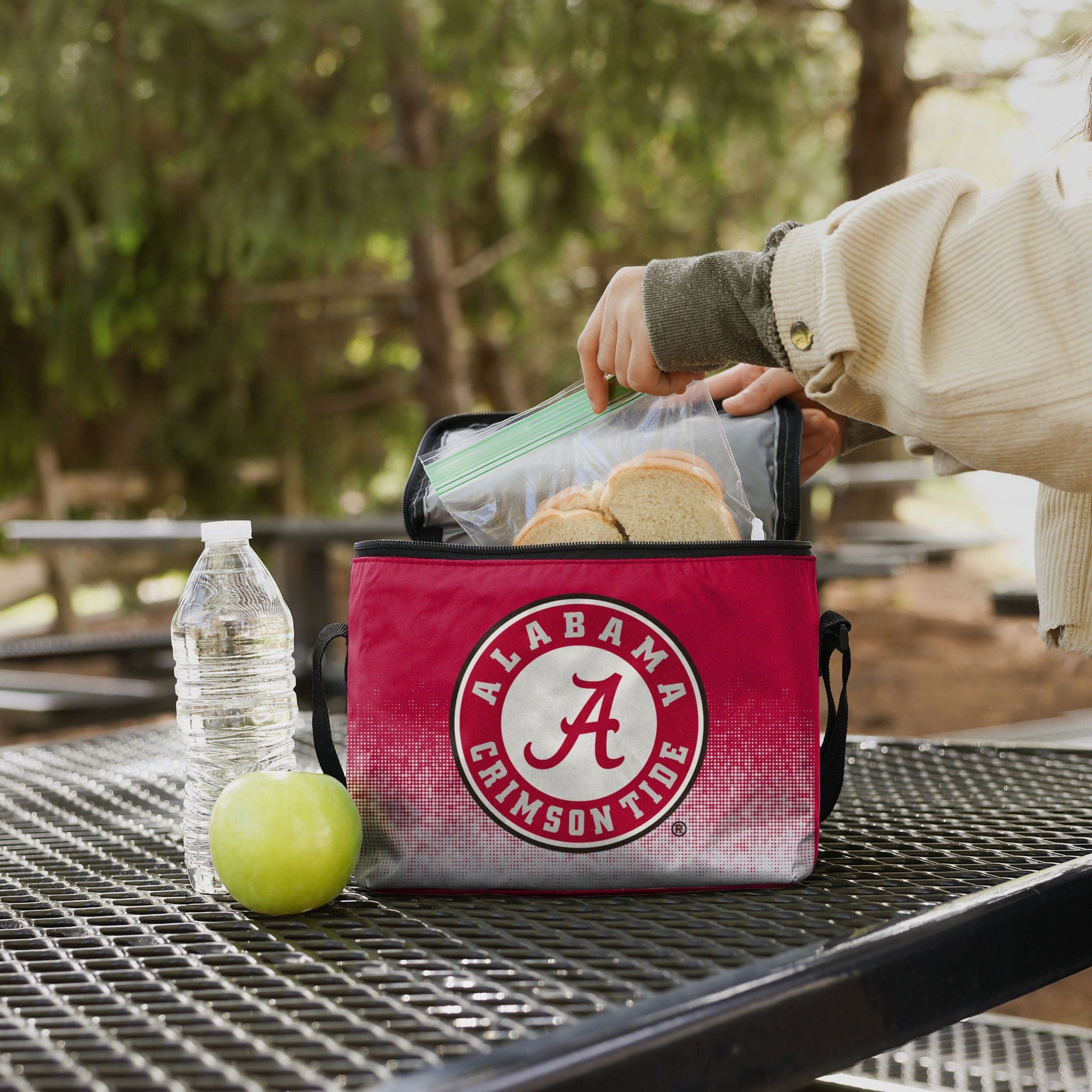 There are two things you never show up to a tailgate without: your team spirit, and the drinks. This Alabama Crimson Tide Big Logo Gradient 6 Pack Cooler has you covered for both. Big enough to store a 6-pack of awesomeness.