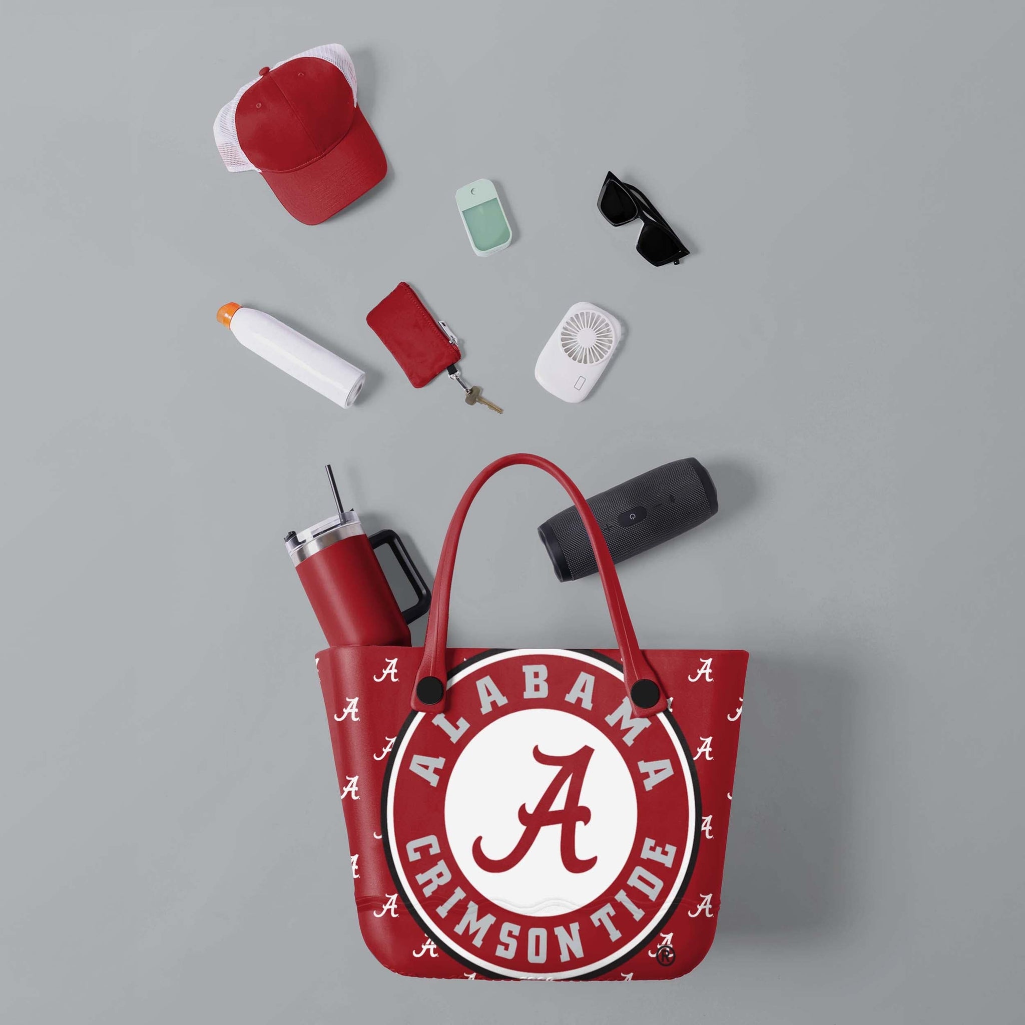 Looking for a bag as durable and dependable as your team spirit? You've found it. Whether you're running the tailgate, hitting the beach, or going on any adventure, pack up your fandom and take it on the go with this Alabama Crimson Tide Big Logo Mini Print Tailgate Tote Bag.