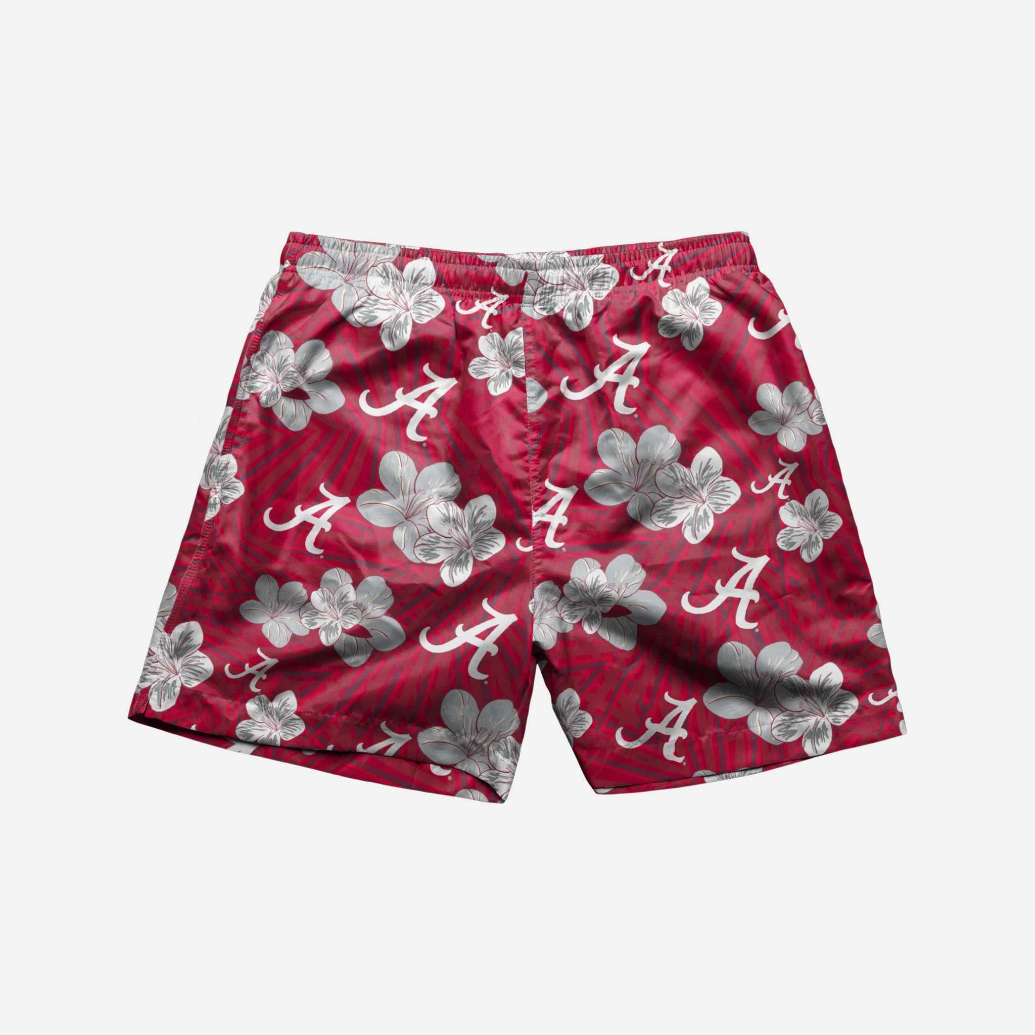 Rock your fandom and say "aloha" to the pool, ocean, lake, hot tub, or whatever body of water you're getting into while you wear these Alabama Crimson Tide Hibiscus Swimming Trunks.