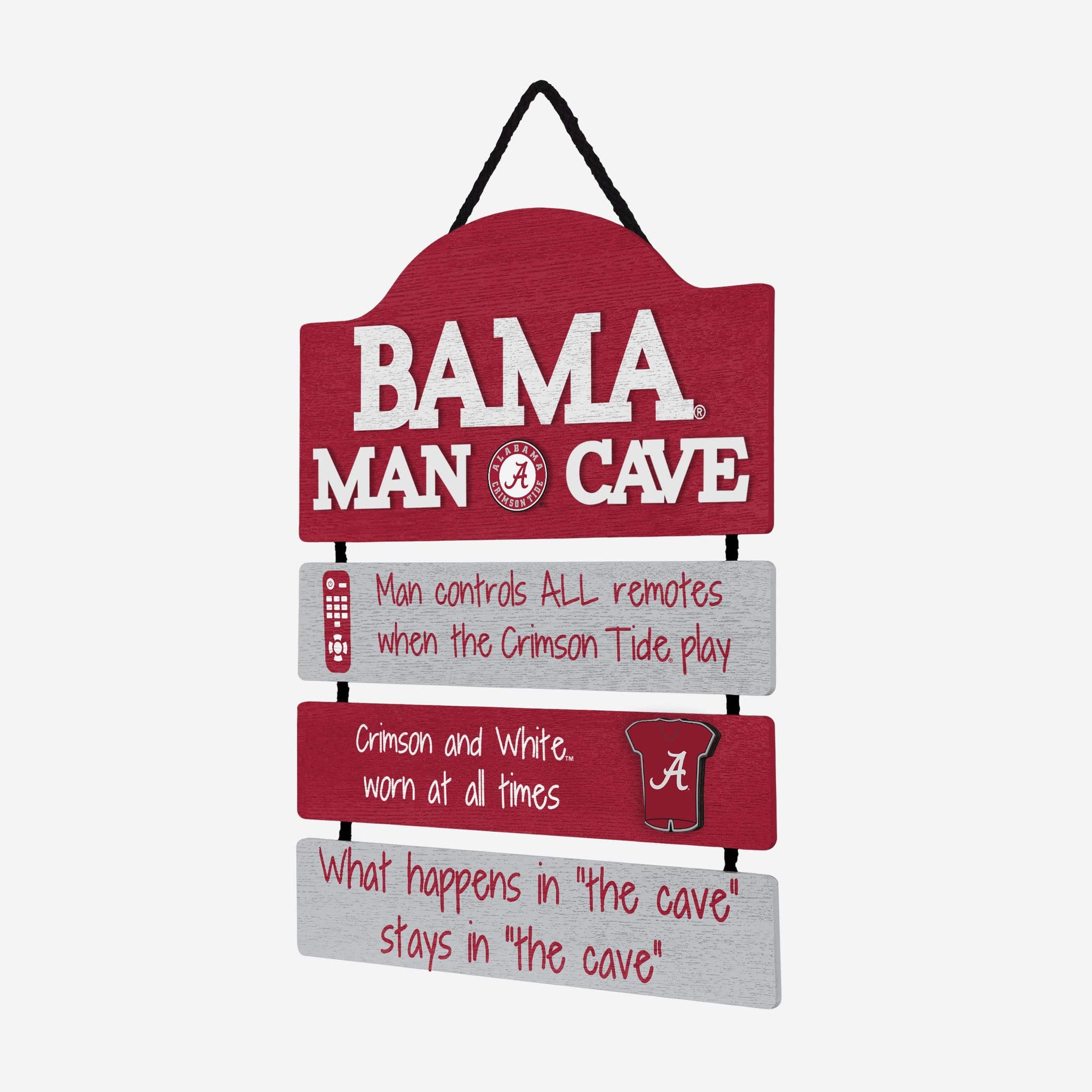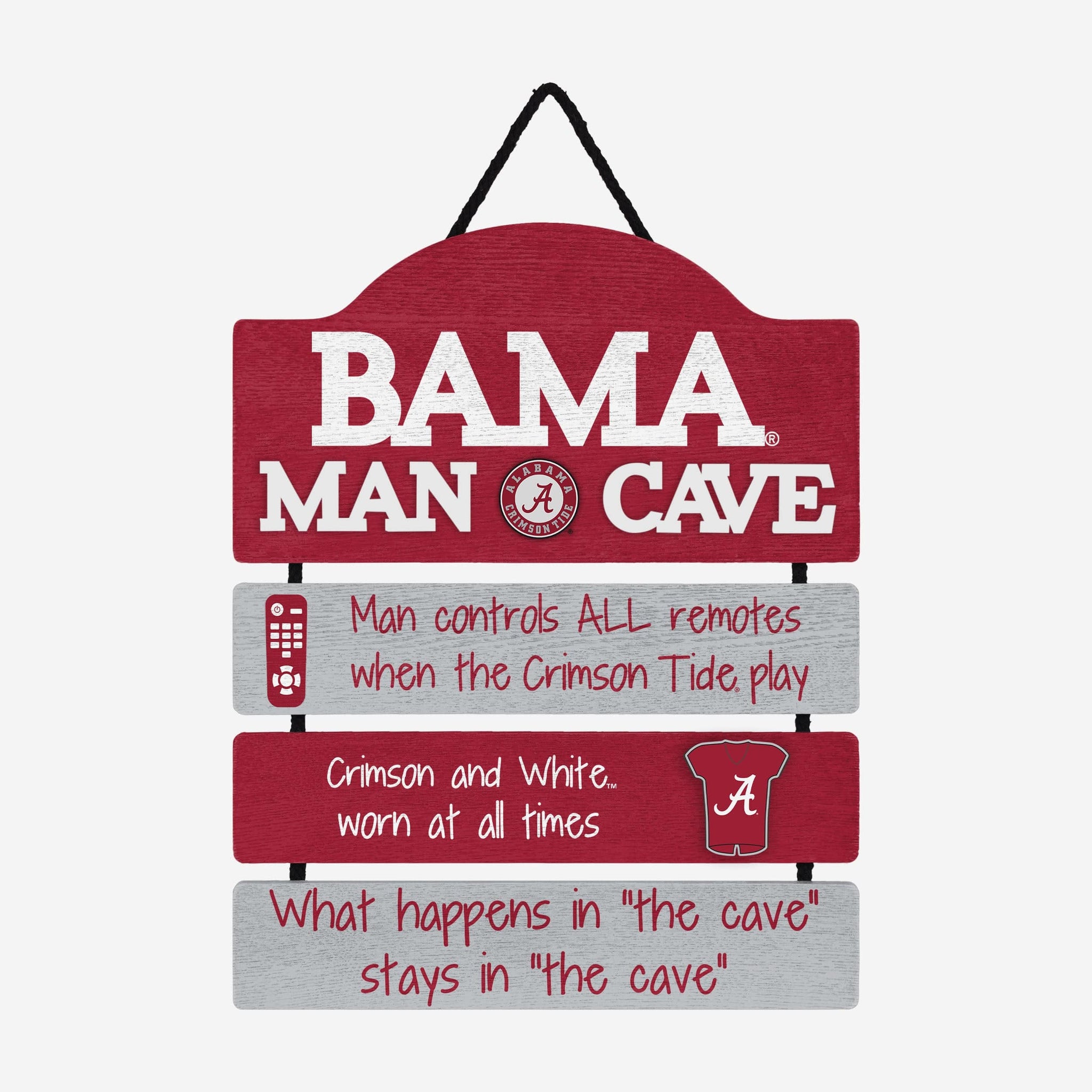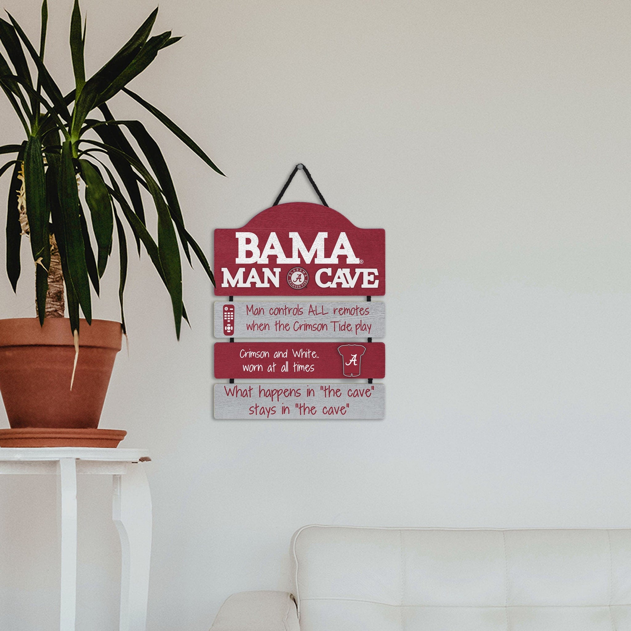 So, you're hosting the big watch party, and want to make sure you've decorated enough to impress your fellow fans. We've got you covered. This Alabama Crimson Tide Mancave Sign lets everyone know who the fan in charge is, and gives your home field plenty of advantage.
