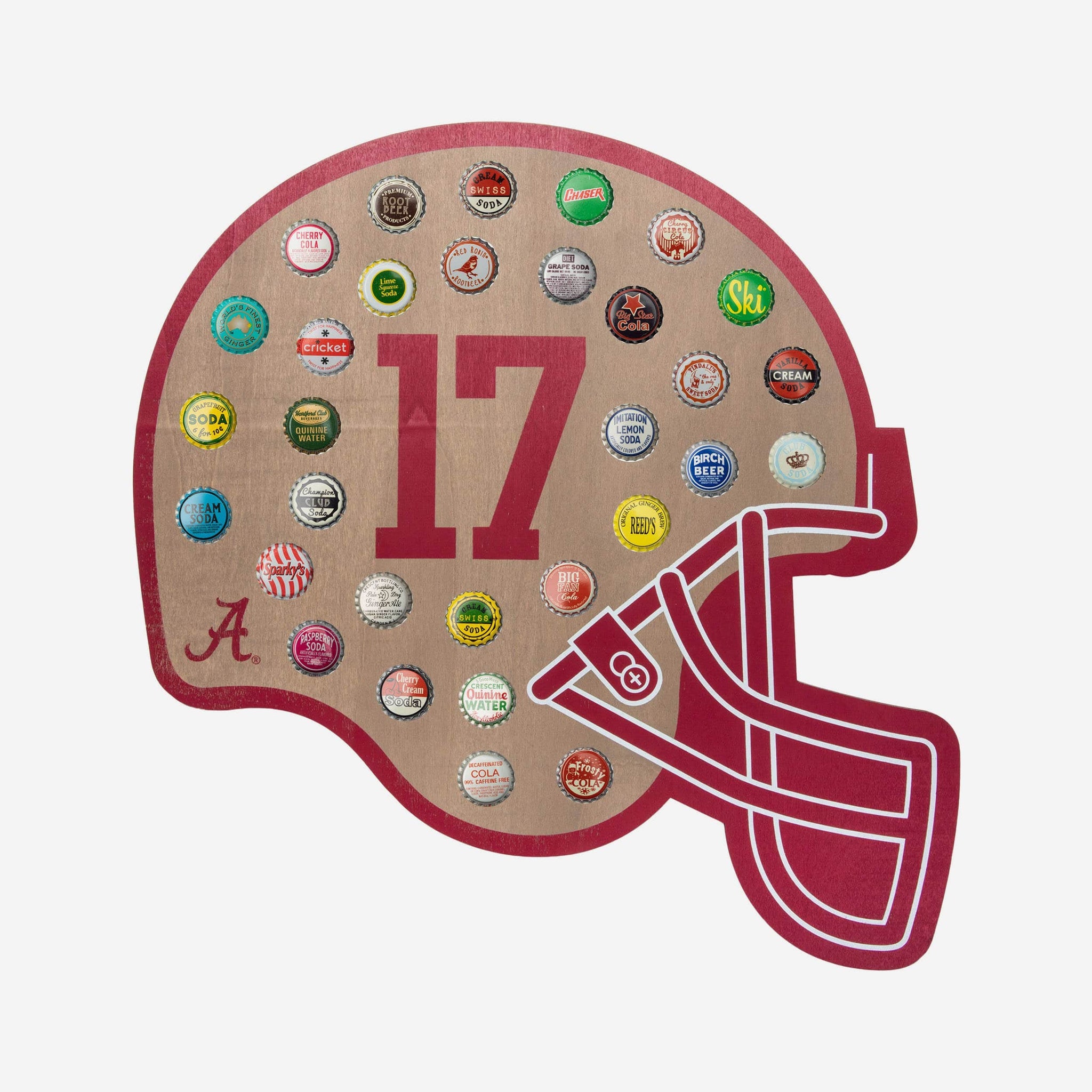 Cap off your fancave decorating and keep track of every cold one you crack while watching the game with this Alabama Crimson Tide Push Bottle Cap Wall Sign.