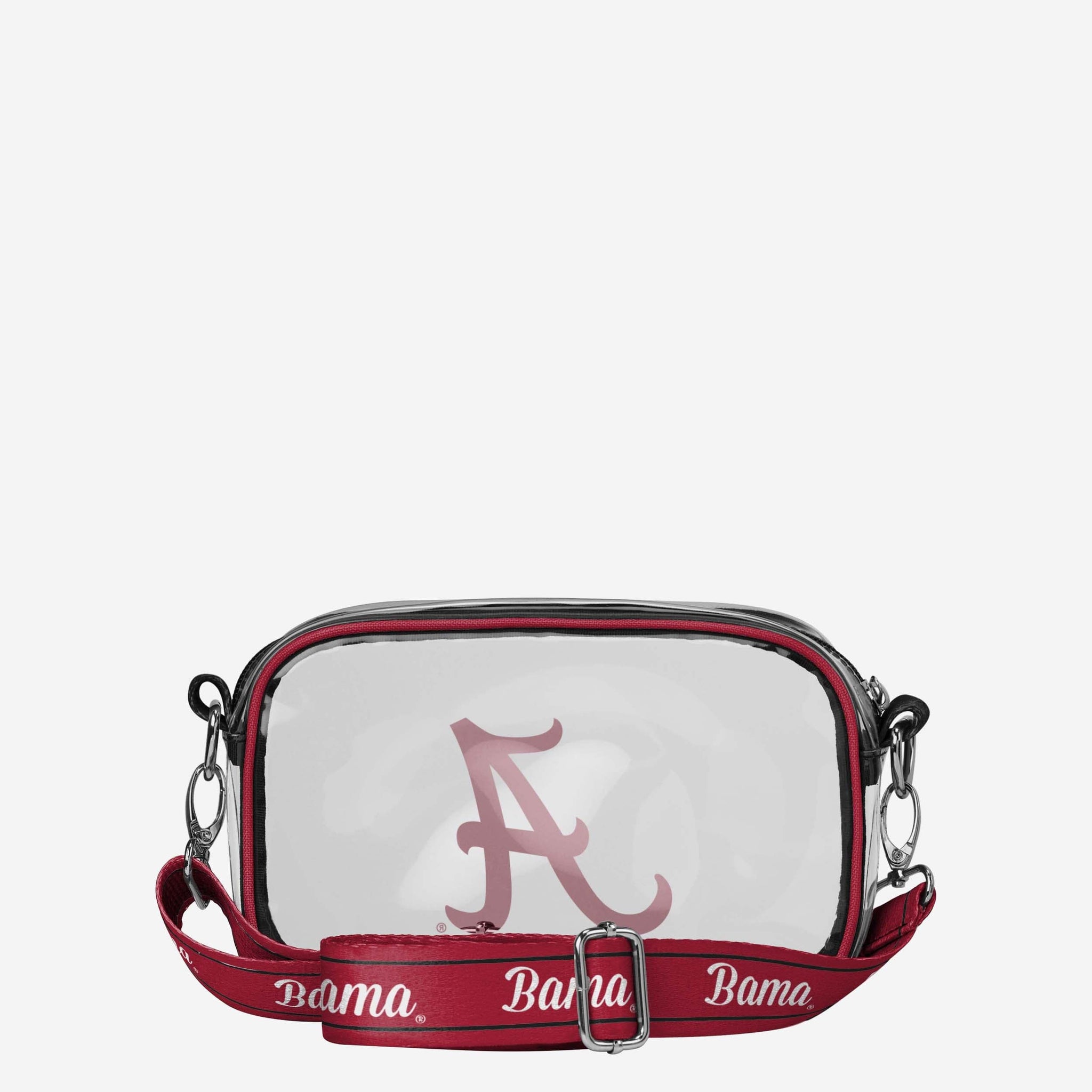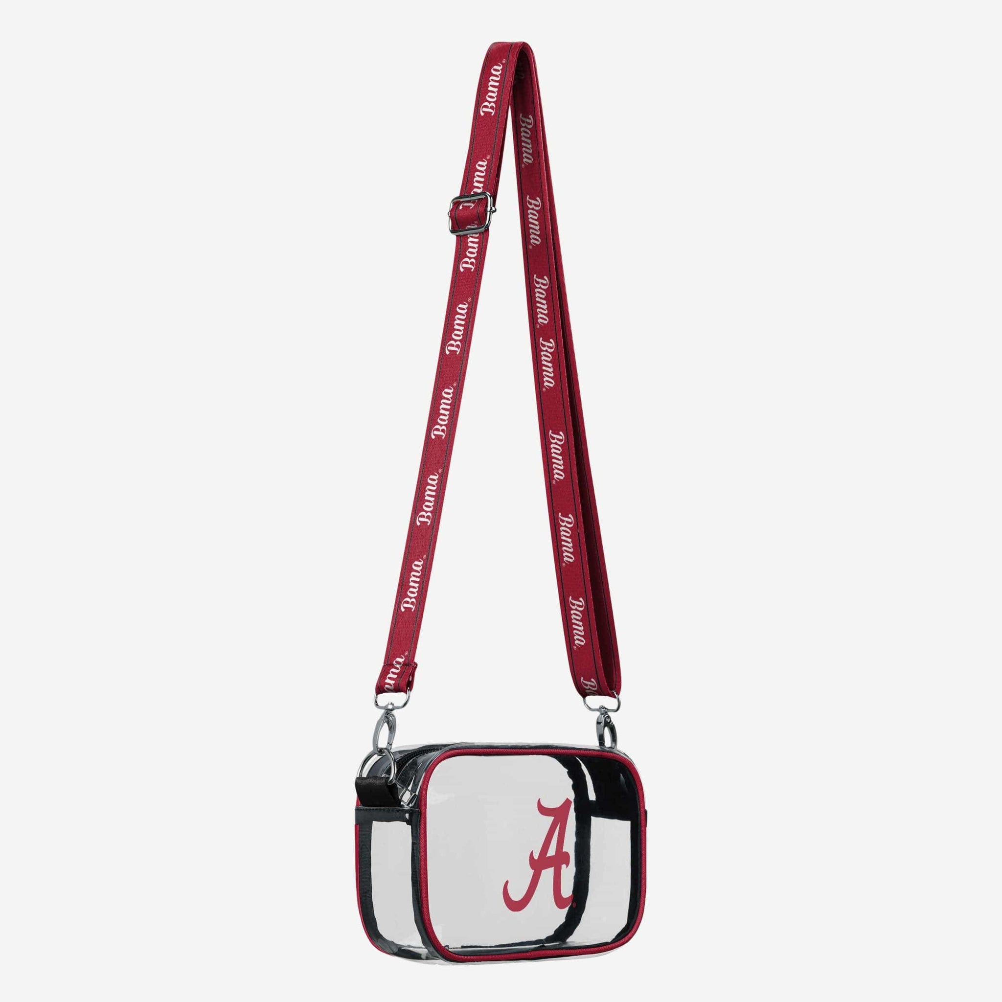 Over your shoulder and off to the game. Whether you're running errands on the town or running the tailgate in the parking lot, this Alabama Crimson Tide Team Stripe Clear Crossbody Bag is the perfect way to carry the team like never before.