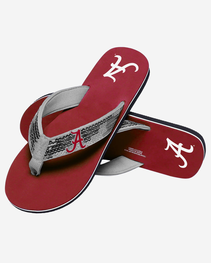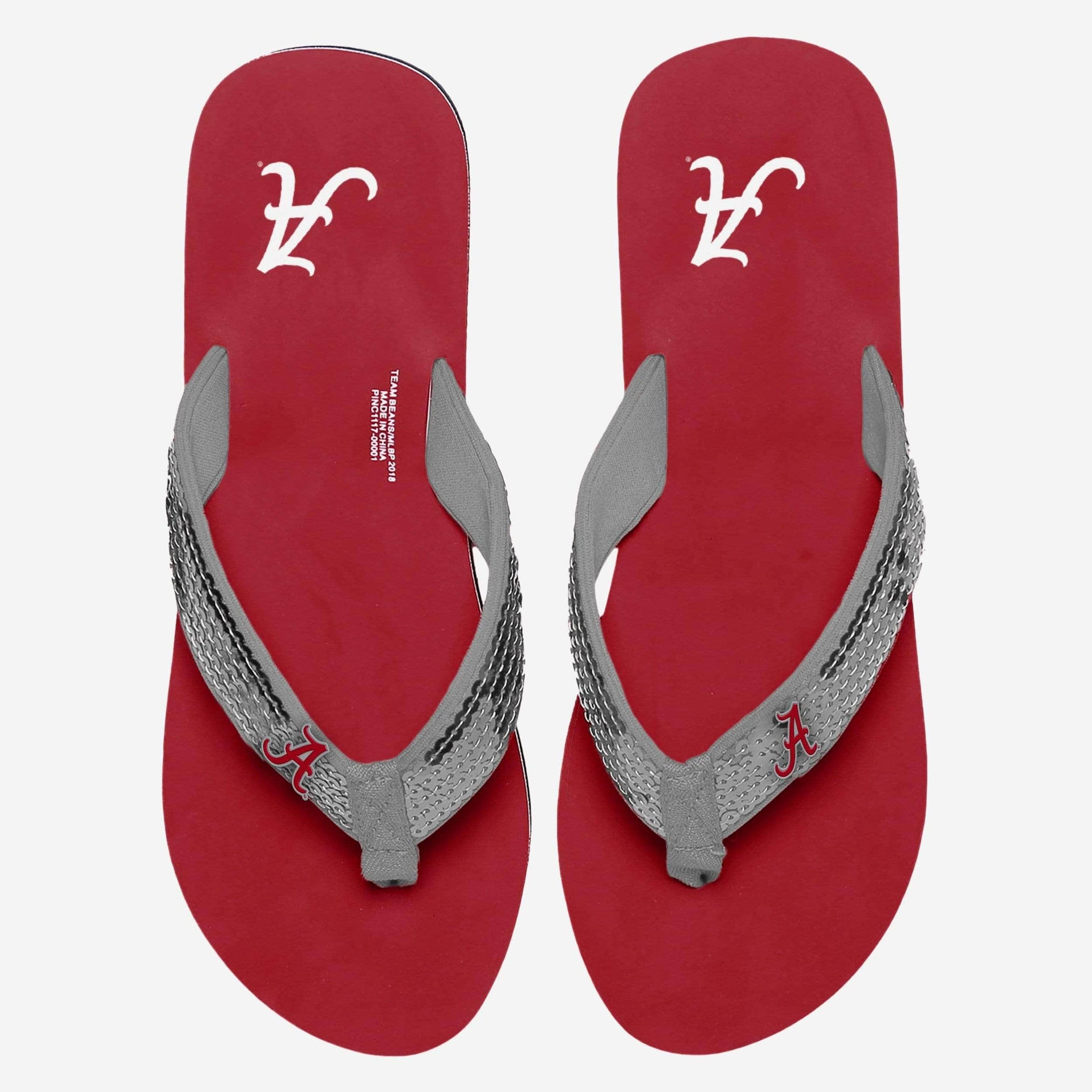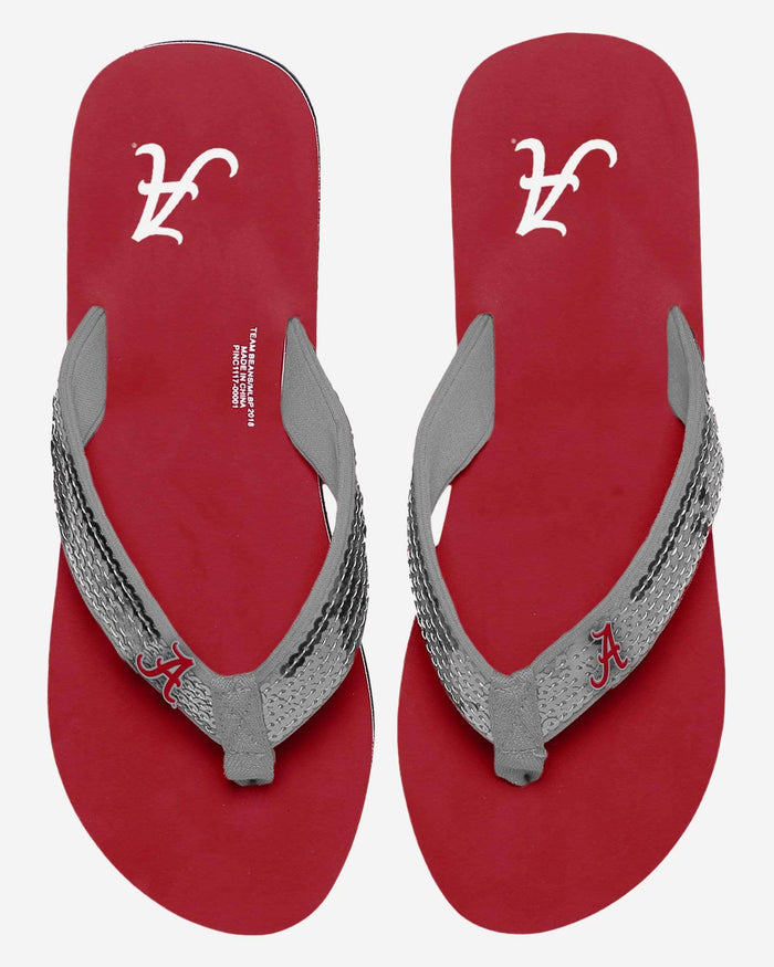 Nothing comes close to shining as bright as your team spirit. Well, nothing other than these Alabama Crimson Tide Womens Sequin Flip Flops. Rock your fandom in comfort and style. Just don't be surprised when people need sunglasses when they look at you.