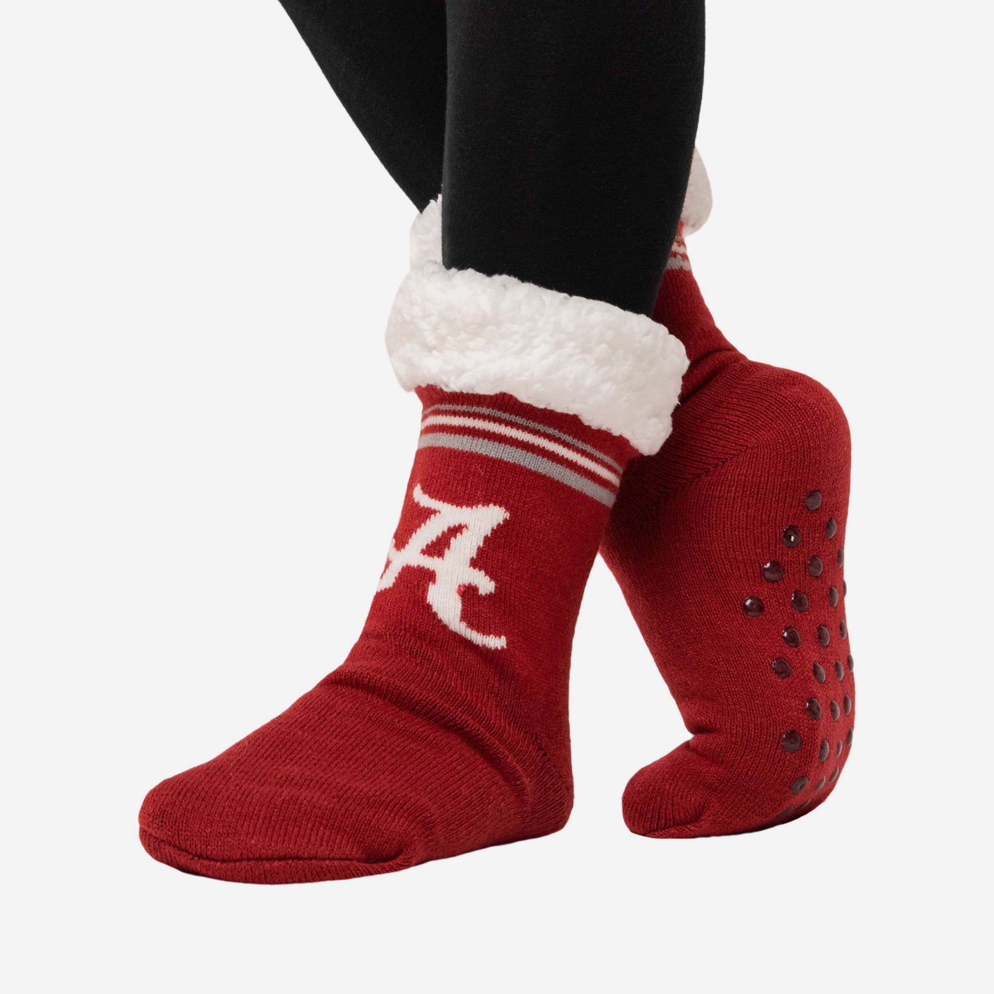 Name a more dynamic duo than the comfort and team spirit on display in these Alabama Crimson Tide Stripe Logo Tall Footy Slipper Socks. We'll wait.