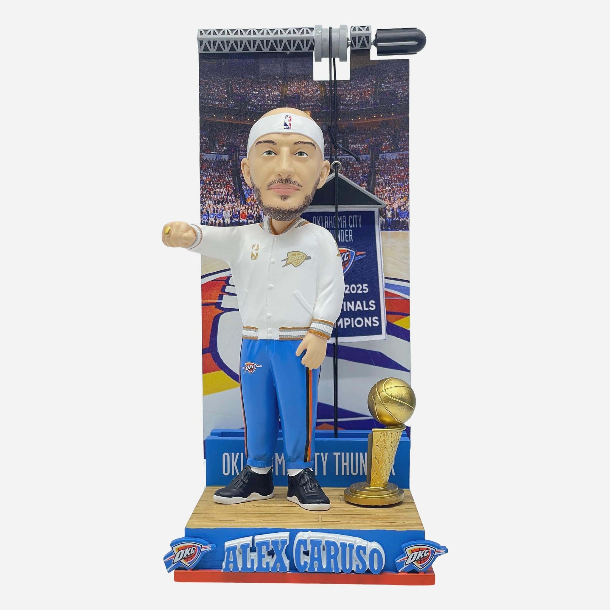 Raise the banner for the 2025 NBA champions! Keep the celebration going in your collection with the Alex Caruso Oklahoma City Thunder Raising The Banner Bobblehead.