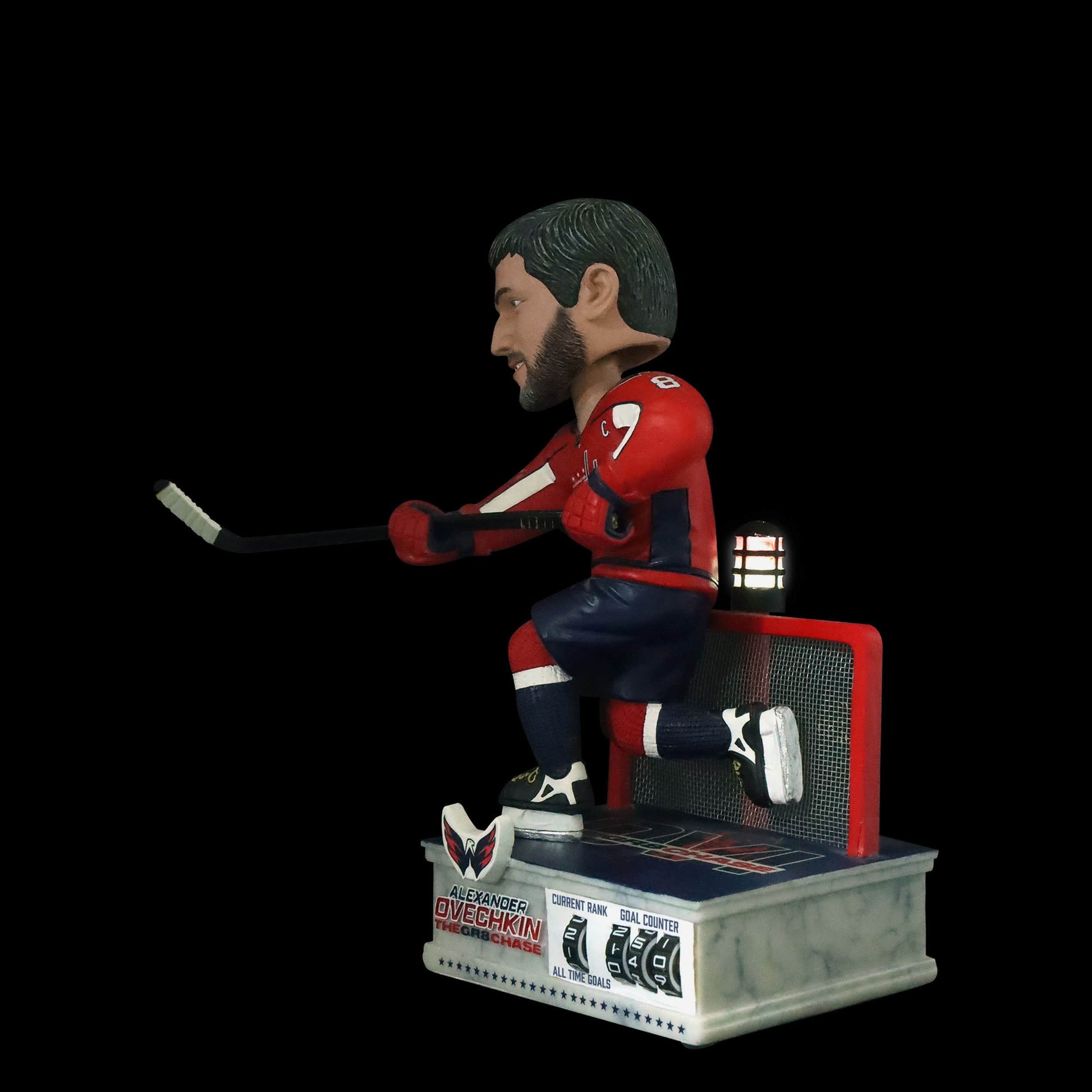 He shoots, he scores! While Ovi lights up the scoresheet in pursuit of the goals record, light up your fancave with this Alex Ovechkin Washington Capitals Gr8 Chase Goal Counter Light Up Bobblehead.