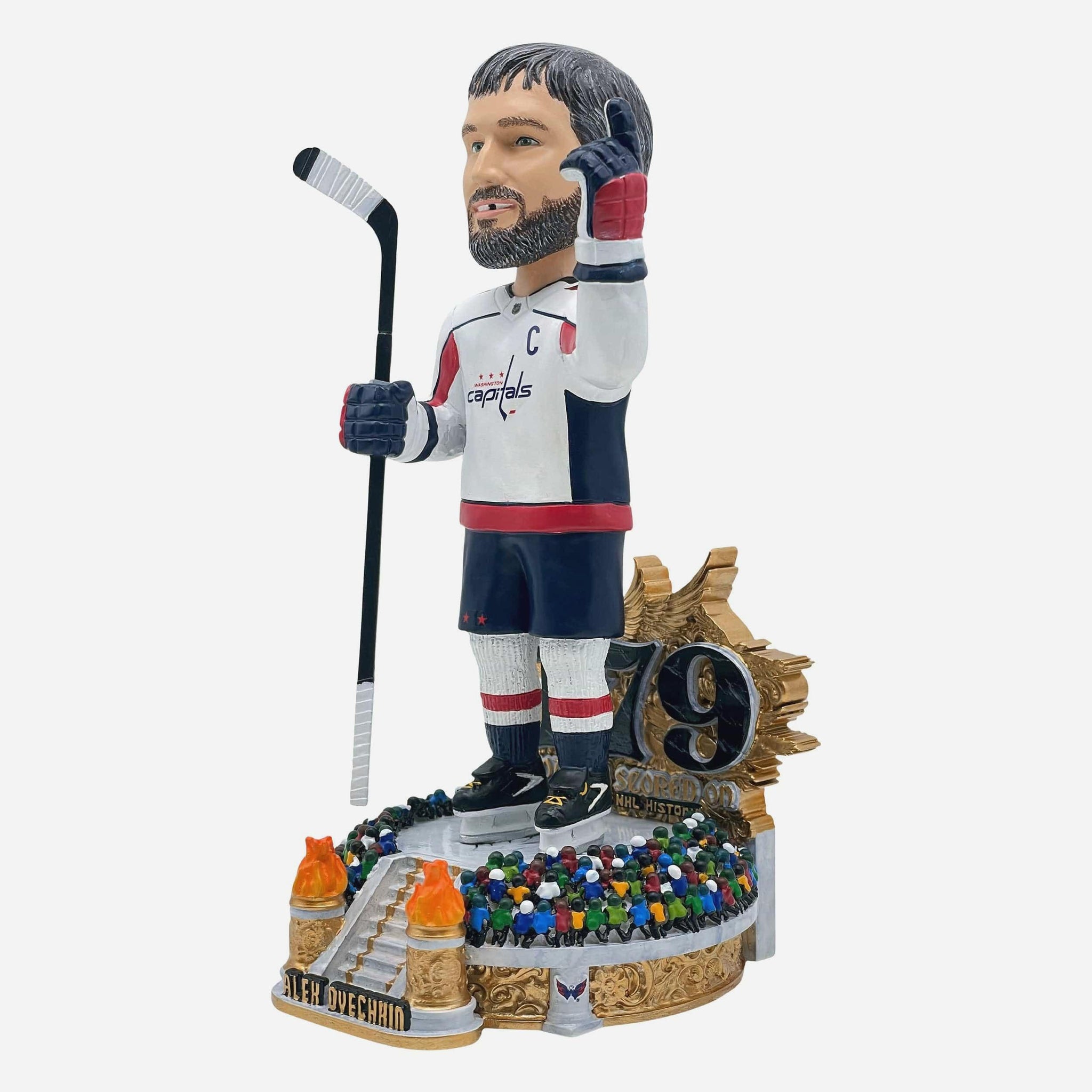 - Portrays Ovechkin posing and wearing his white gameday uniform, ready to reach another milestone