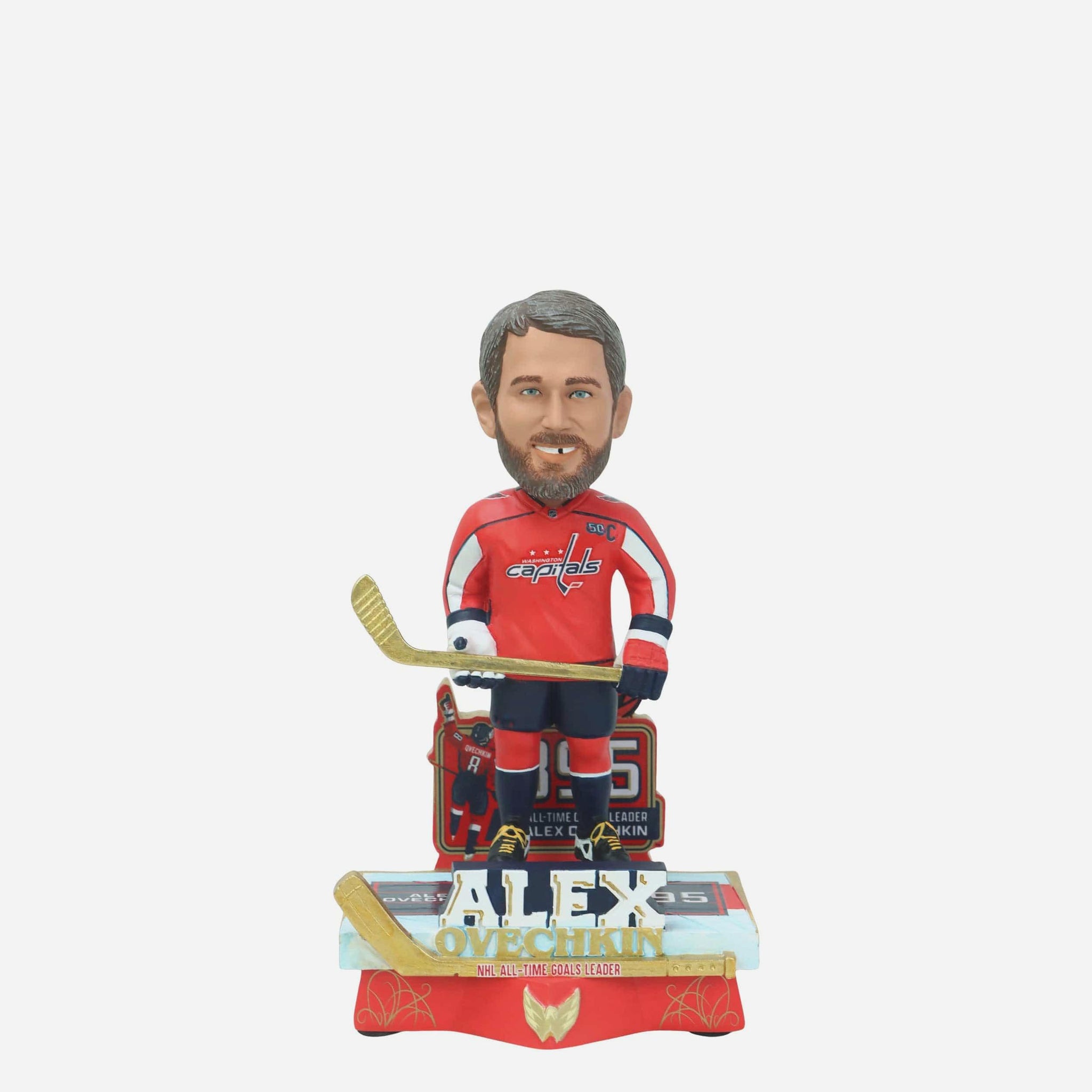 After taking the lead in goals, it’s only fair to have a golden stick! Celebrate with the Alex Ovechkin Washington Capitals NHL All-Time Goals Leader Golden Stick Mini Bobblehead.