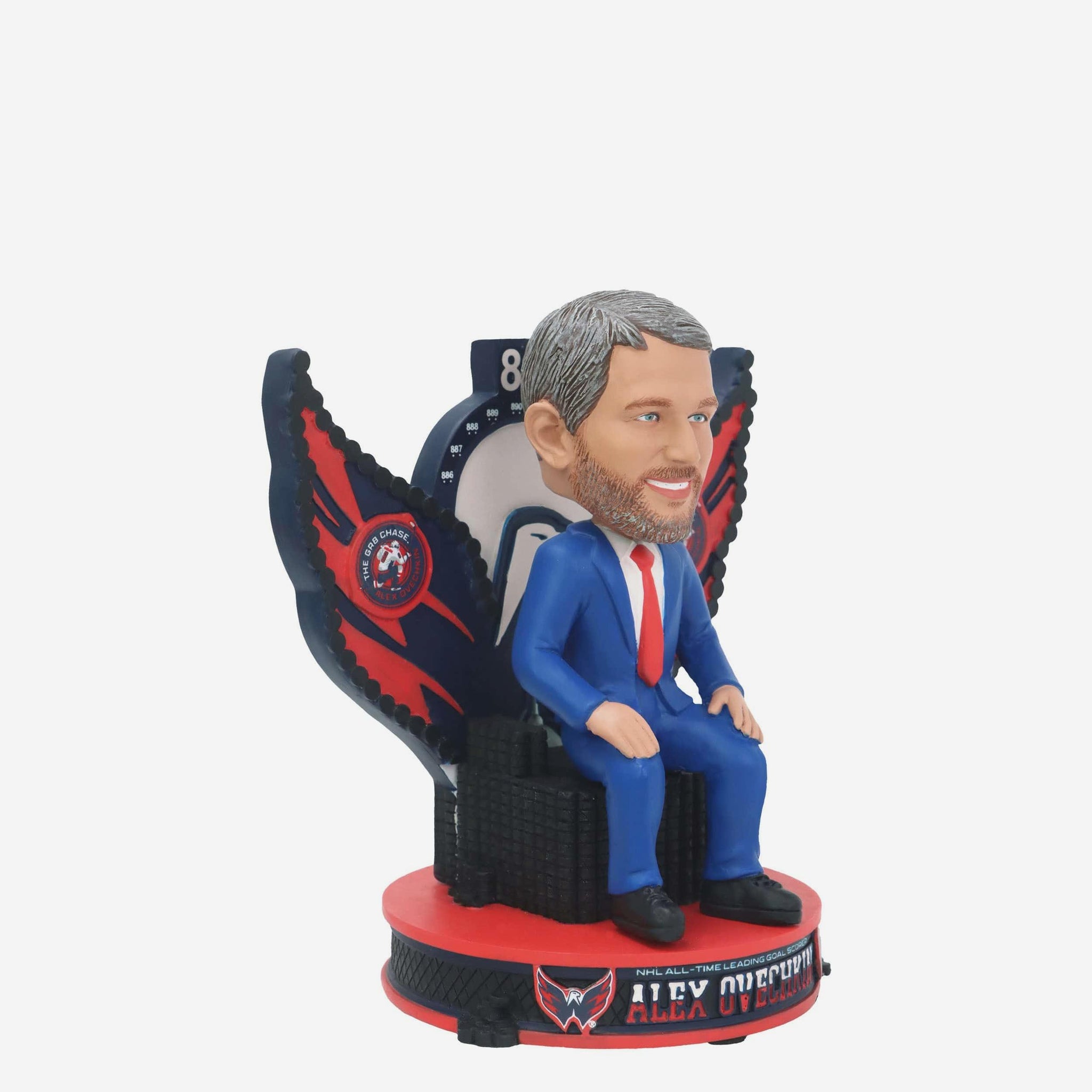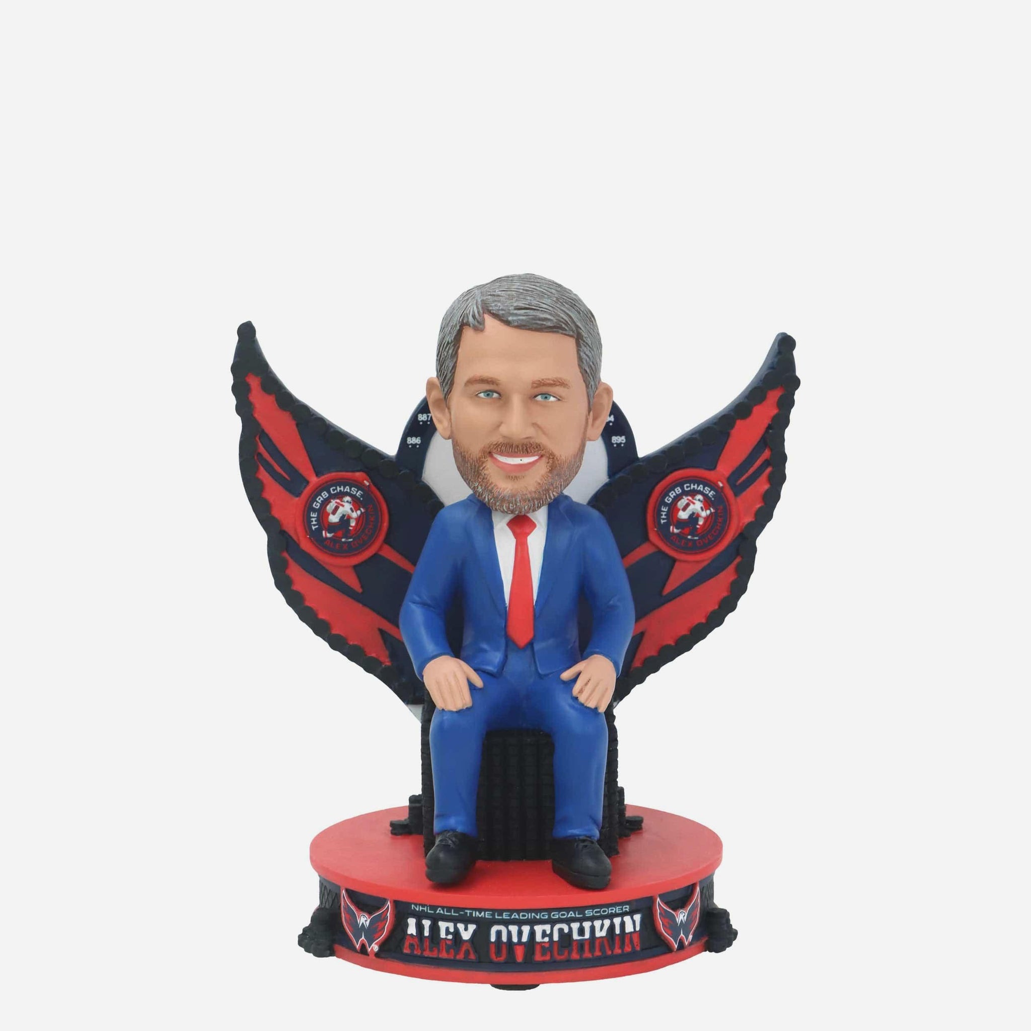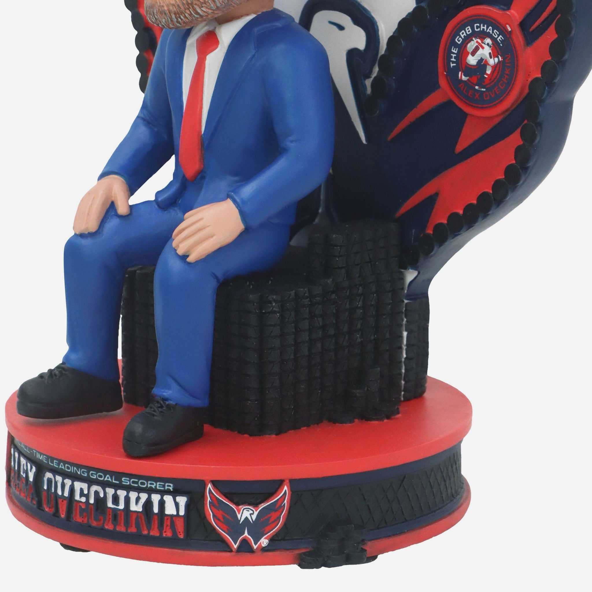 A throne fit for an OvechKING! Let the record-setting reign begin with this Alex Ovechkin Washington Capitals NHL All-Time Goals Leader Puck Throne Mini Bobblehead.