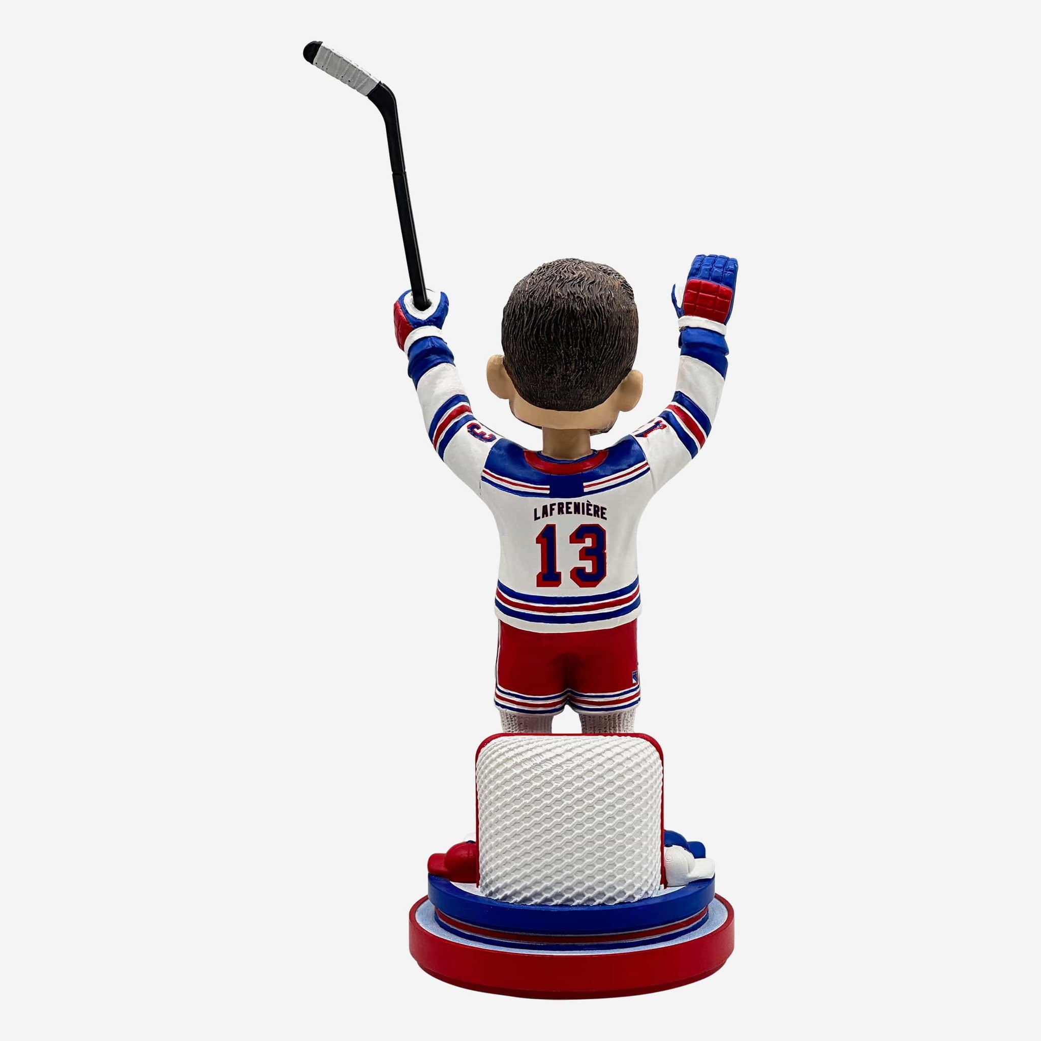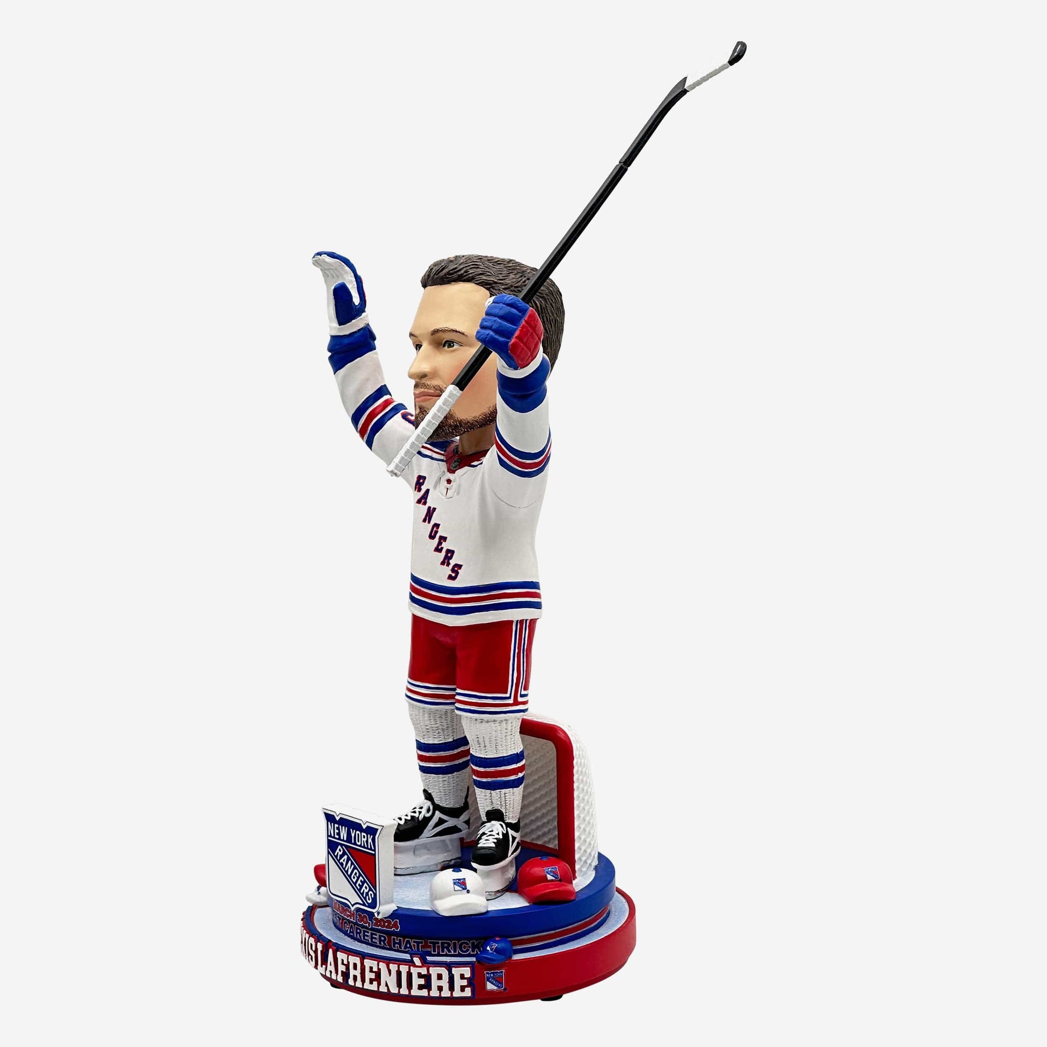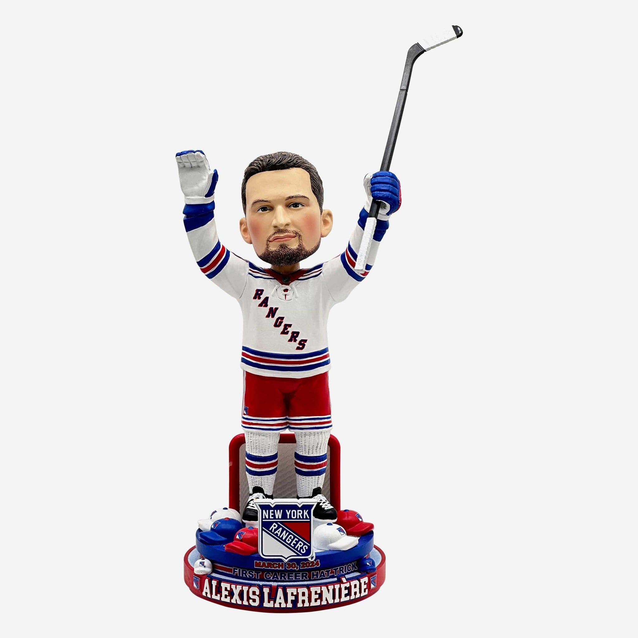 Get ready to properly celebrate the first career hat trick for Alex Lafrenière! Light the lamp and let the hats fly with the Alexis Lafrenière New York Rangers Hat Trick Bobblehead.