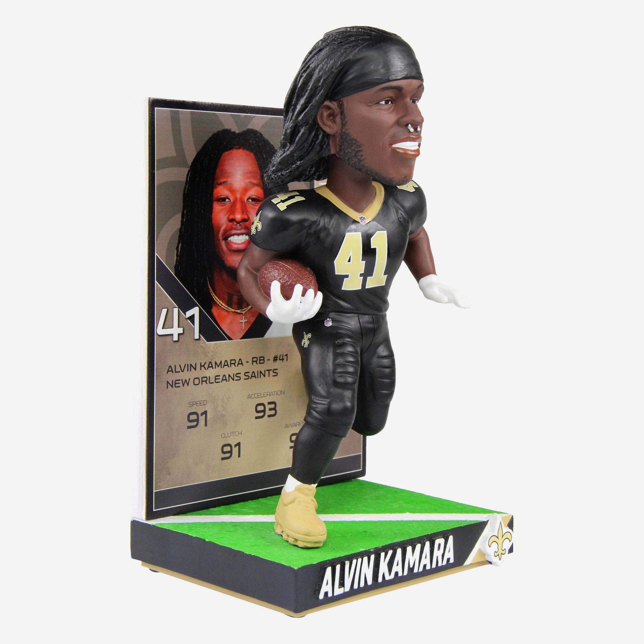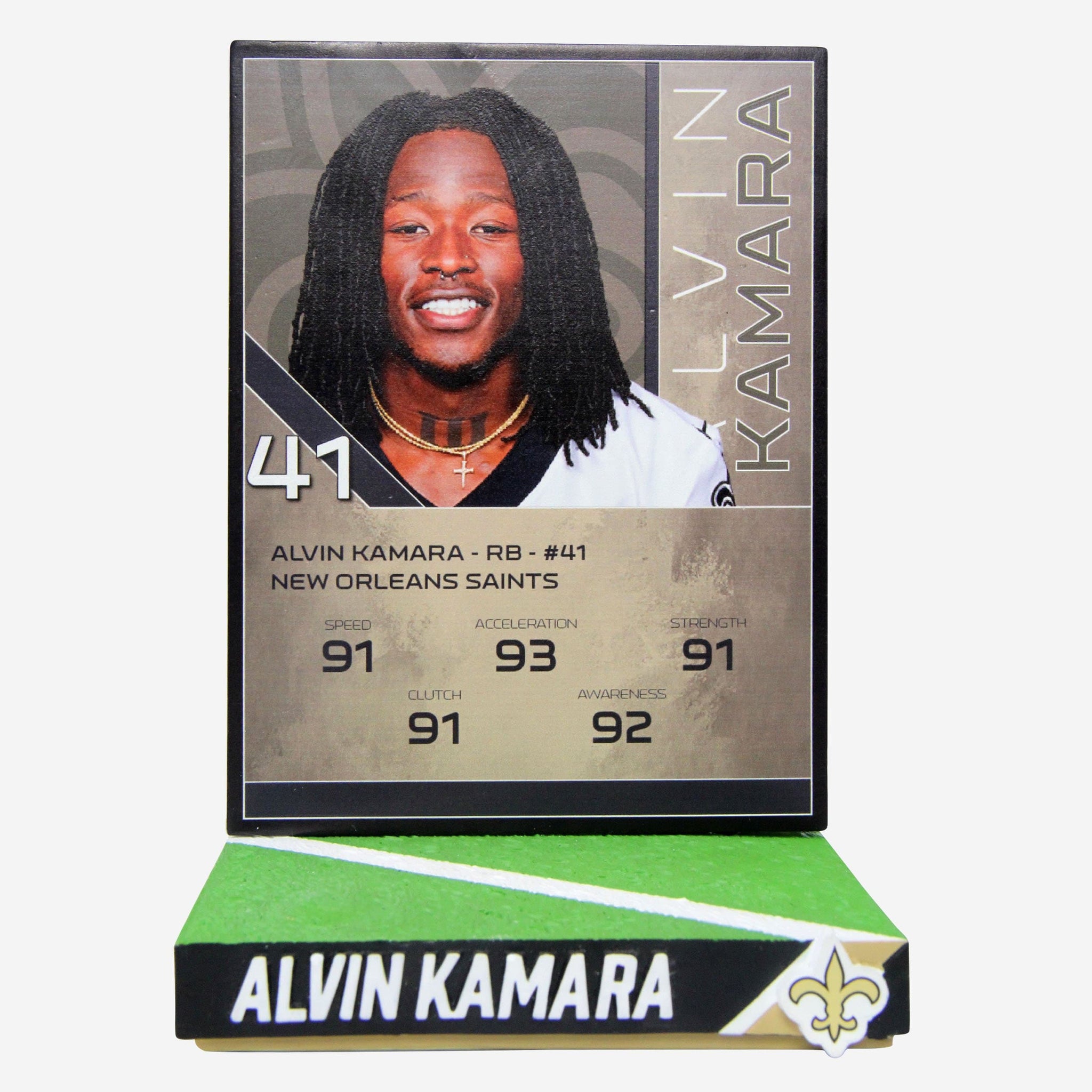 Meet your collection's newest wild card. Adding this Alvin Kamara New Orleans Saints Ratings Card Bobblehead to your lineup will ensure the cards are NEVER stacked against you.