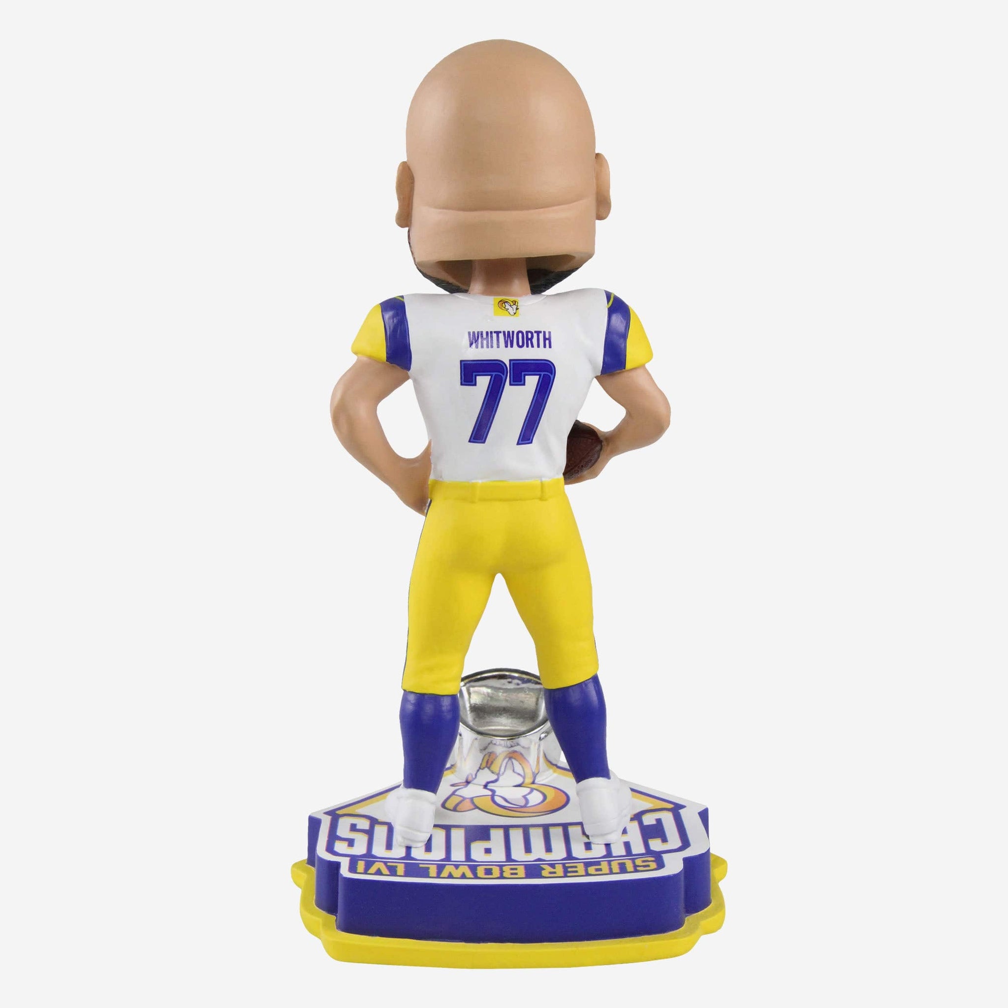 Your favorite star is taking the celebration from the gridiron to the friendly confines of your collection. Bobble your way to victory with this Andrew Whitworth Los Angeles Rams Super Bowl LVI Champions Bobblehead.
