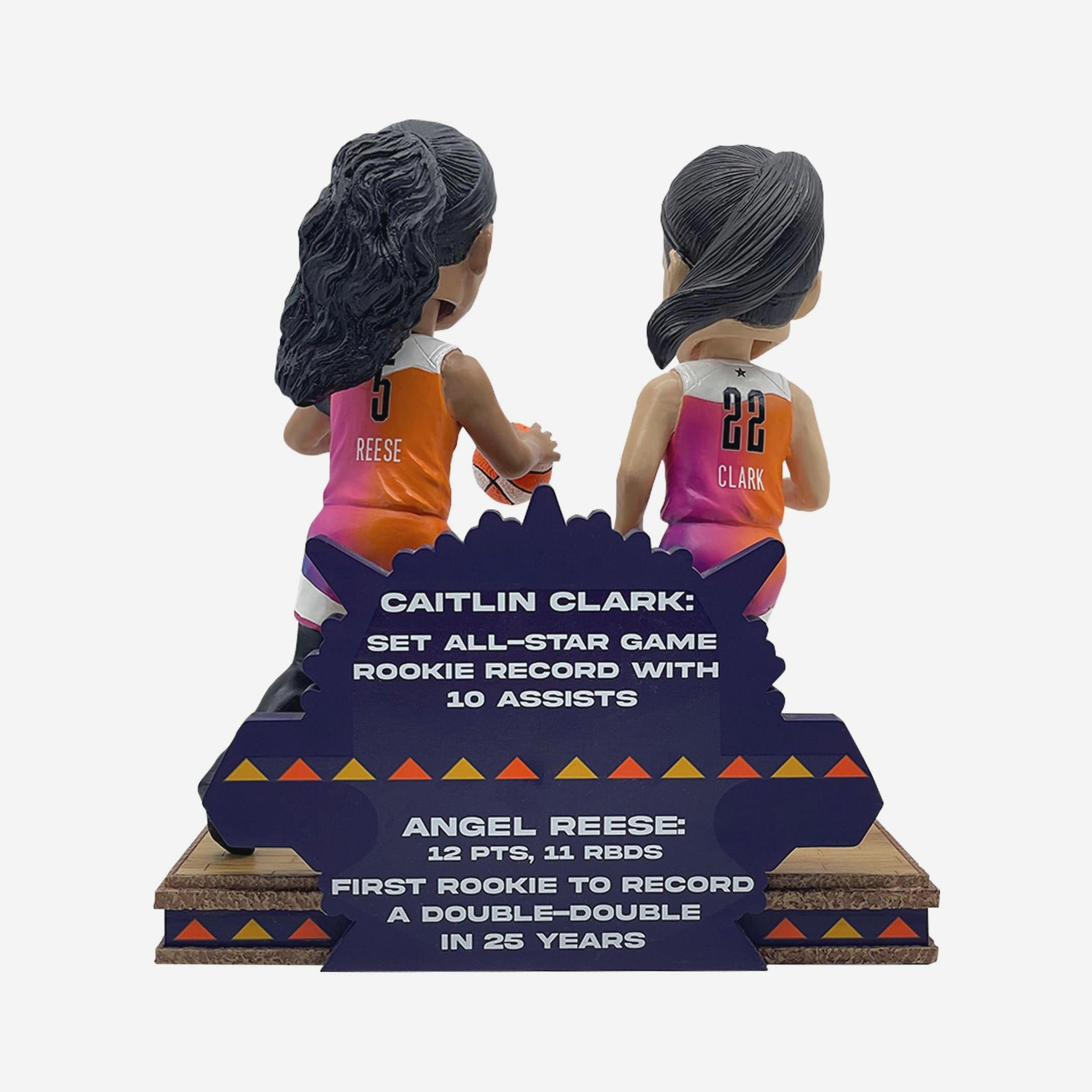 The first rookie to record a double-double in All-Star history: Angel Reese. The first rookie to record 10 assists in an All-Star game: Caitlin Clark. Celebrate a night for the history books with the Angel Reese & Caitlin Clark Chicago Sky & Indiana Fever 2024 All-Star Dual Gamebreaker Bobblehead.