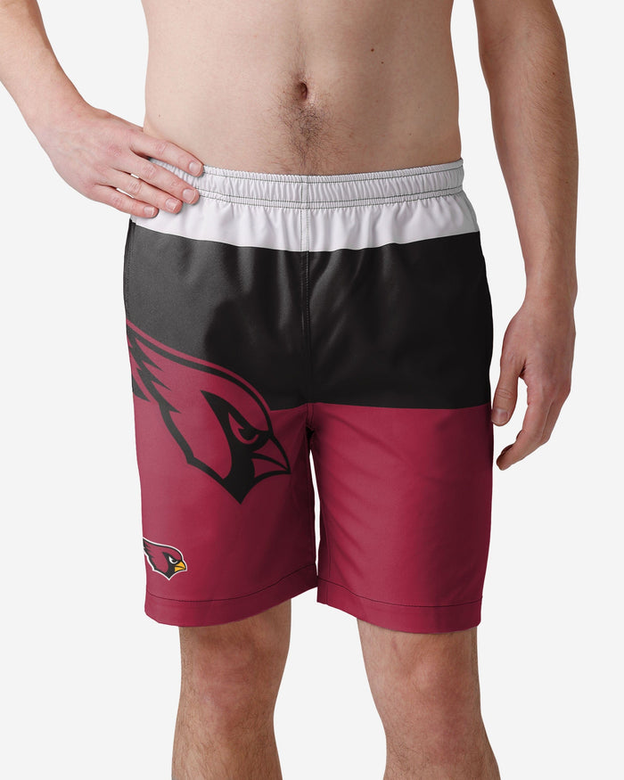 Need a break from the heat of gameday competition? Cool off by going for a dip in these Arizona Cardinals 3 Stripe Big Logo Traditional Swimming Trunks.