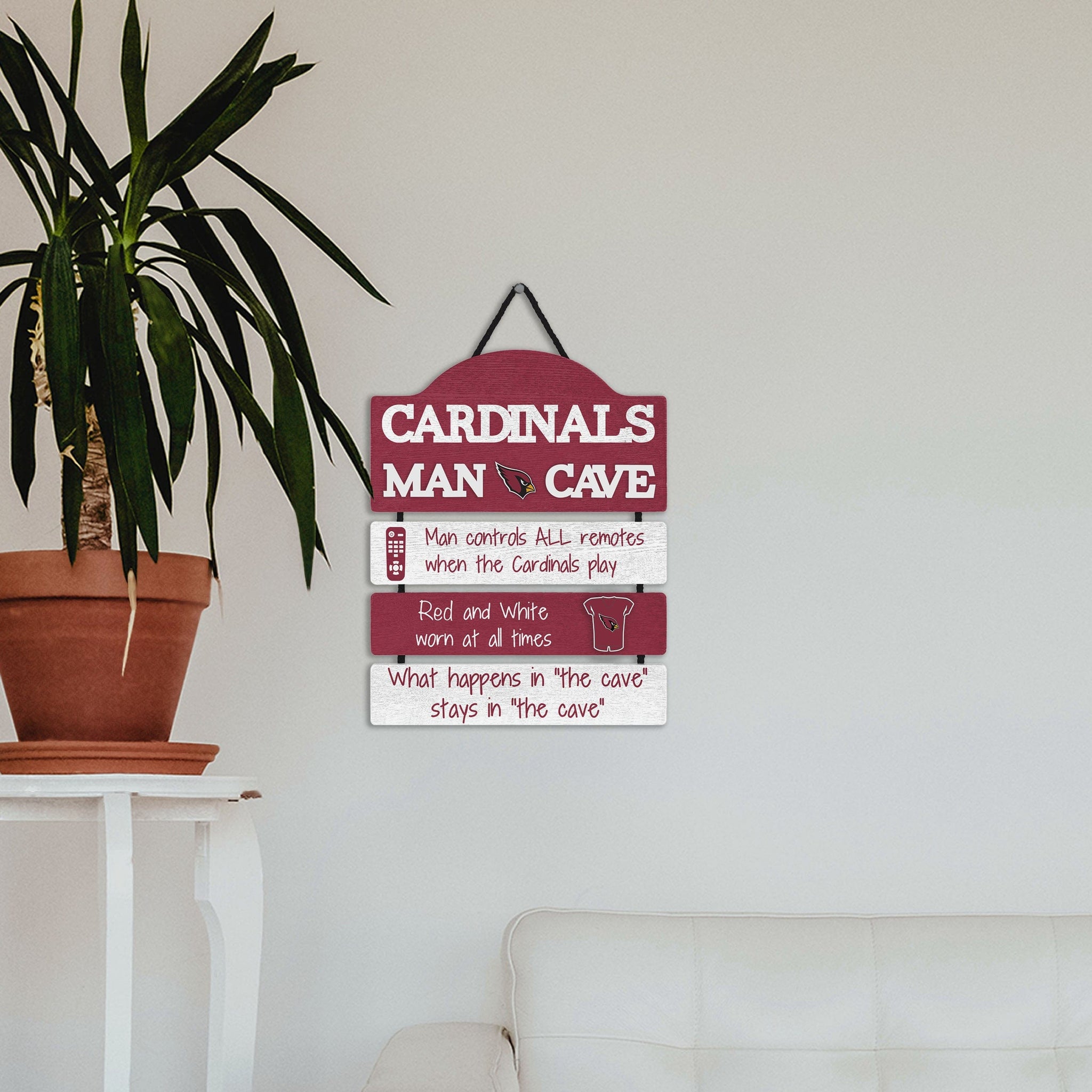 So, you're hosting the big watch party, and want to make sure you've decorated enough to impress your fellow fans. We've got you covered. This Arizona Cardinals Mancave Sign lets everyone know who the fan in charge is, and gives your home field plenty of advantage.