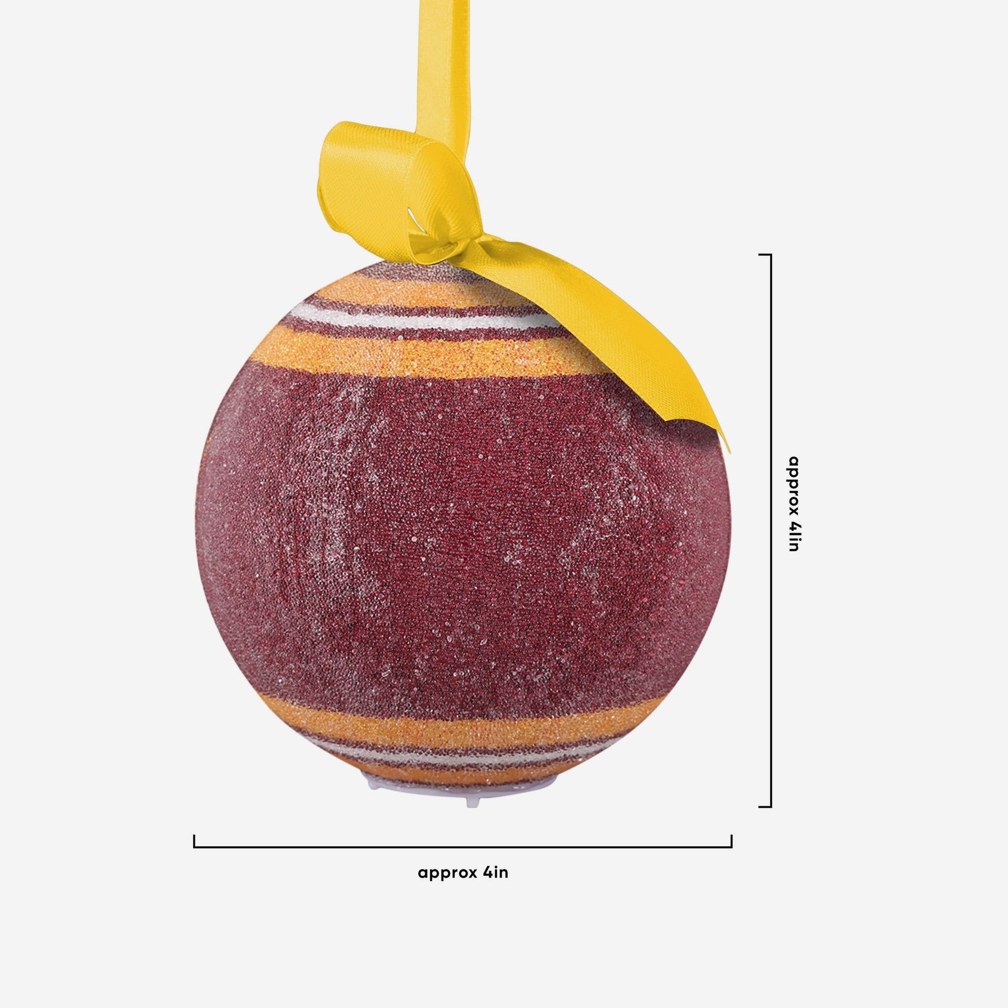 - Team-colored stripe accents on top and bottom of ornament to make your tree look extra awesome