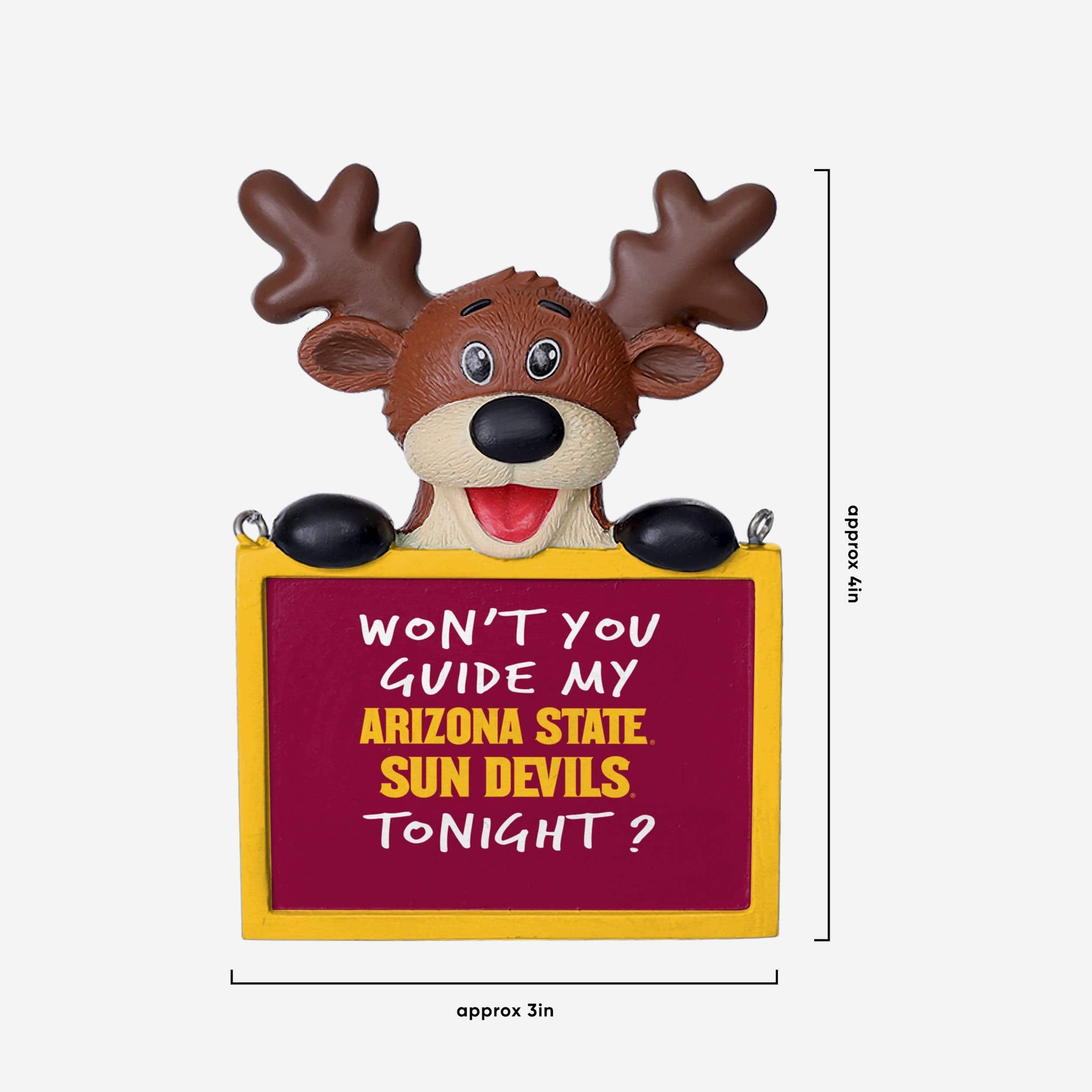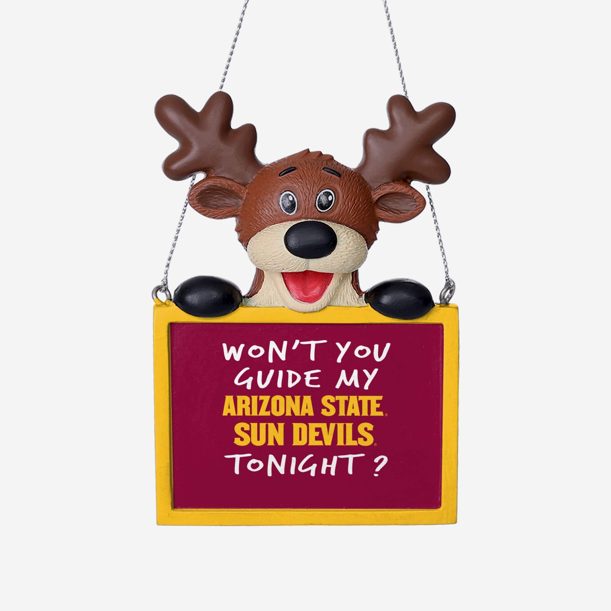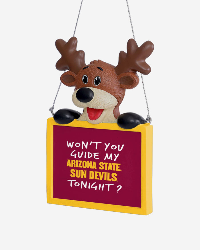Tired: Dasher. Dancer. Prancer. Vixen. Wired: This Arizona State Sun Devils Reindeer with Sign Ornament.