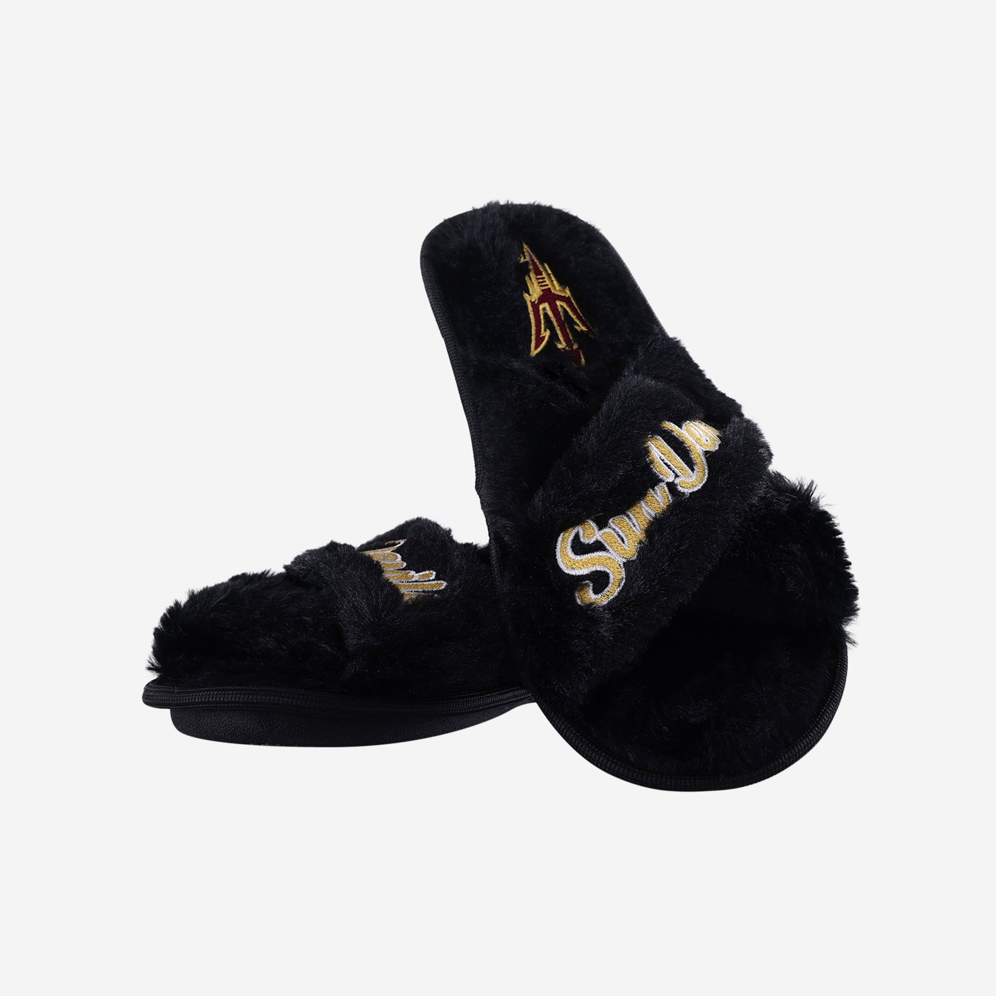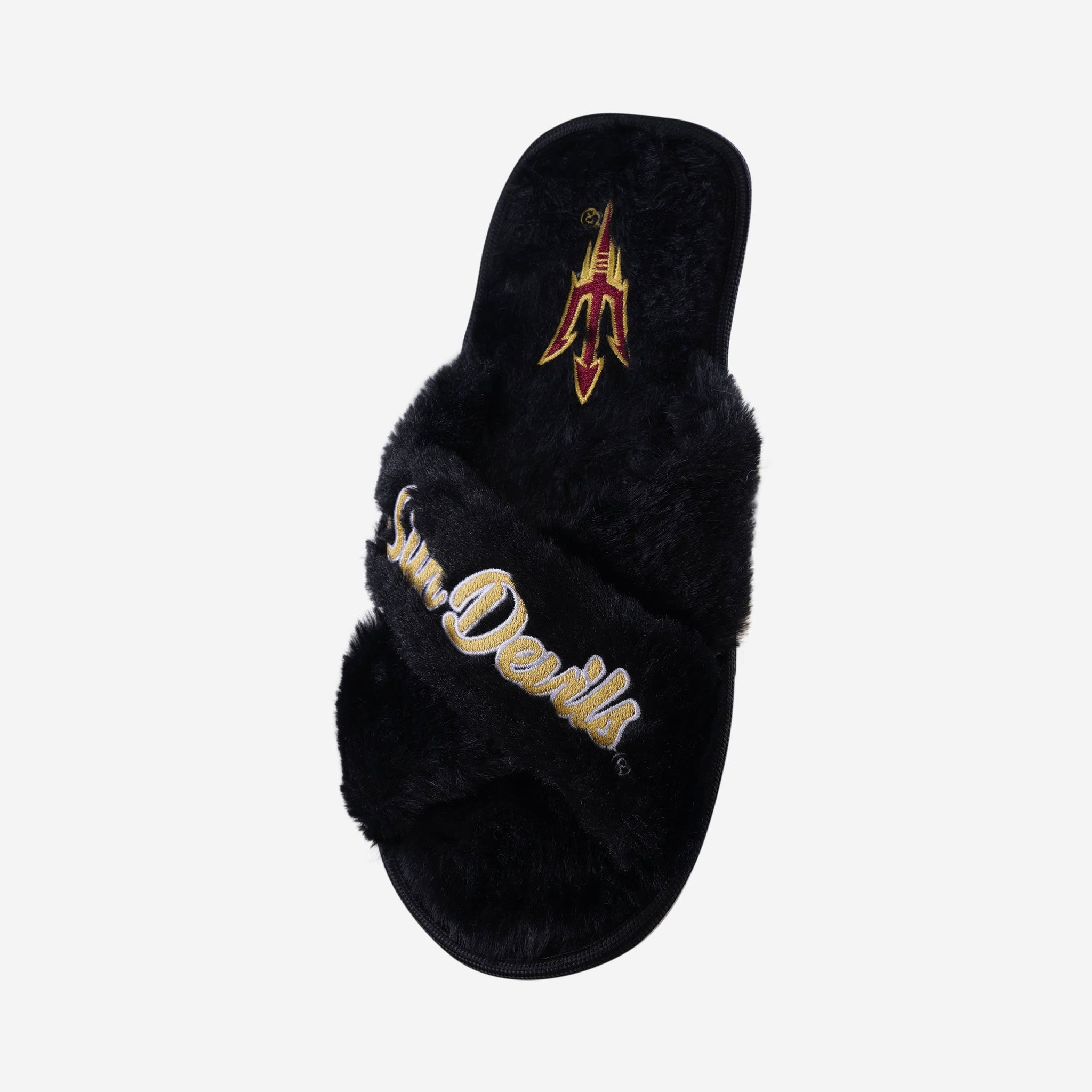 Slip in to something fuzzy, festive, and oh, so fan-tastic on your relaxing days at home. These Arizona State Sun Devils Women's Script Wordmark Fur Cross Slides are the best way to rep the team while you kick back and watch the game on TV.