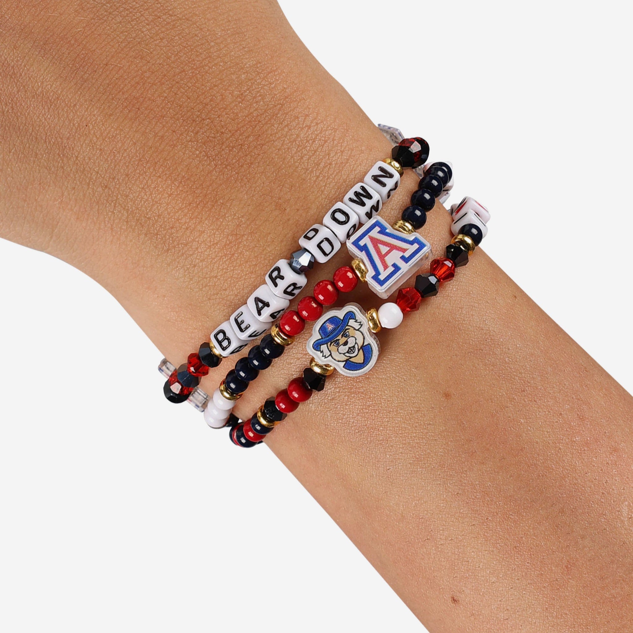 Accessorize and maximize your fandom while impressing your fellow fans with this Arizona Wildcats 3 Pack Friendship Bracelet. These matching friendship bracelets have an all-over team-colored design and team logo displays, which makes them the perfect way to show your support for the Arizona Wildcats and get in on the latest accessory craze.